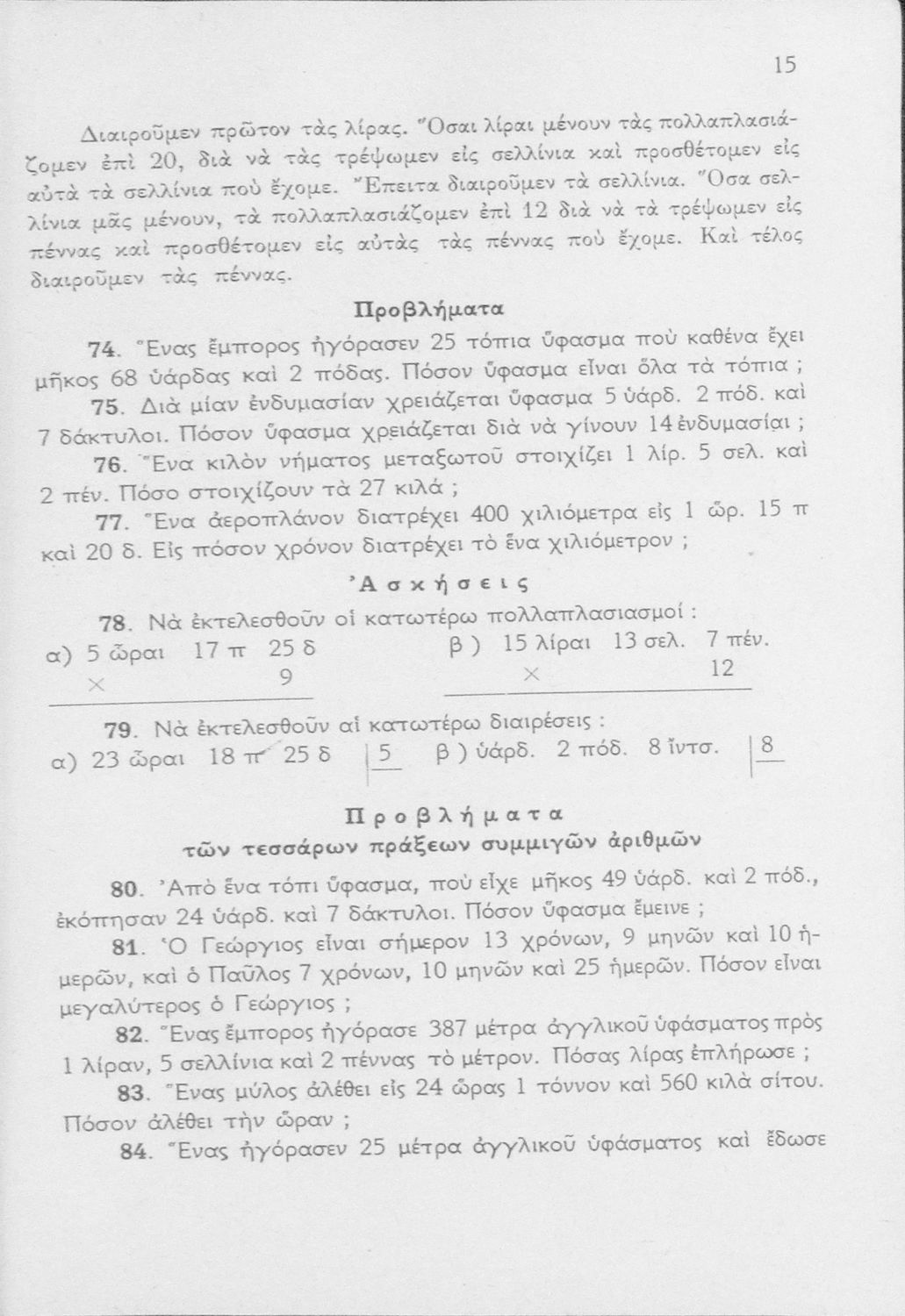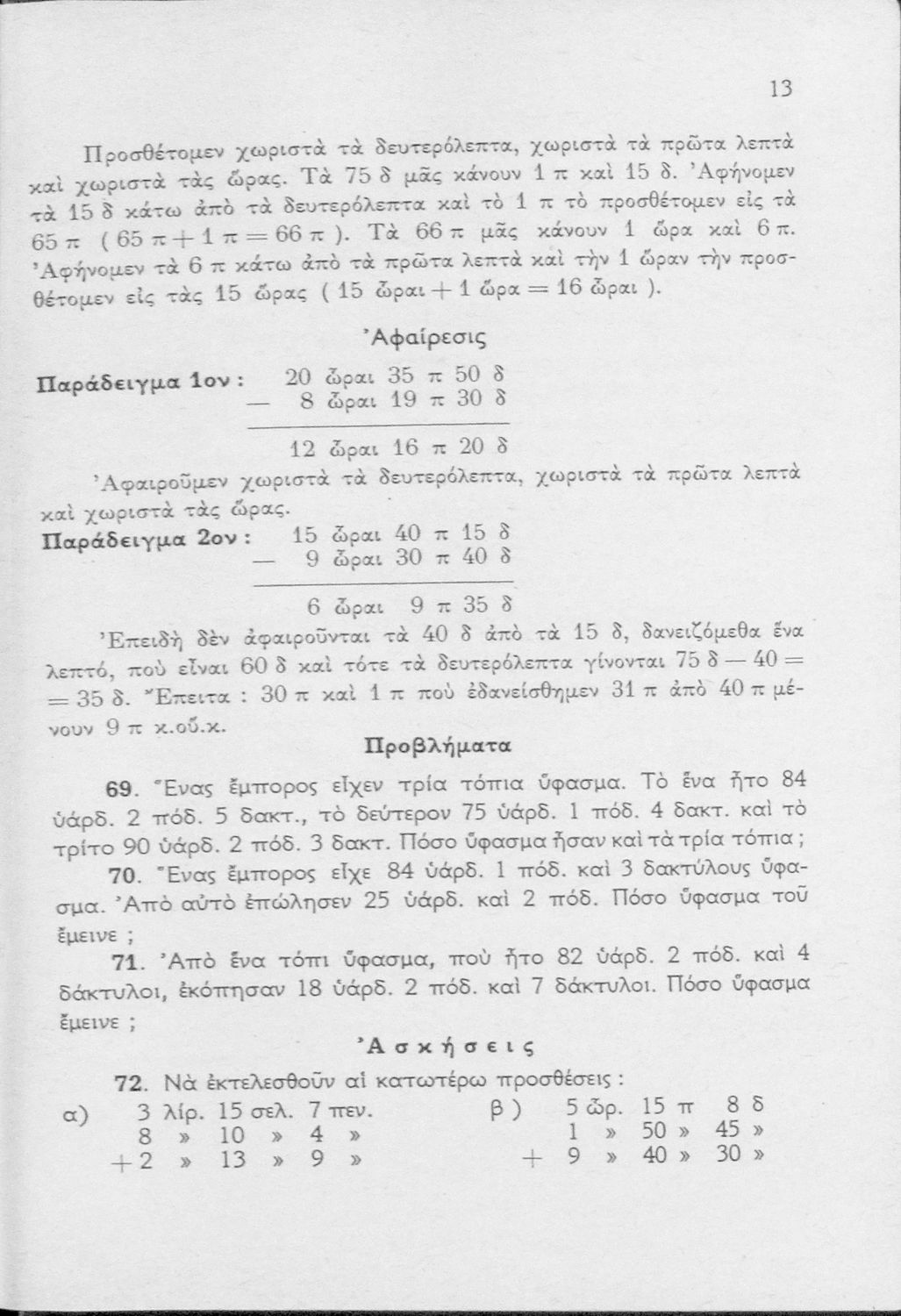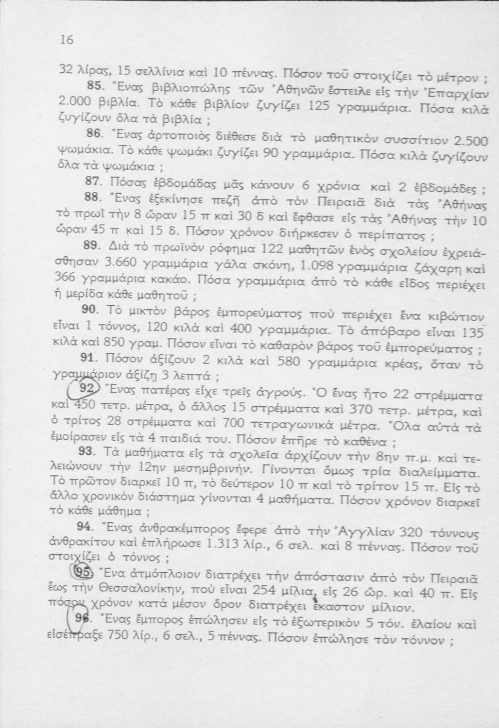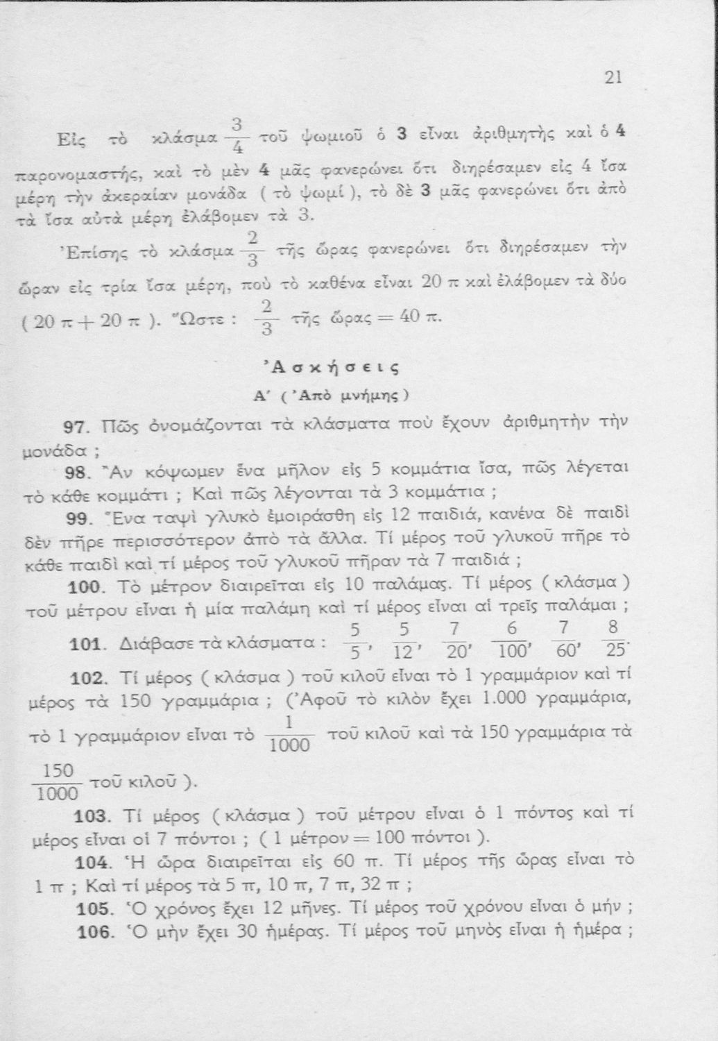 Μαθητικό βοήθημα Αριθμητικής για τις Ε΄ και ΣΤ΄ Δημοτικού που περιέχει ασκήσεις με επιχειρηματικό προσανατολισμό και εστιάζει στις αριθμητικές πράξεις με κλάσματα και την απλή μέθοδο των τριών. Η παρούσα έκδοση έχει μεταγλωττιστεί στην καθαρεύουσα.