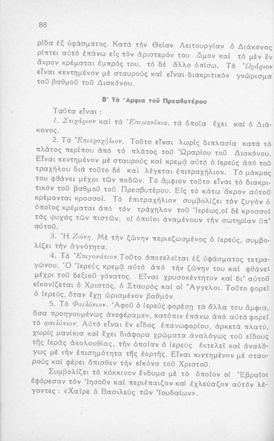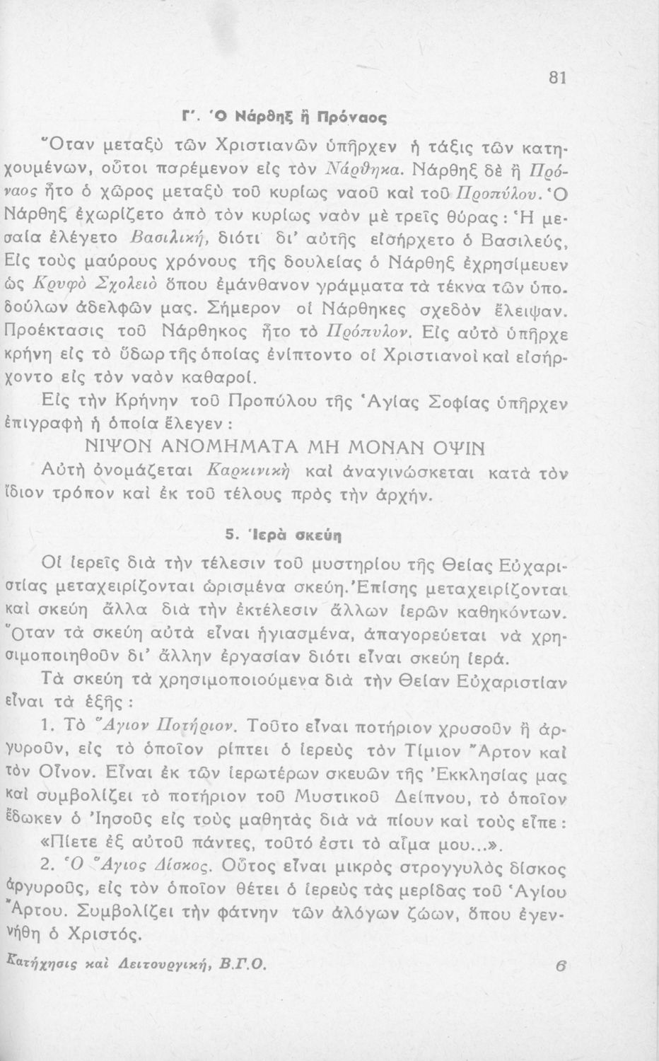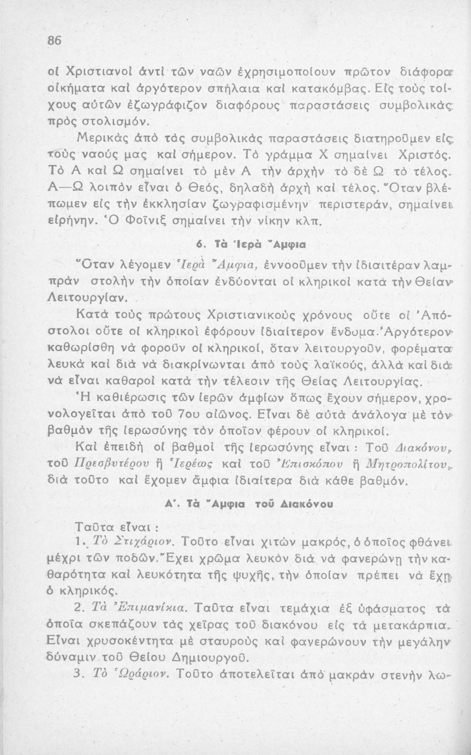Κωδικός αναγνώρισης: 01-18883 Τίτλος: Ορθόδοξος χριστιανική Κατήχησις και Λειτουργική δια την ΣΤ΄ τάξιν των πλήρων δημοτ. σχολείων και την Ε΄ και ΣΤ΄ των συνδιδασκομένων μαθητών Συγγραφέας: Βασ. Οικονομίδης Μέγεθος και υπόστρωμα: Σχολικό εγχειρίδιο, 20εκ., μαλακό εξώφυλλο, 126 σελίδες. Εικόνες (ασπρόμαυρες). |