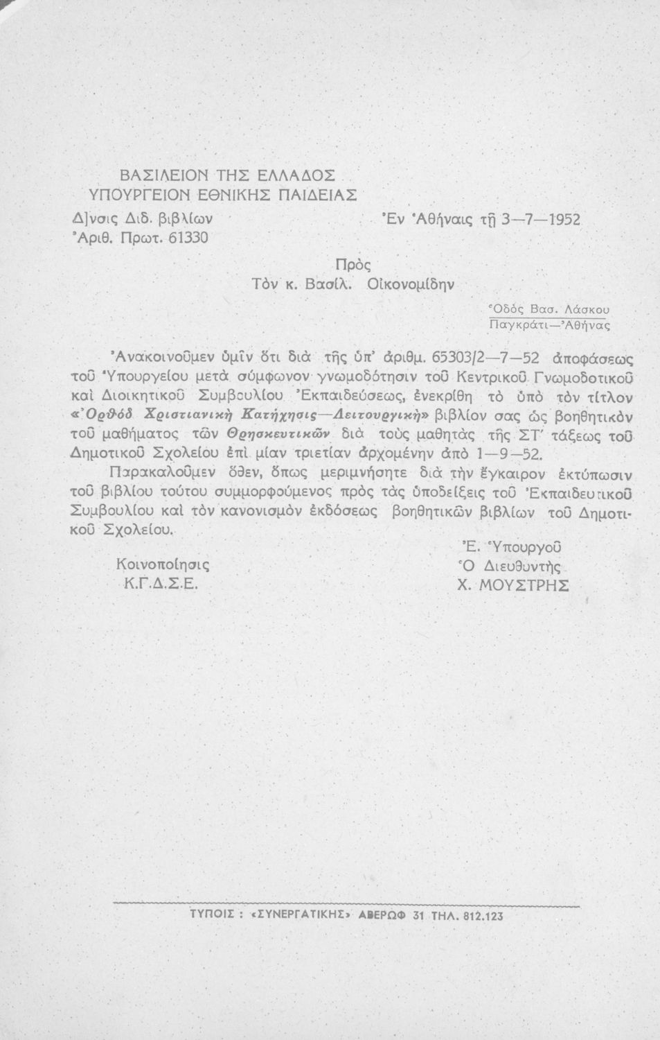 Υπουργική απόφαση / Σύμβαση: 65303/2-7-1952