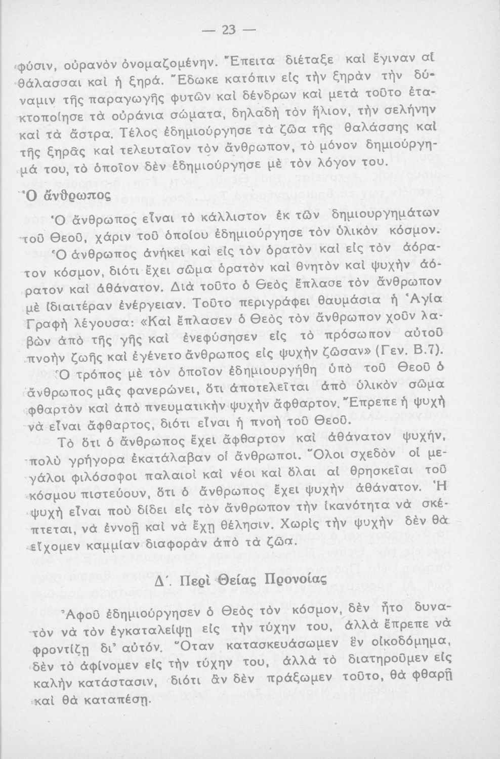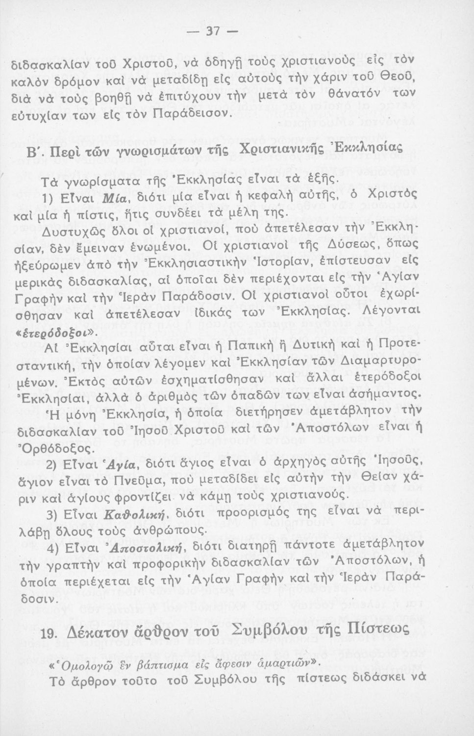 Σχολικό εγχειρίδιο Θρησκευτικών Γ' Ελληνικού Σχολείου που περιλαμβάνει εισαγωγή στη χριστιανική κατήχηση και τα δόγματά της και πραγματεύεται δογματικά και ηθικά ζητήματα της ορθόδοξης παράδοσης.