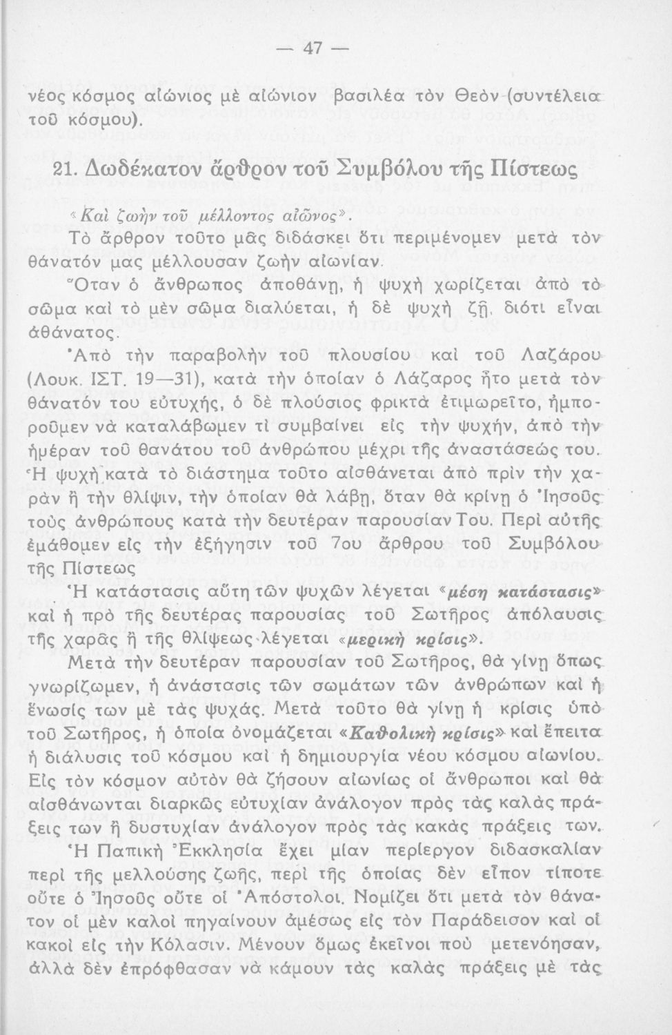 Σχολικό εγχειρίδιο Θρησκευτικών Γ' Ελληνικού Σχολείου που περιλαμβάνει εισαγωγή στη χριστιανική κατήχηση και τα δόγματά της και πραγματεύεται δογματικά και ηθικά ζητήματα της ορθόδοξης παράδοσης.