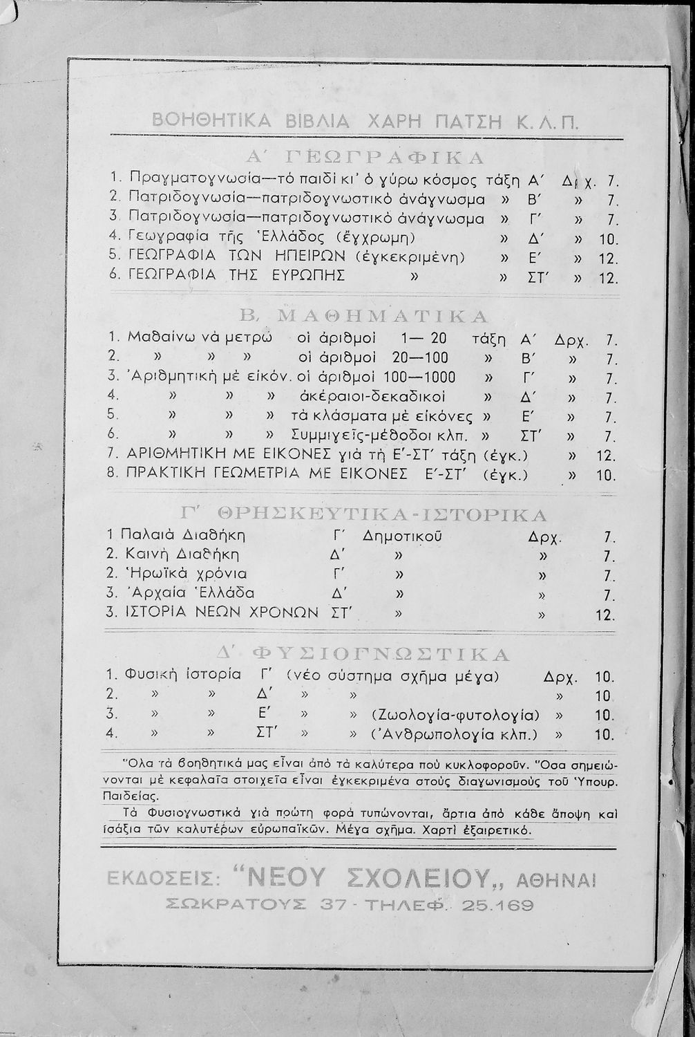 Εκδότης: Αλικιώτης & Υιοί Τόπος έκδοσης: Αθήνα Έκδοση: 6η Υπουργική απόφαση / Σύμβαση: 54408/22-6-1950 Έτος έγκρισης: 1950 |