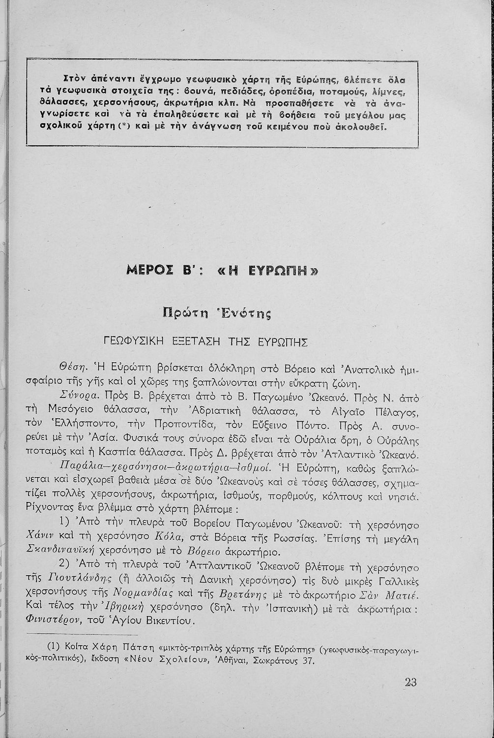 Παρουσίαση περιεχομένου: Μαθητικό βοήθημα Γεωγραφίας ΣΤ΄ Γυμνασίου που περιέχει στοιχεία φυσικής και μαθηματικής γεωγραφίας και εξετάζει τα κράτη της Ευρώπη από γεωφυσική, πολιτική και οικονομική άποψη. Περιλαμβάνει και στοιχεία ανθρωπογεωγραφίας.