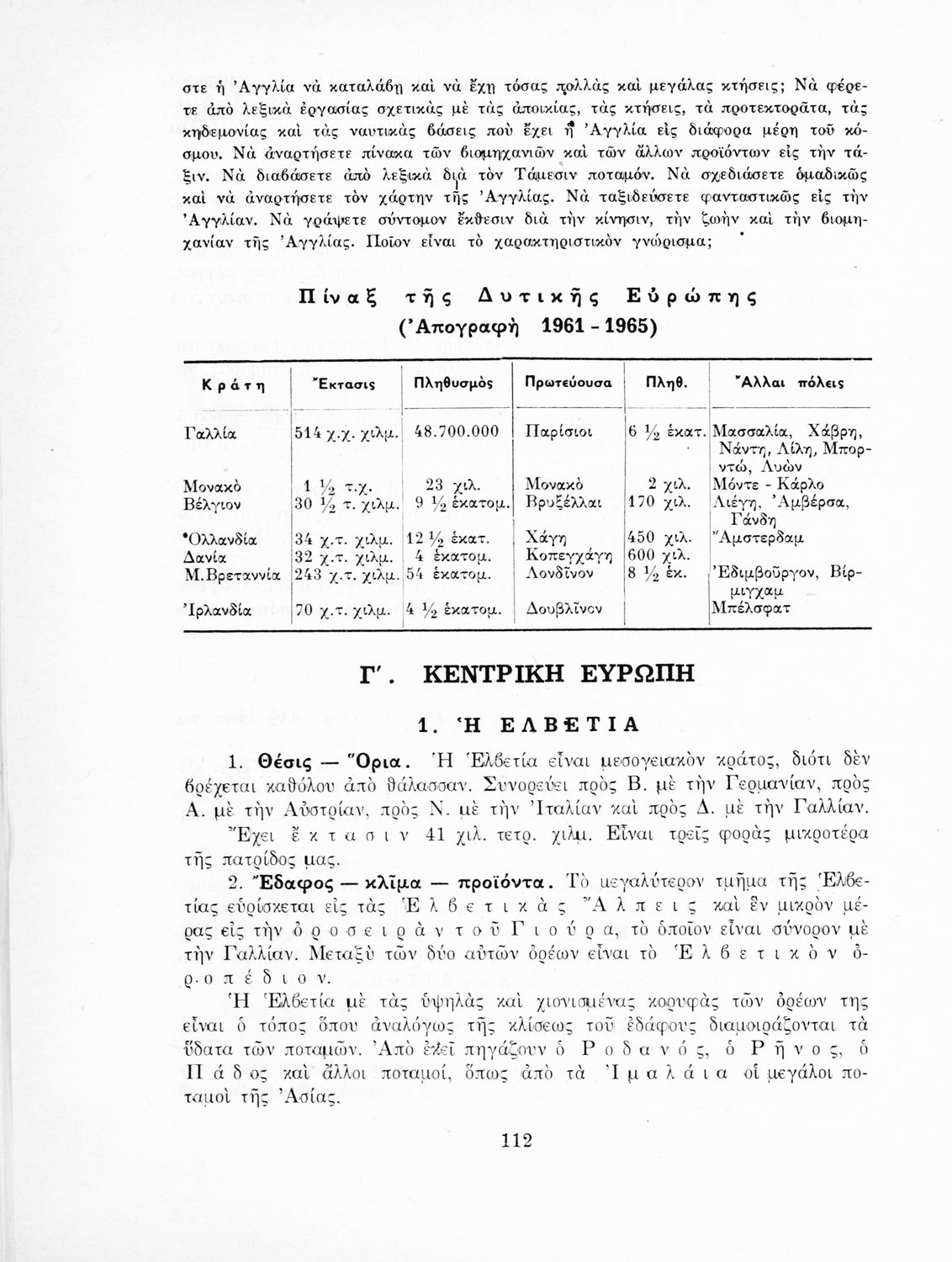 Μαθητικό βοήθημα Γεωγραφίας ΣΤ΄ Δημοτικού που περιλαμβάνει στοιχεία φυσικής και μαθηματικής γεωγραφίας και εξετάζει τα κράτη της Ευρώπη από γεωμορφολογική, οικονομική και πολιτική άποψη. Περιέχει και στοιχεία ανθρωπογεωγραφίας.