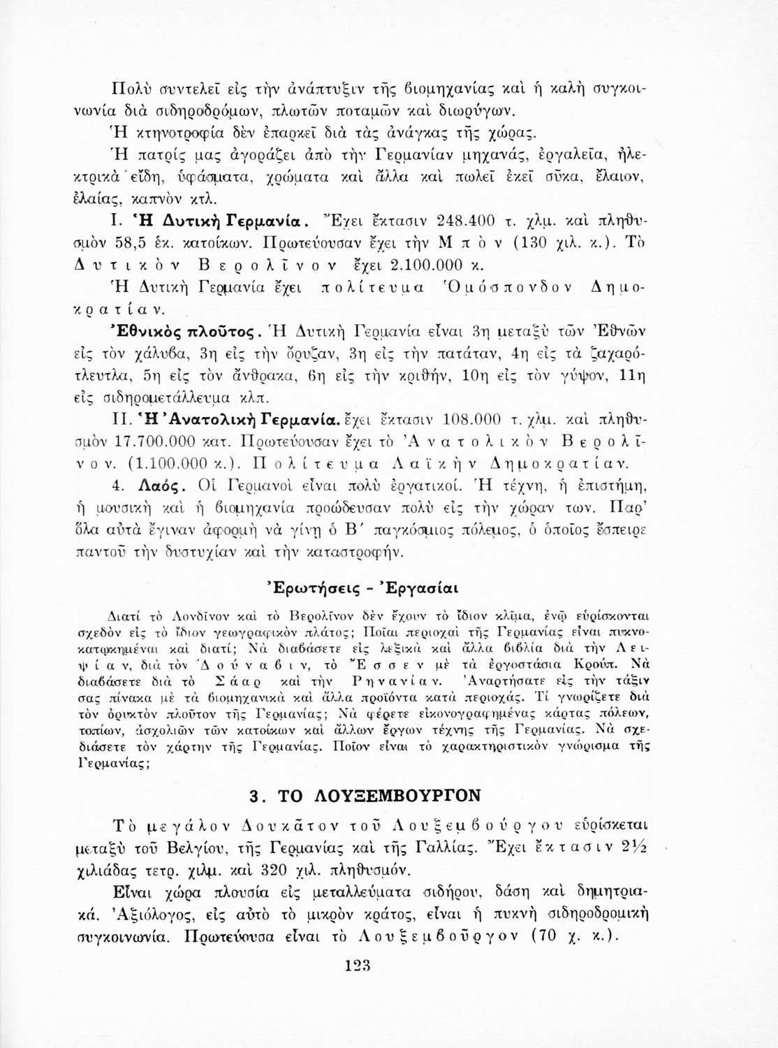 Κωδικός αναγνώρισης: 01-18886 Τίτλος: Γεωγραφία της Ευρώπης διά την ΣΤ΄ τάξιν του Δημοτικού Σχολείου Συγγραφέας: Ν. Παπασπύρου Μέγεθος και υπόστρωμα: Μαθητικό βοήθημα, 22εκ., μαλακό εξώφυλλο, 175 σελίδες. Φωτογραφίες (ασπρόμαυρες), χάρτες. |