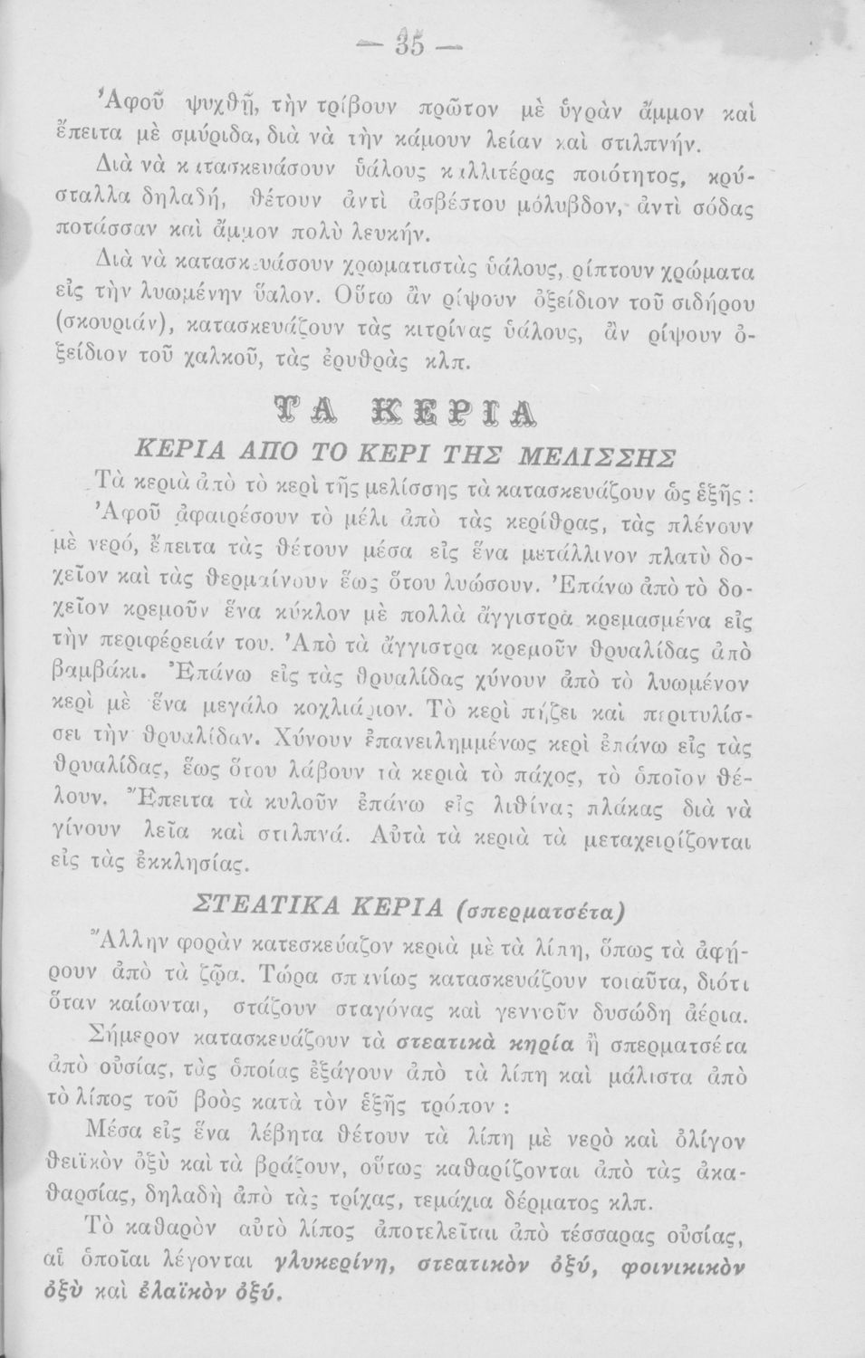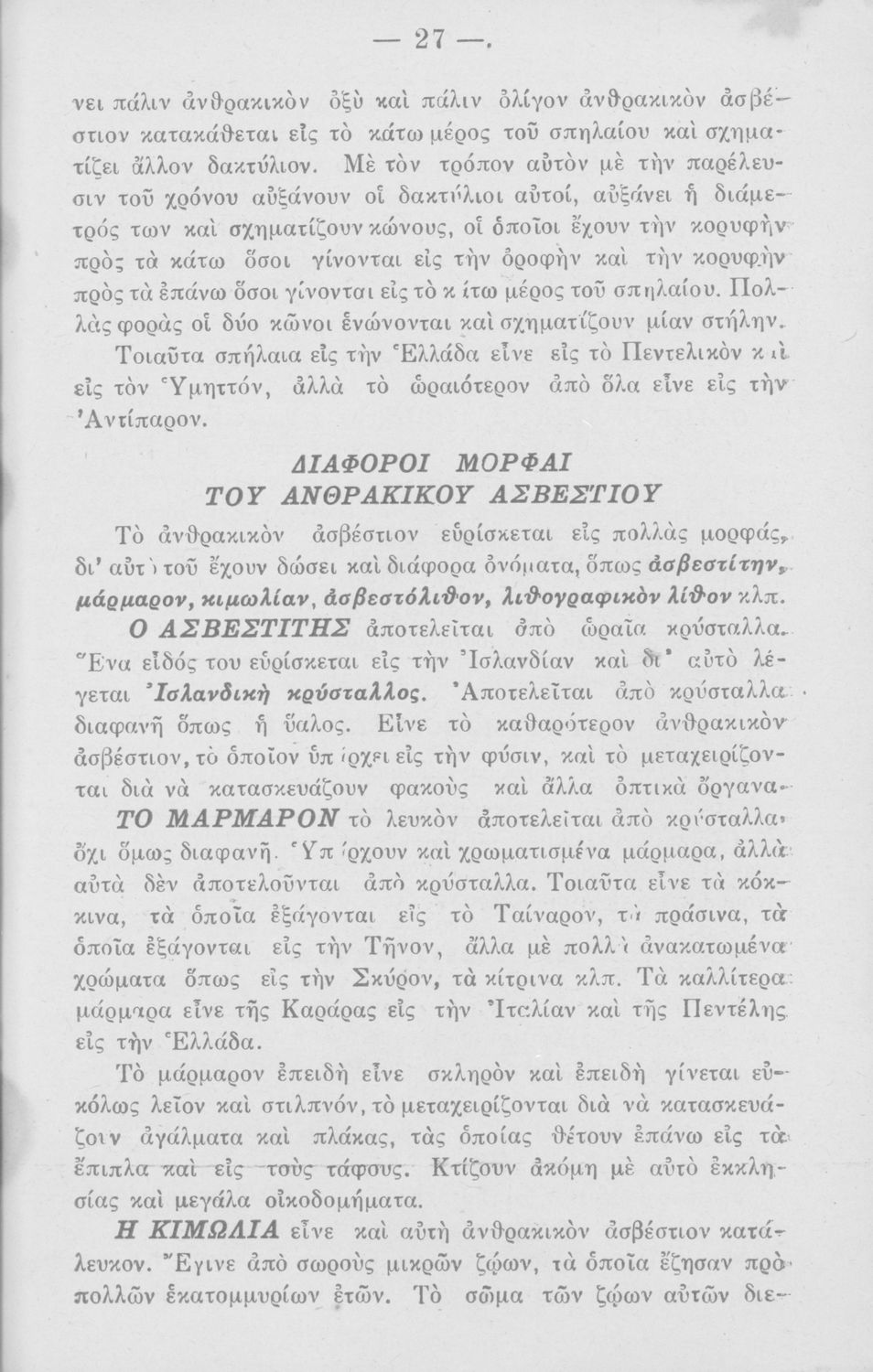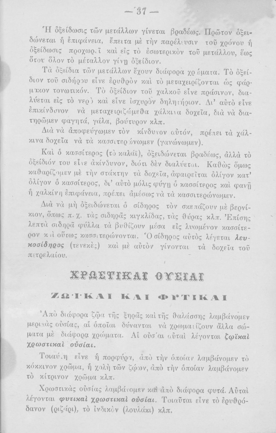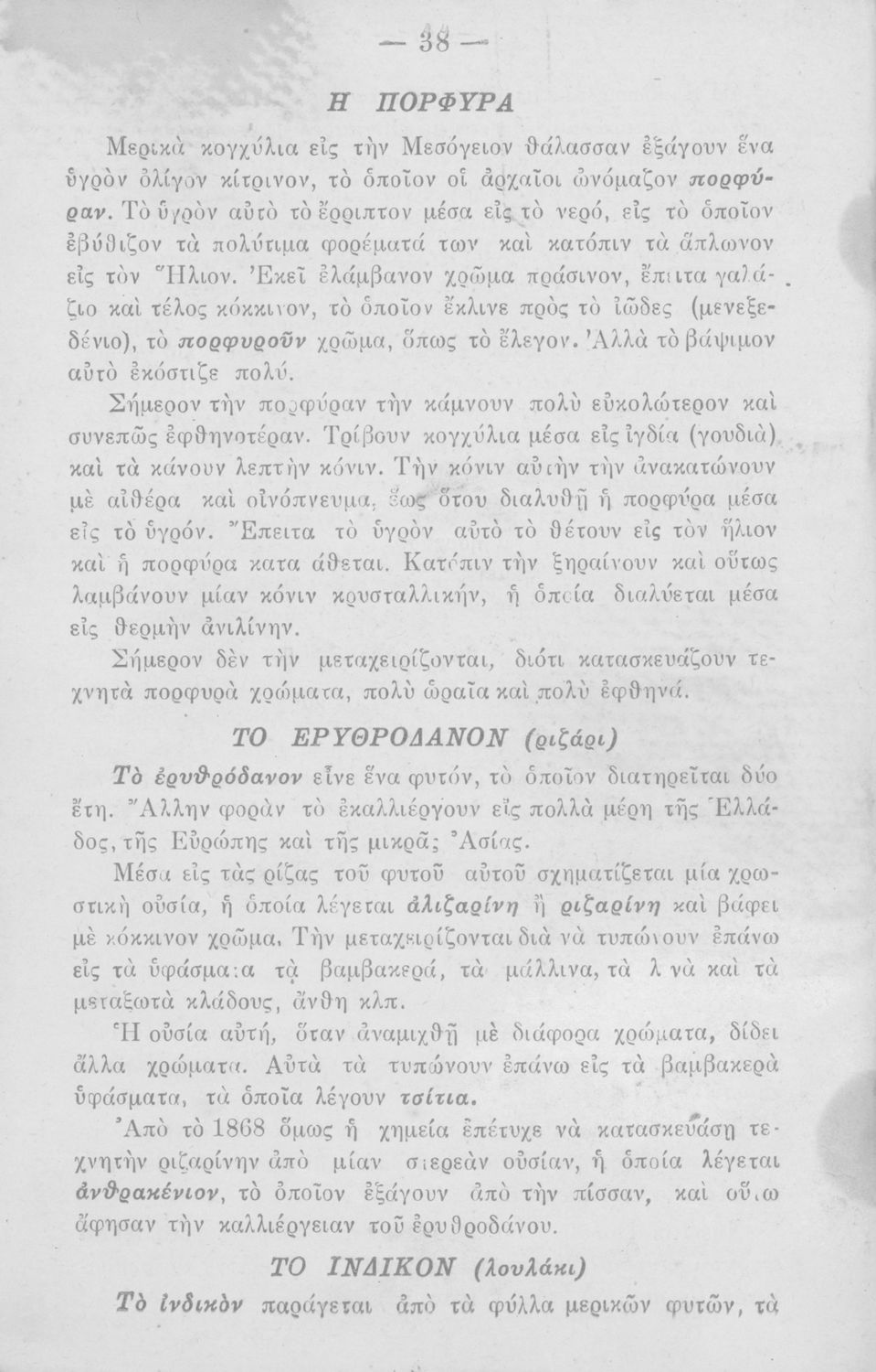 Βαθμίδα εκπαίδευσης: Πρωτοβάθμια Τάξη: Ε' Δημοτικού Μάθημα: Χημεία Γλώσσα: Καθαρεύουσα Παρουσίαση περιεχομένου: Μαθητικό βοήθημα Χημείας Ε΄ Δημοτικού που περιγράφει τη σύσταση των σωμάτων, τα φυσικά και χημικά φαινόμενα καθώς και στις ιδιότητες διάφορων στοιχείων (οξείδια, υδρογονάνθρακες κλπ.). Περιγράφονται οι χημικές ενώσεις και οι ιδιότητες τους. |