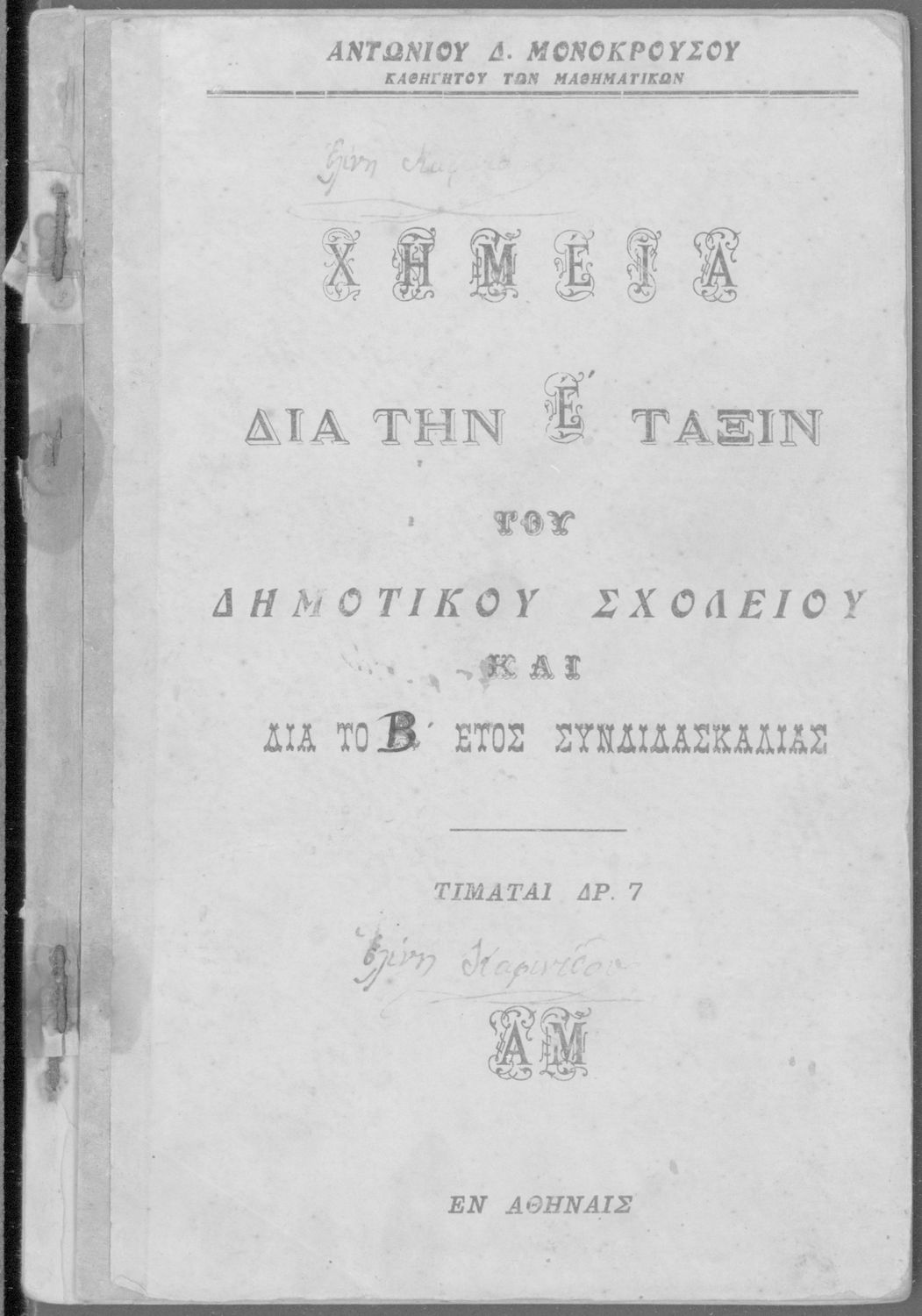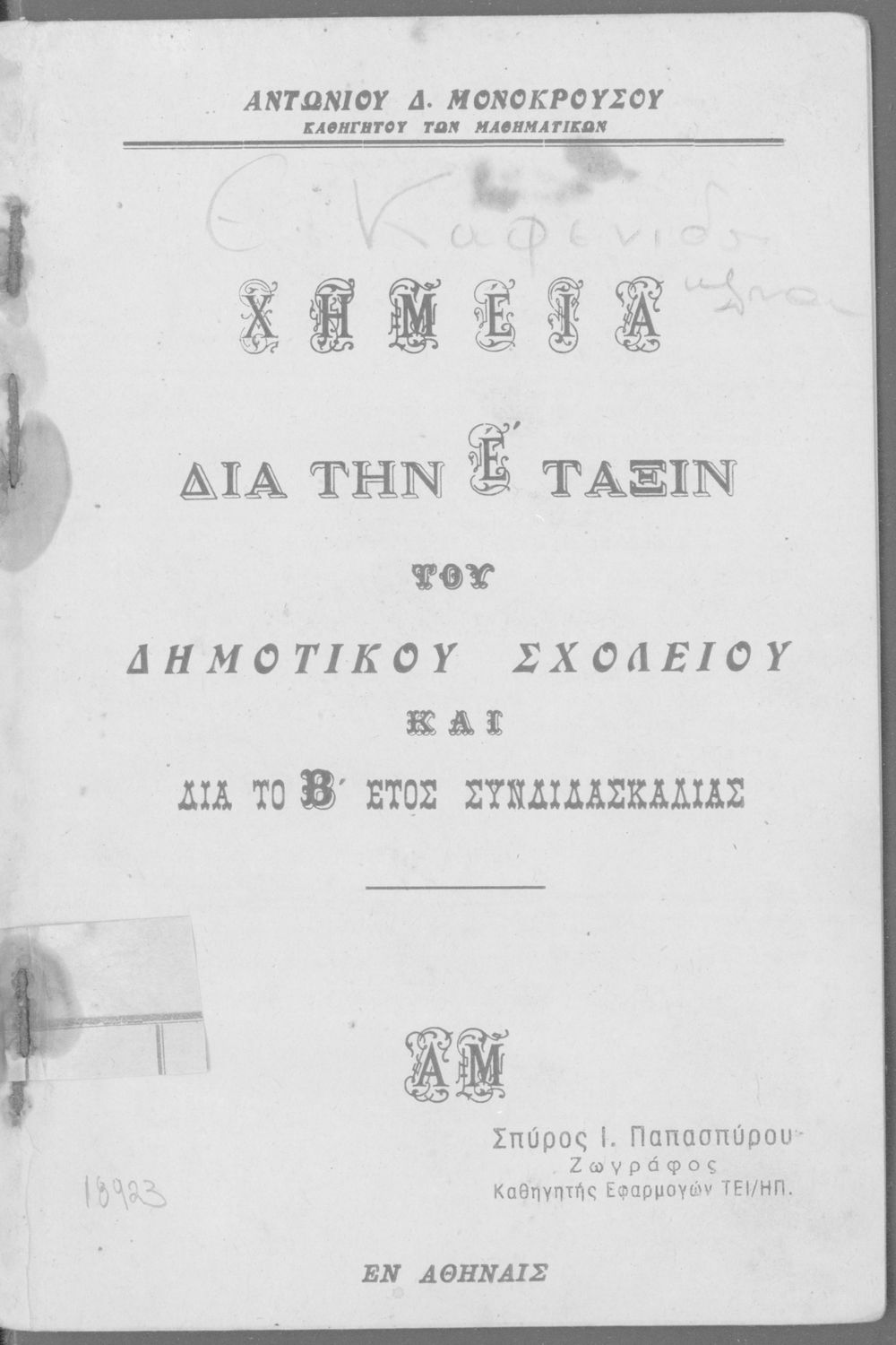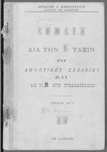 Τίτλος: Χημεία για τη Ε΄ τάξιν του Δημοτικού Σχολείου και για το Β΄ έτος Συνδιδασκαλίας