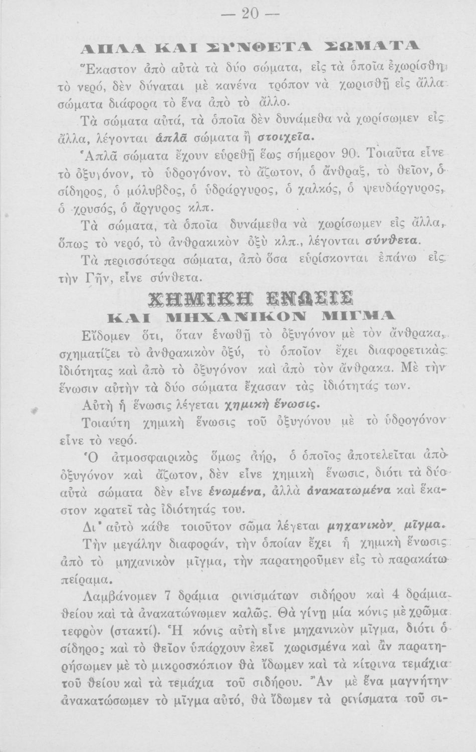Χημεία για τη Ε΄ τάξιν του Δημοτικού Σχολείου και για το Β΄ έτος Συνδιδασκαλίας
