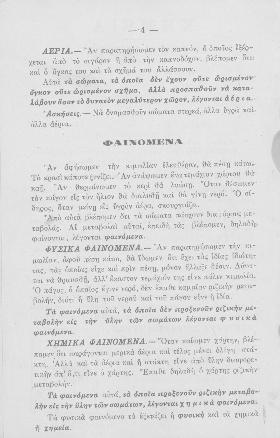 Το σύγγραμμα ήταν μαθητικό βοήθημα για το μάθημα της Φυσικής στο Δημοτικό . Παρέχει βασικές γνώσεις της φυσικής επιστήμης και της χημείας. Αναλύει τις ιδιότητες των σωμάτων, καθώς και της οπτικής, ακουστικής, ...