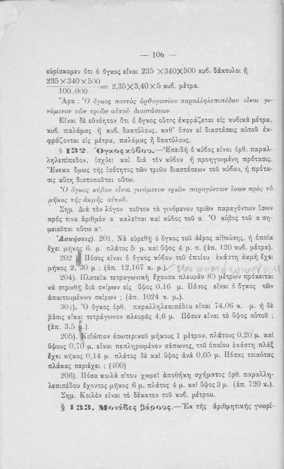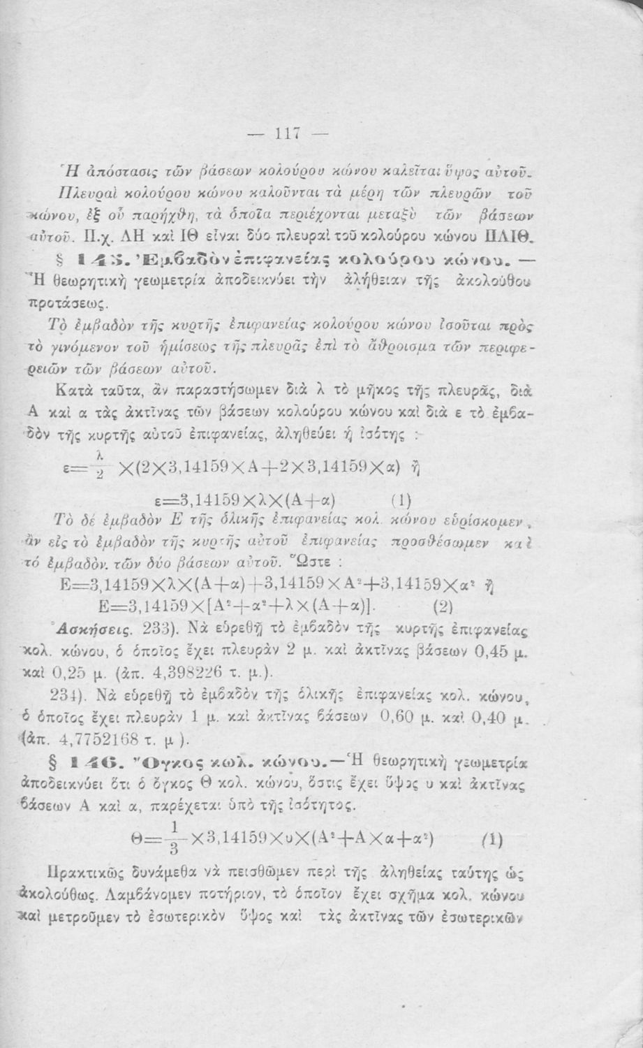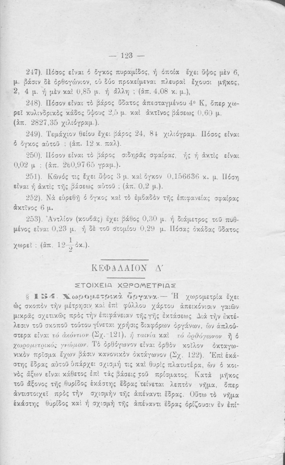Σχολικό εγχειρίδιο Γεωμετρίας για την Α΄, Β΄ και Γ΄ τάξη των Ελληνικών και Αστικών Σχολείων και Παρθεναγωγείων που είναι χωρισμένο σε Επιπεδομετρία και Στερεομετρία και περιλαμβάνει θεωρία και ασκήσεις.