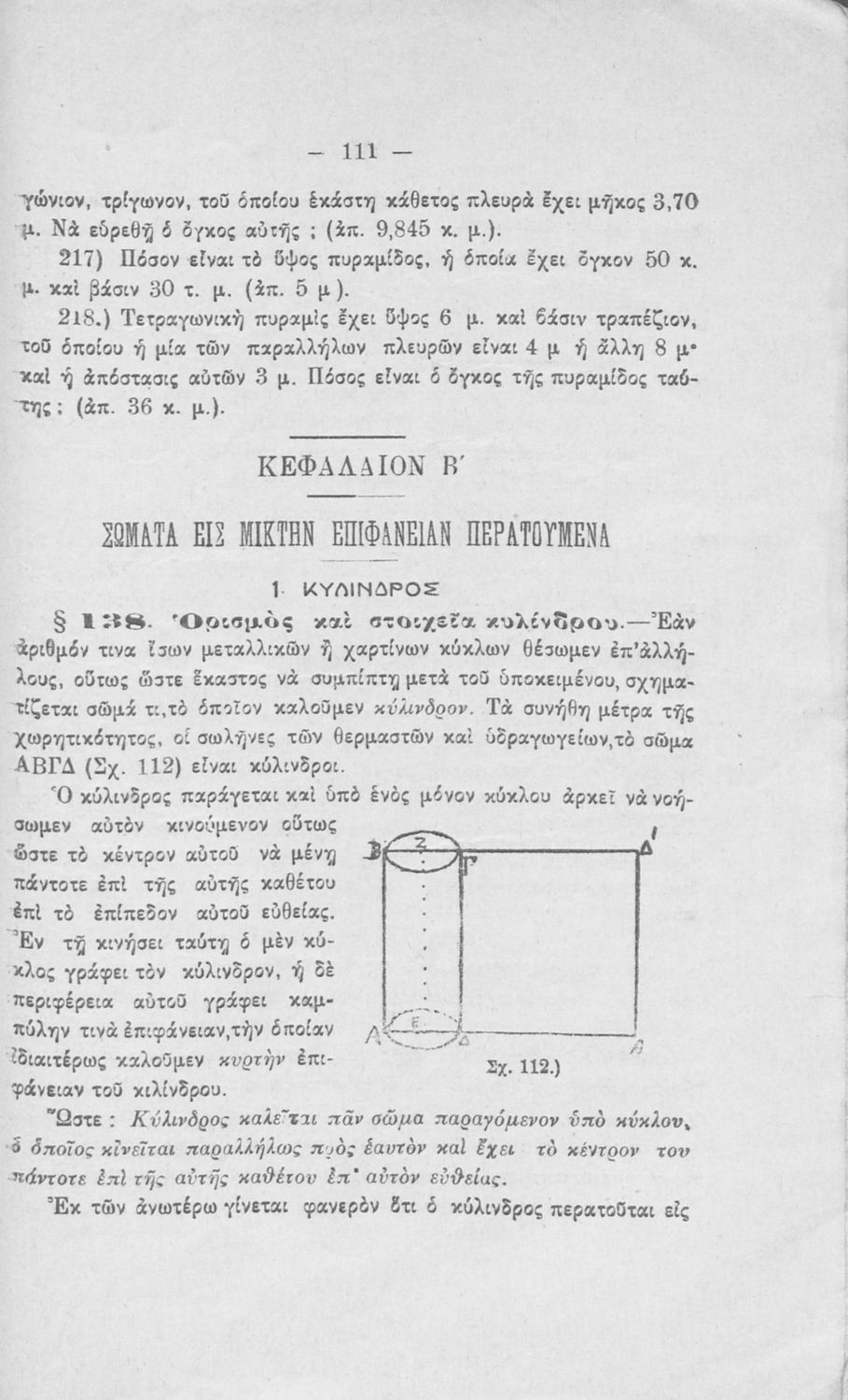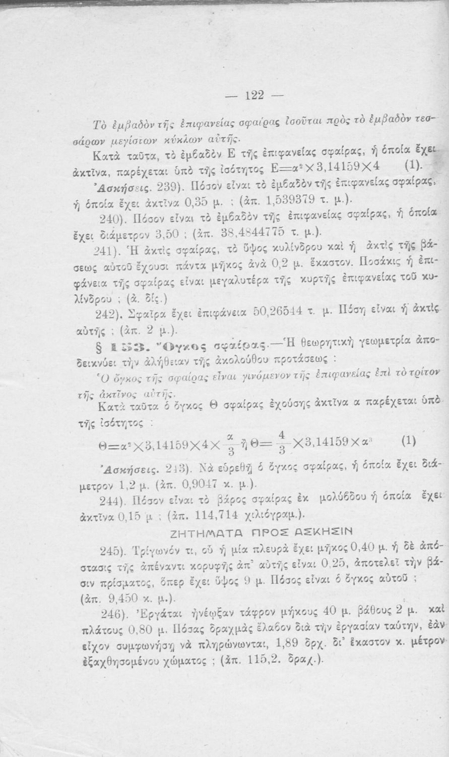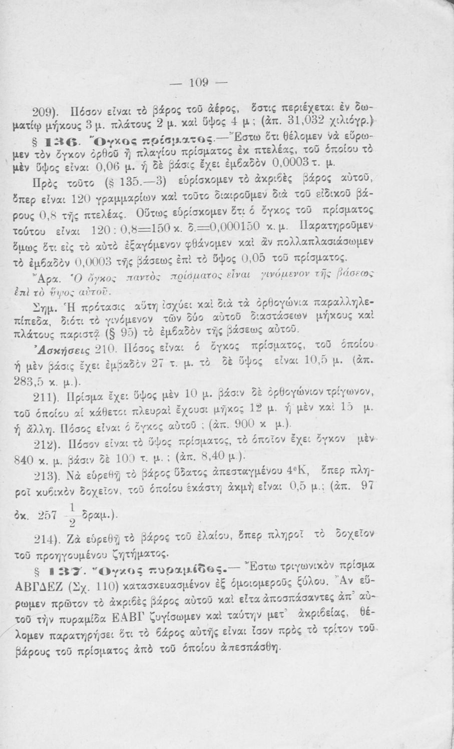Σχολικό εγχειρίδιο Γεωμετρίας για την Α΄, Β΄ και Γ΄ τάξη των Ελληνικών και Αστικών Σχολείων και Παρθεναγωγείων που είναι χωρισμένο σε Επιπεδομετρία και Στερεομετρία και περιλαμβάνει θεωρία και ασκήσεις.