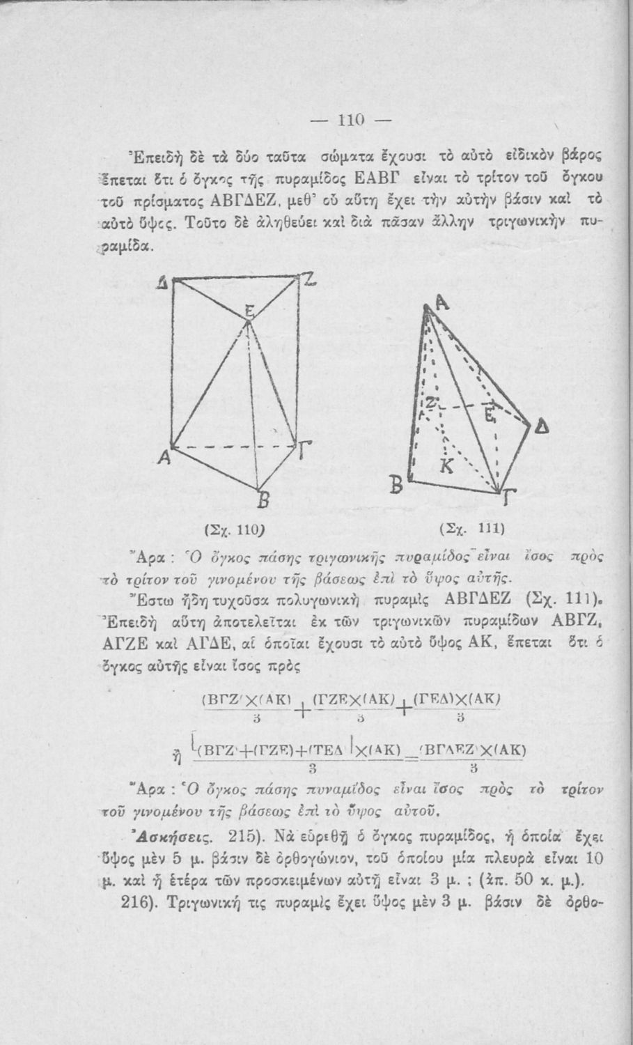 Σχολικό εγχειρίδιο Γεωμετρίας για τα Ελληνικά και Αστικά Σχολεία χωρισμένο σε Επιπεδομετρία και Στερεομετρία. Περιλαμβάνει προβλήματα και στοιχεία χωρομετρίας.