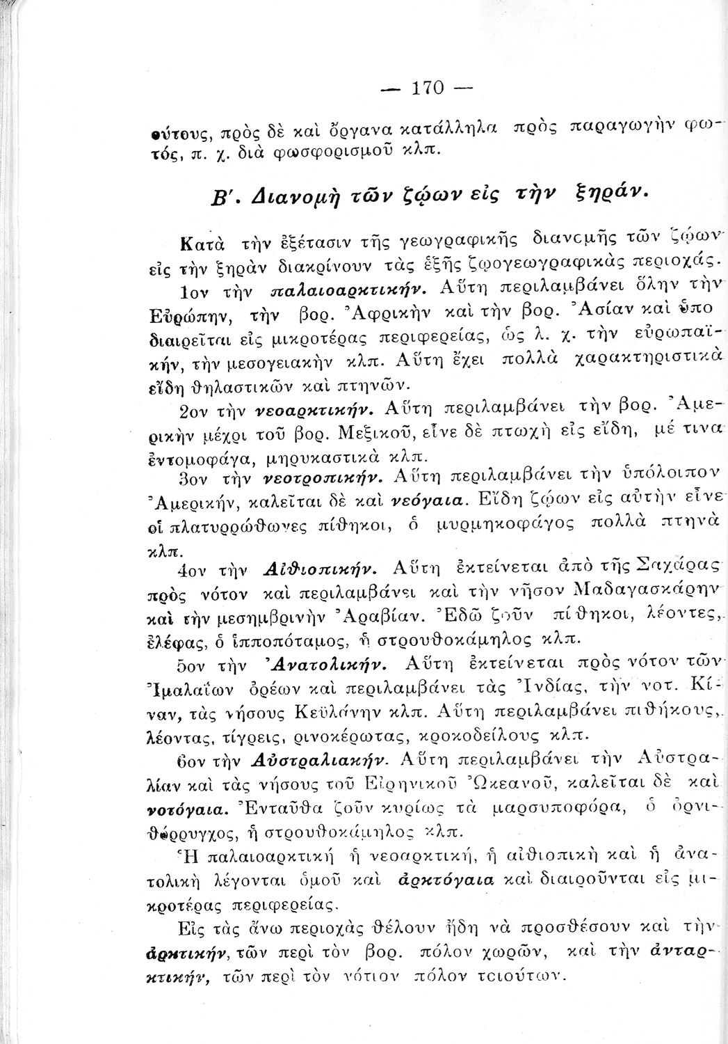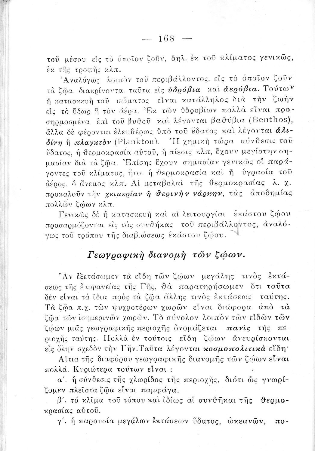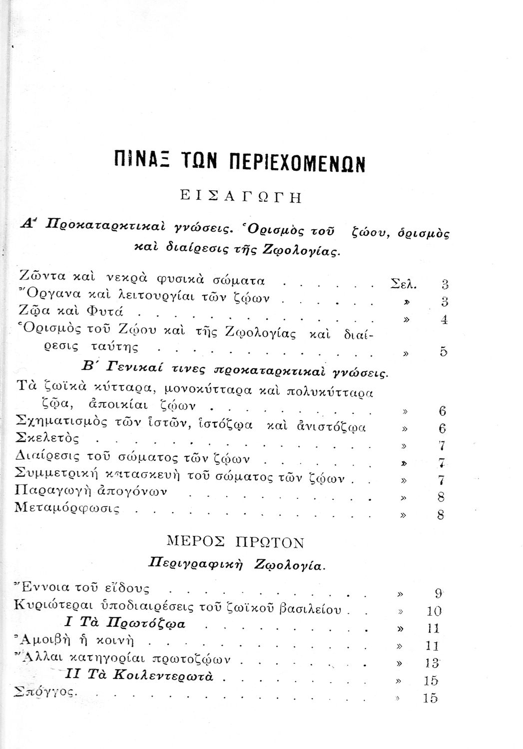 Σχολικό εγχειρίδιο Ζωολογίας για την Γ΄ Γυμνασίου χωρισμένο σε δύο ενότητες: την περιγραφική και τη γενική ζωολογία. Ο συγγραφέας ήταν πρώην καθηγητής πανεπιστημίου.
