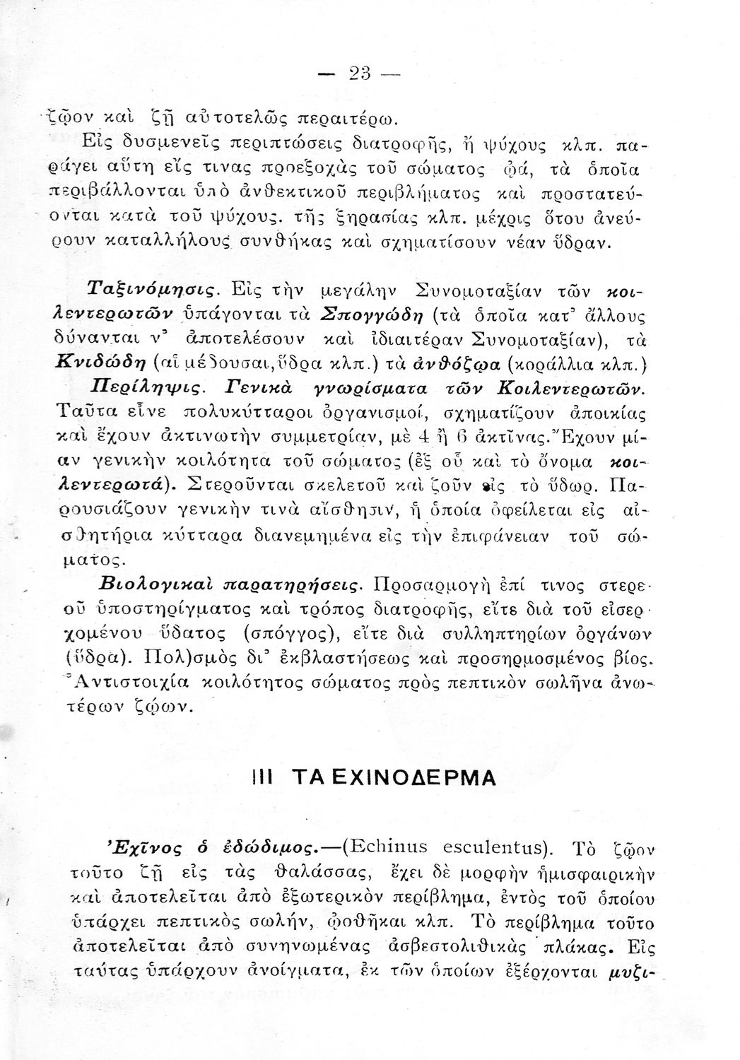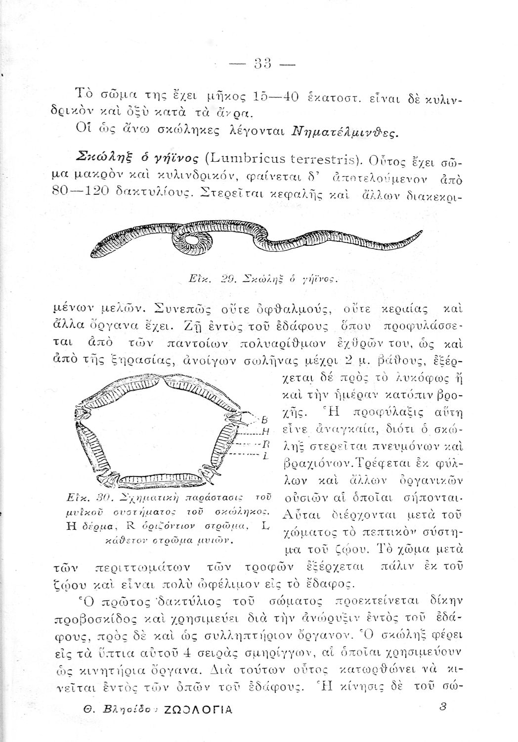 Σχολικό εγχειρίδιο Ζωολογίας για την Γ΄ Γυμνασίου χωρισμένο σε δύο ενότητες: την περιγραφική και τη γενική ζωολογία. Ο συγγραφέας ήταν πρώην καθηγητής πανεπιστημίου.