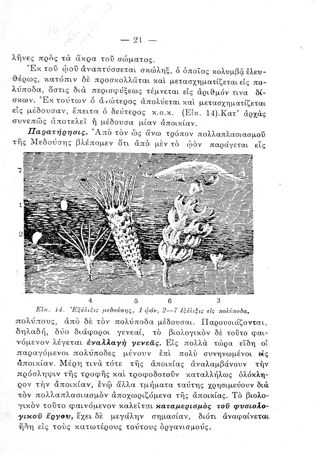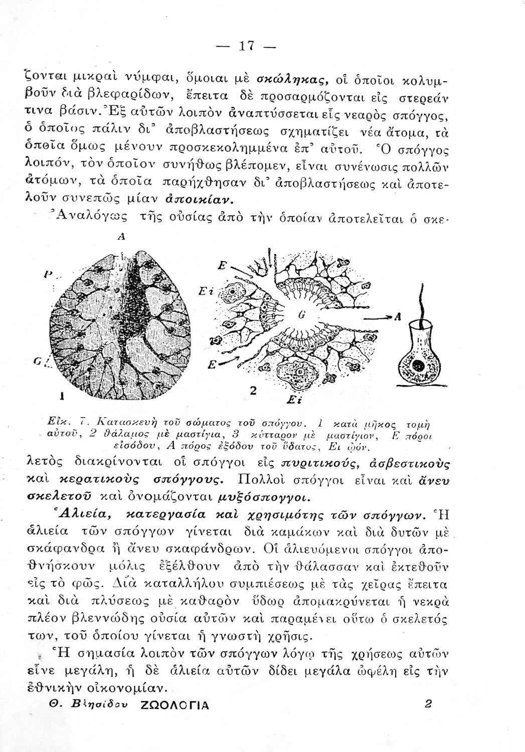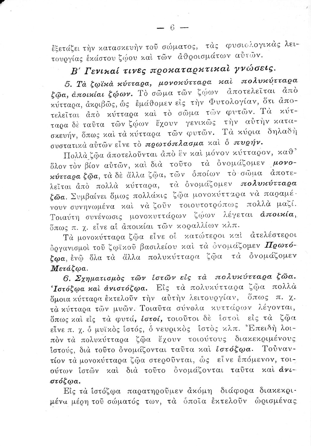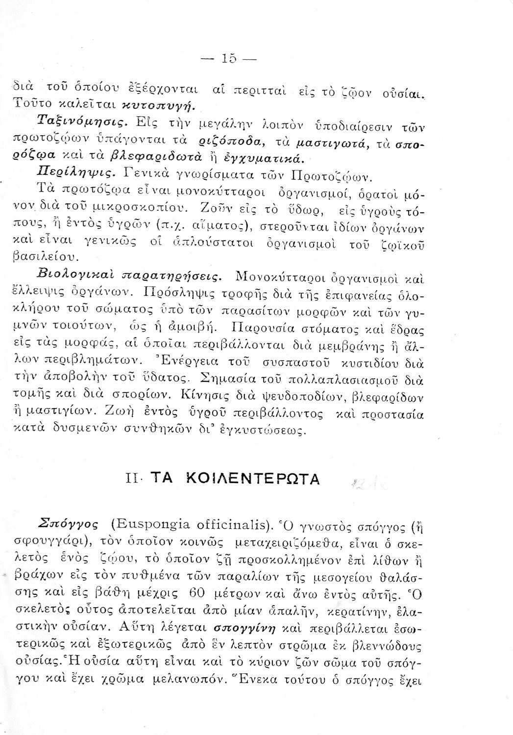 Σχολικό εγχειρίδιο Ζωολογίας για την Γ΄ Γυμνασίου χωρισμένο σε δύο ενότητες: την περιγραφική και τη γενική ζωολογία. Ο συγγραφέας ήταν πρώην καθηγητής πανεπιστημίου.