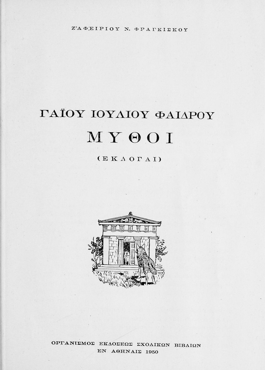 Σχολικό εγχειρίδιο Λατινικών που περιέχει σύντομο βιογραφικό σημείωμα του Φαίδρου, εισαγωγή στο έργο, κείμενο και σημειώσεις