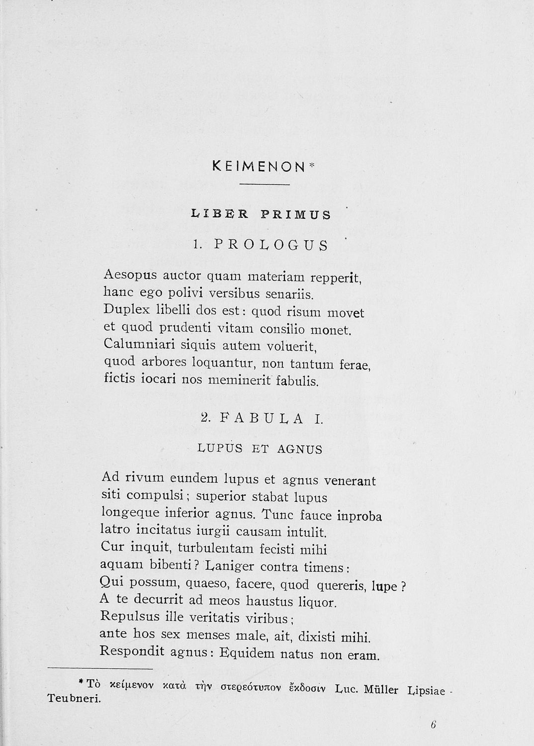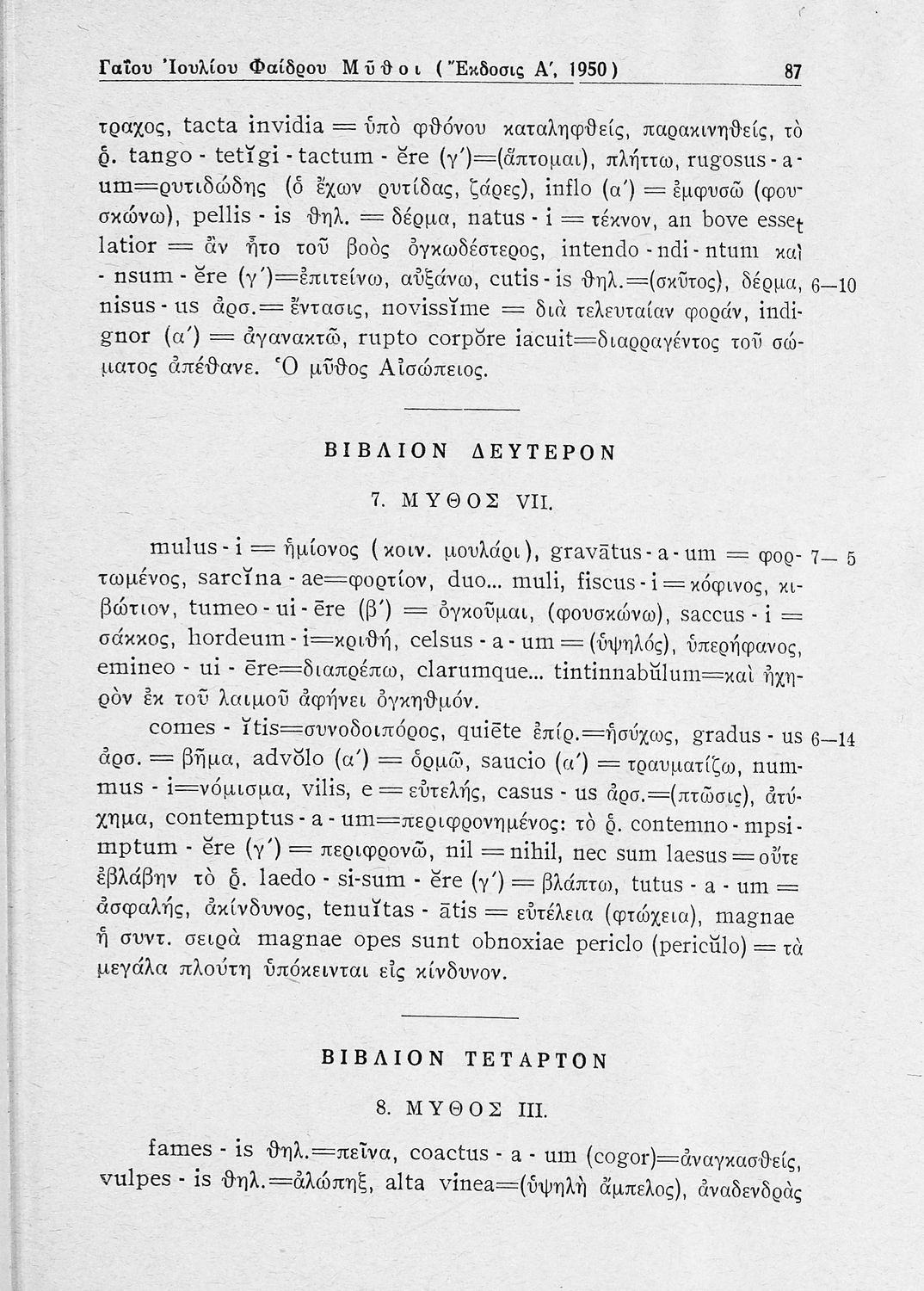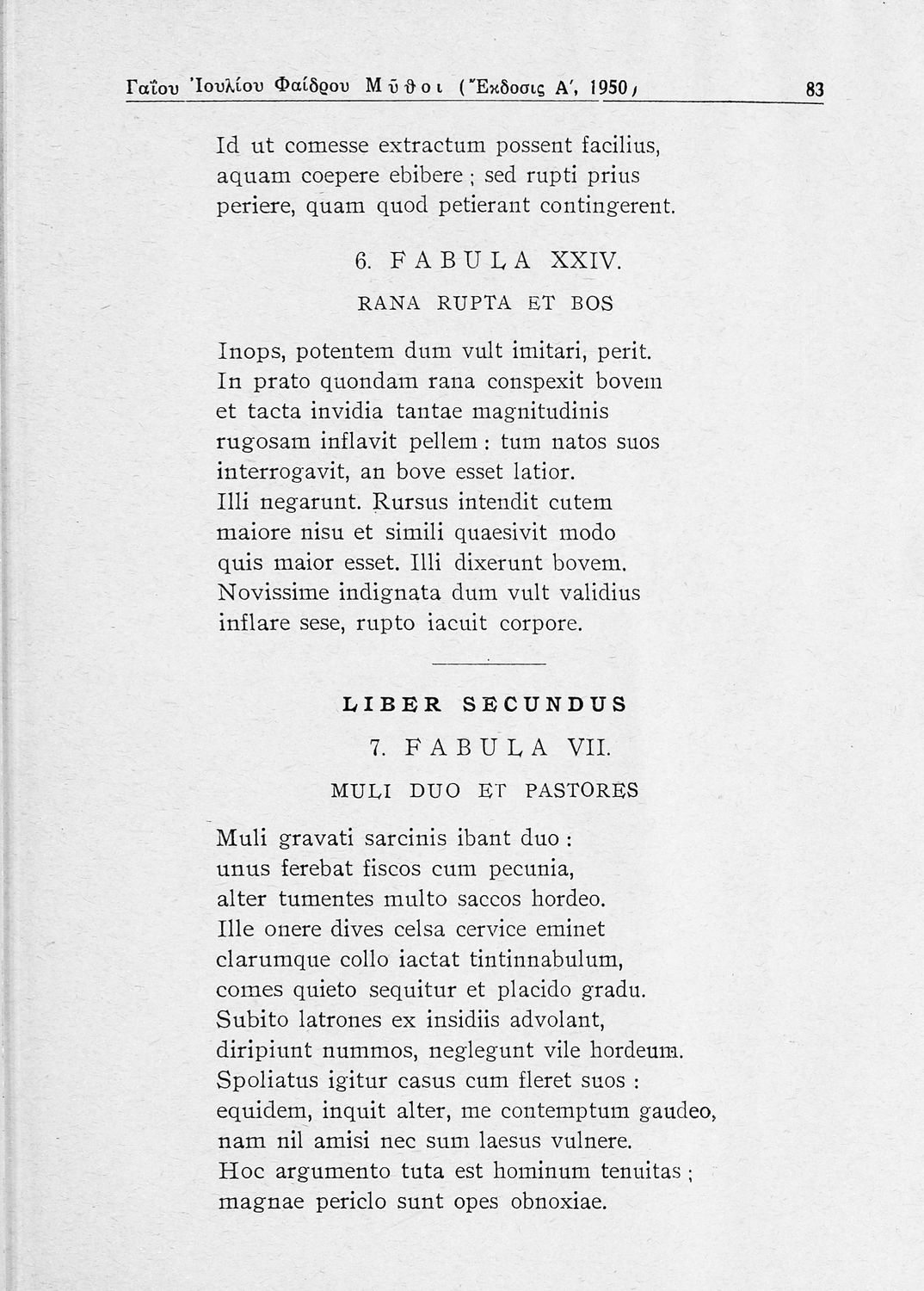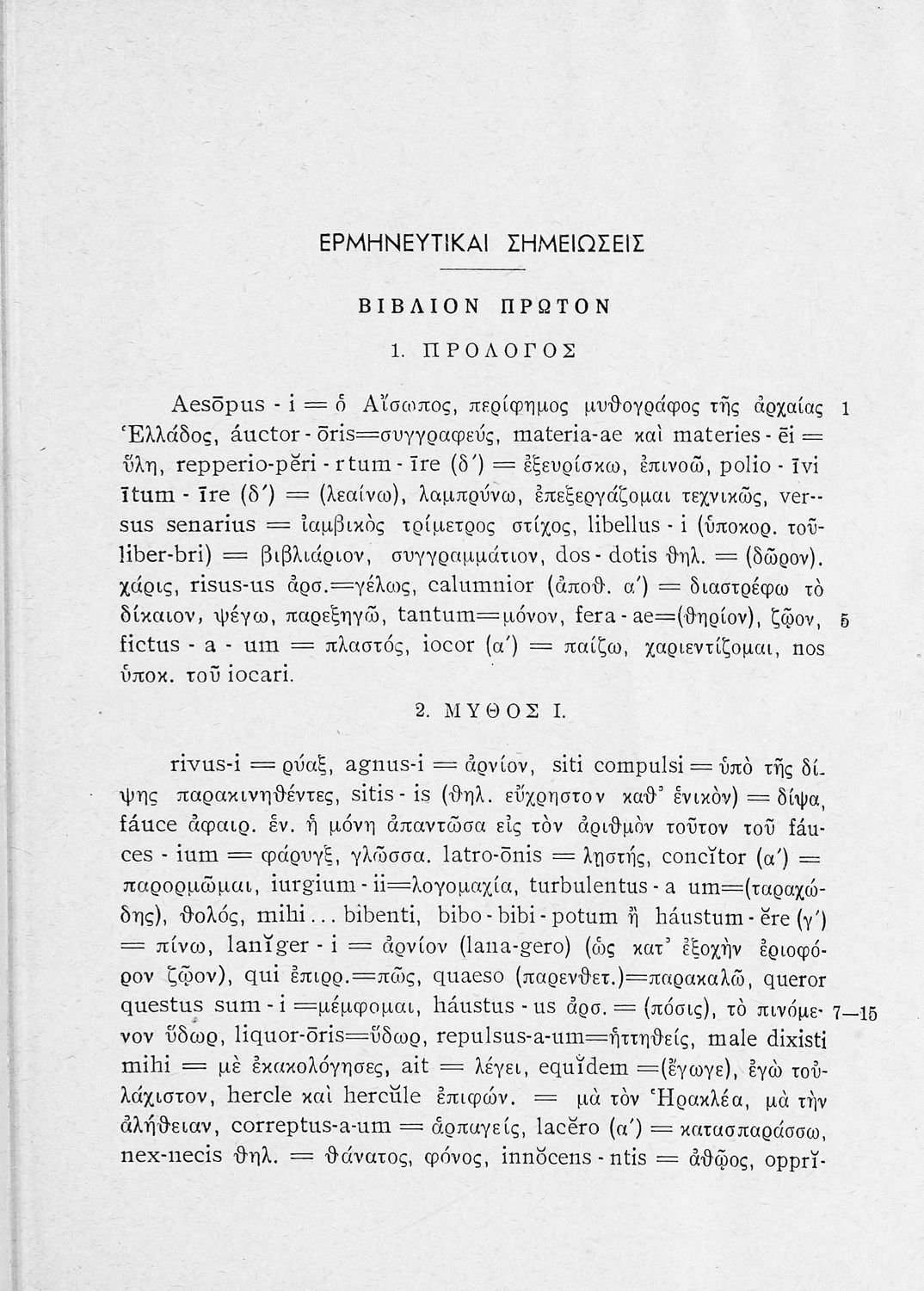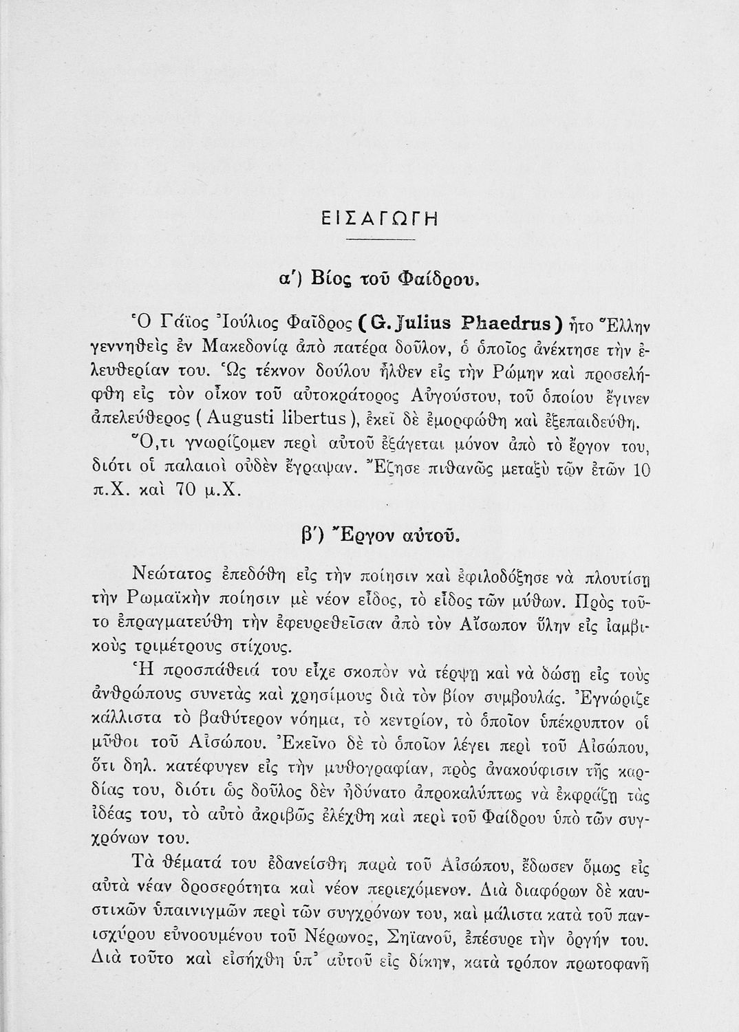 Σχολικό εγχειρίδιο Λατινικών που περιέχει σύντομο βιογραφικό σημείωμα του Φαίδρου, εισαγωγή στο έργο, κείμενο και σημειώσεις