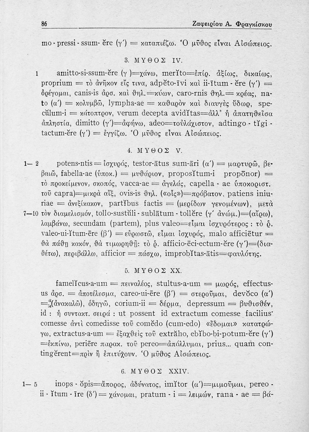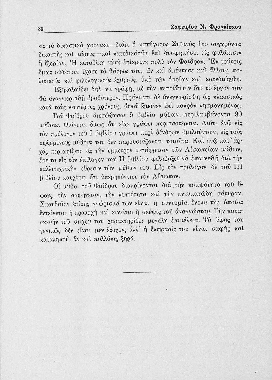 Γάιος Ιούλιος Φαίδρος (G. Julius Phaedrus), Ζαφείριος Ν. Φραγκίσκος (σχόλια)