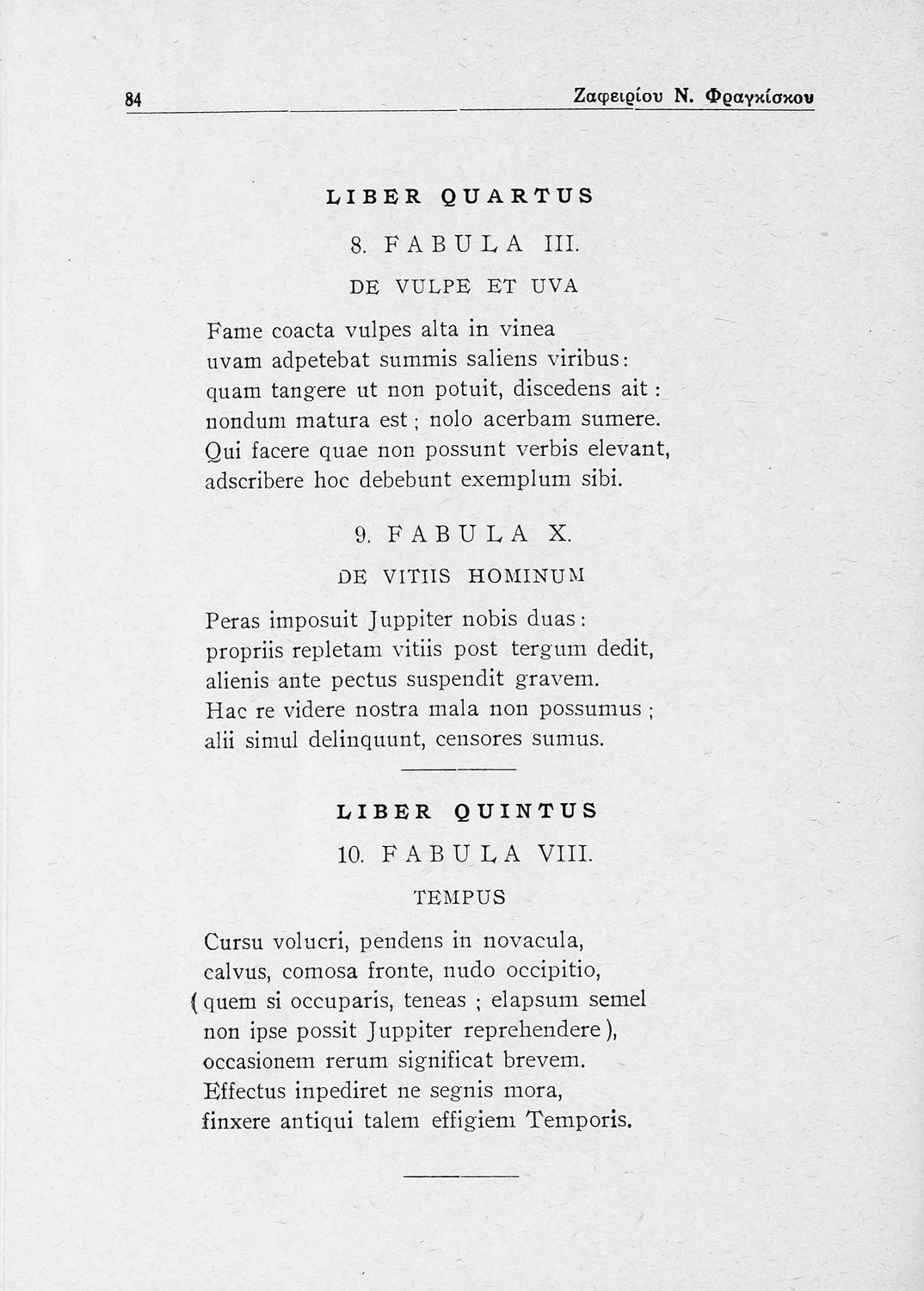 Σχολικό εγχειρίδιο Λατινικών που περιέχει σύντομο βιογραφικό σημείωμα των Ρούφου και Φαίδρου, εισαγωγή στο έργο, κείμενο και ερμηνευτικές σημειώσεις.