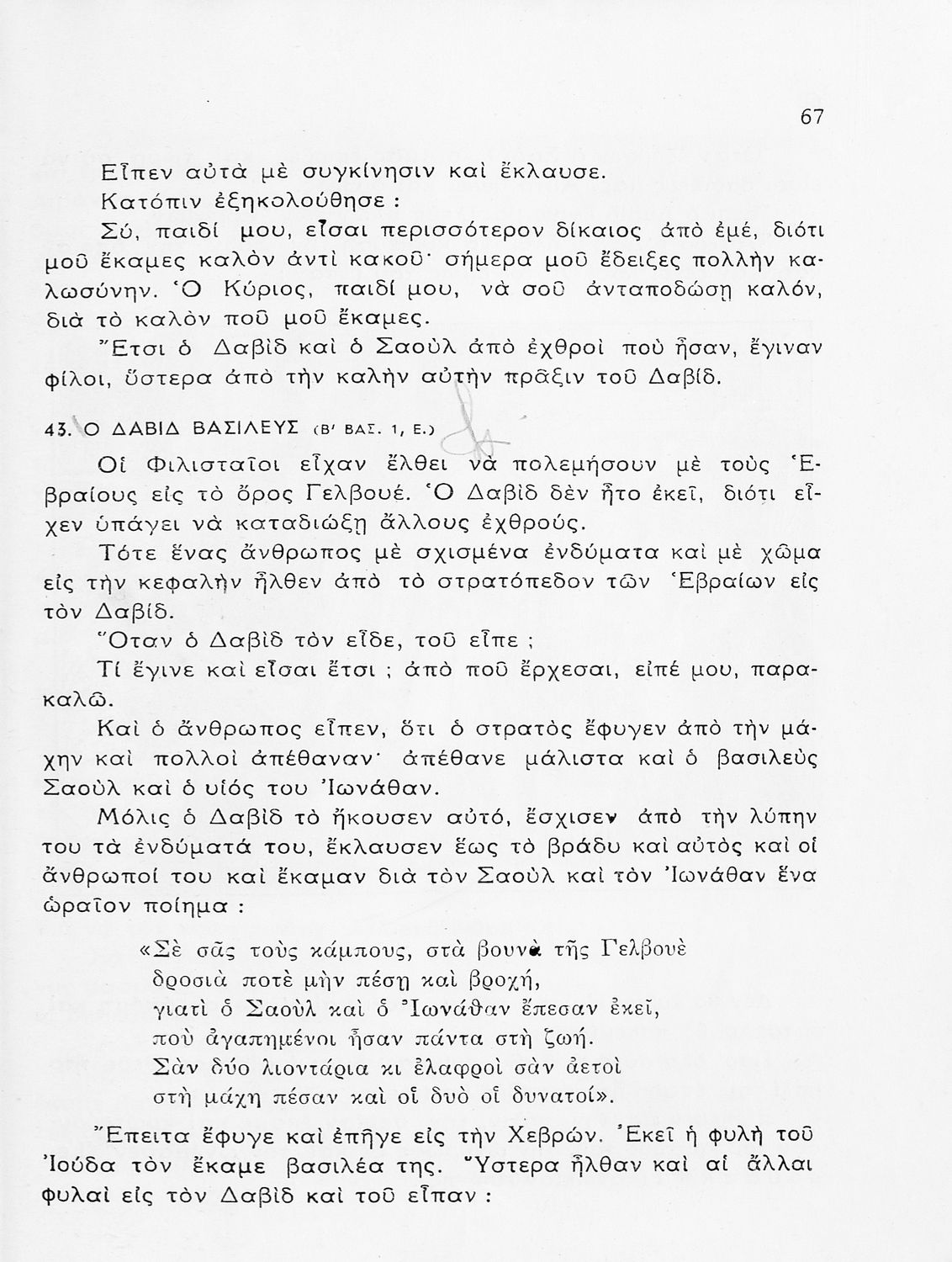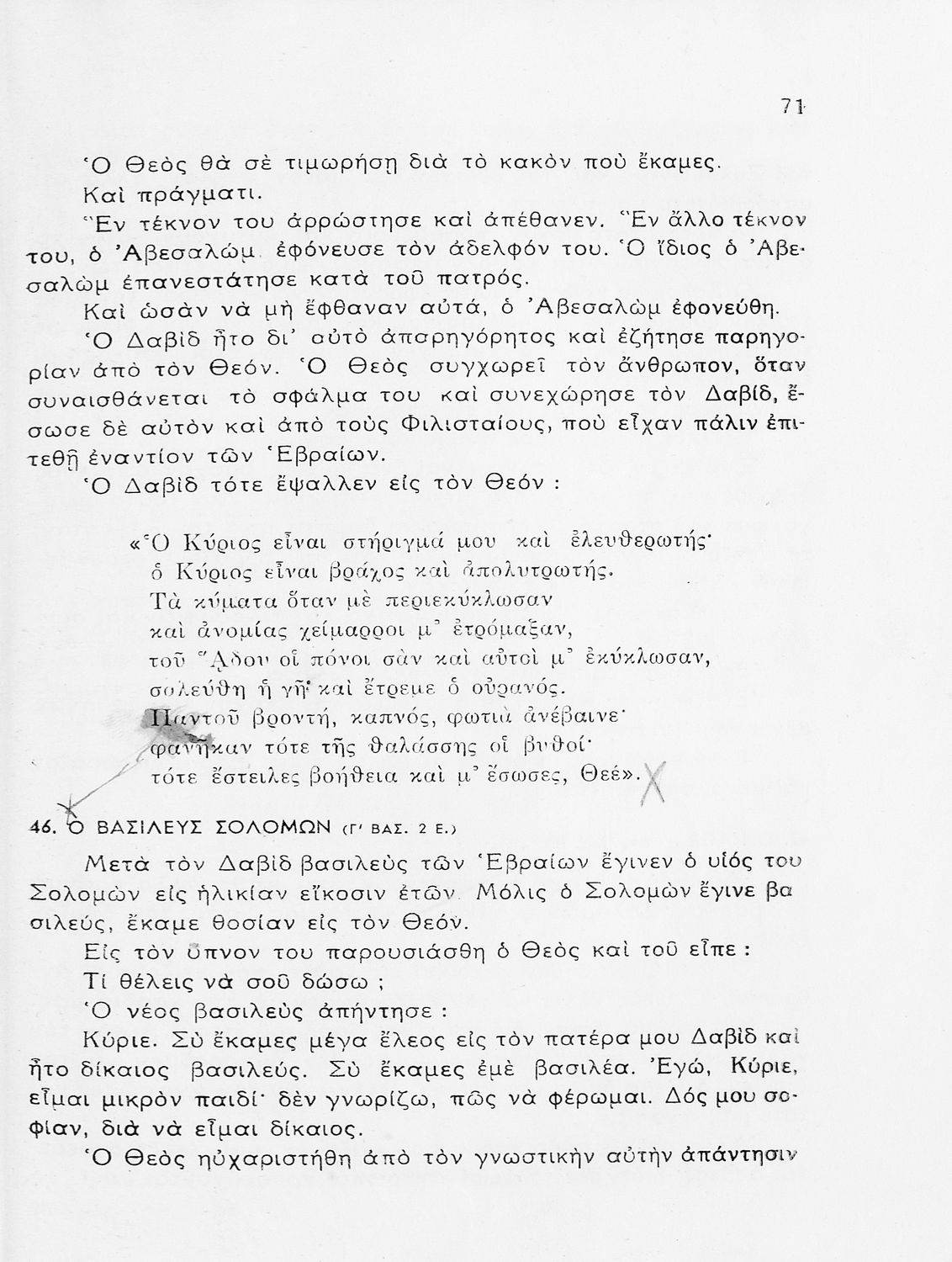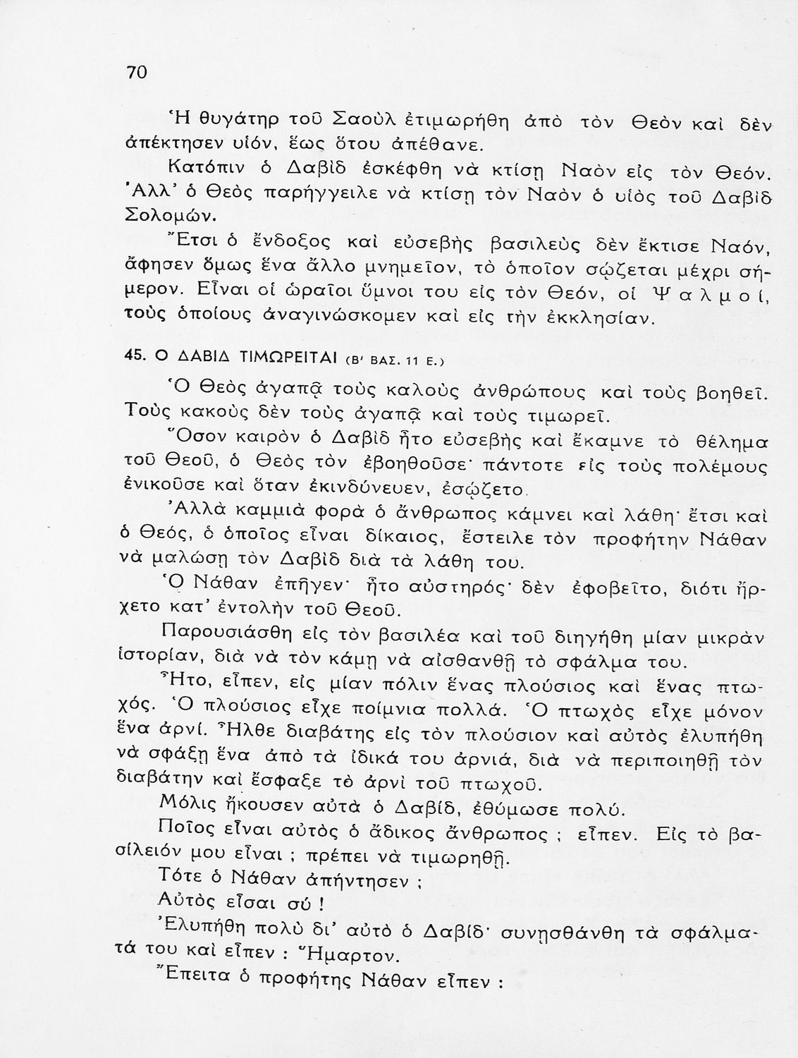 Σχολικό εγχειρίδιο Θρησκευτικών Α΄ Γυμνασίου που συνιστά μία εξιστόρηση της Παλαιάς Διαθήκης από τη δημιουργία του κόσμου ως την υποταγή των Εβραίων στους Ρωμαίους.