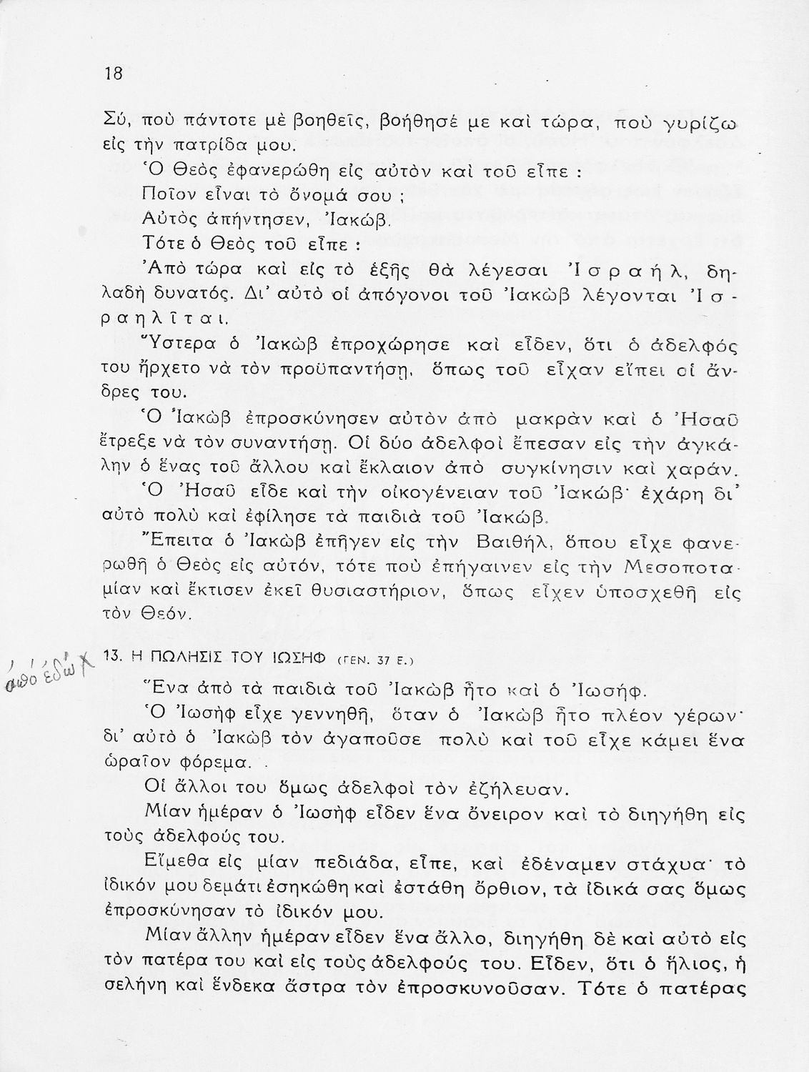 Σχολικό εγχειρίδιο Θρησκευτικών Α΄ Γυμνασίου που συνιστά μία εξιστόρηση της Παλαιάς Διαθήκης από τη δημιουργία του κόσμου ως την υποταγή των Εβραίων στους Ρωμαίους.