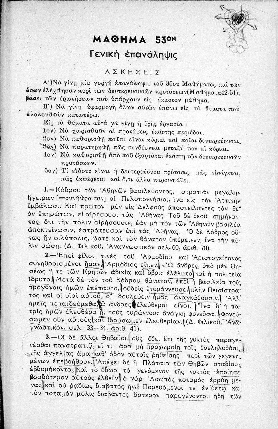 Μαθητικό βοήθημα Αρχαίων Ελληνικών Γυμνασίου που εξετάζει τα μέρη του λόγου και την σύνταξή τους.