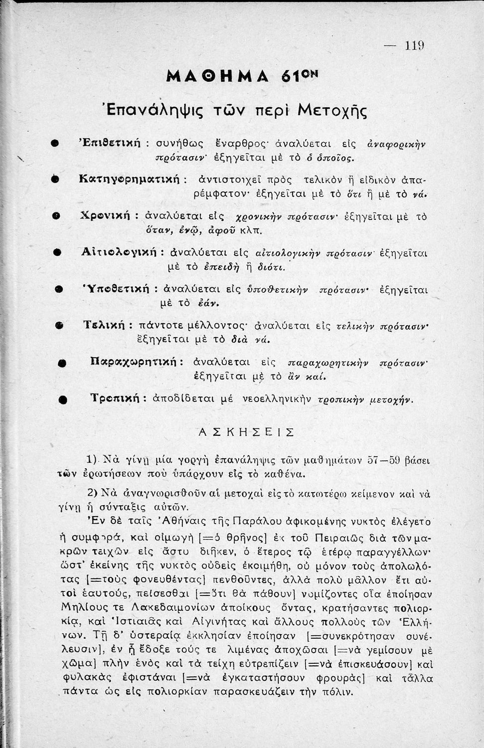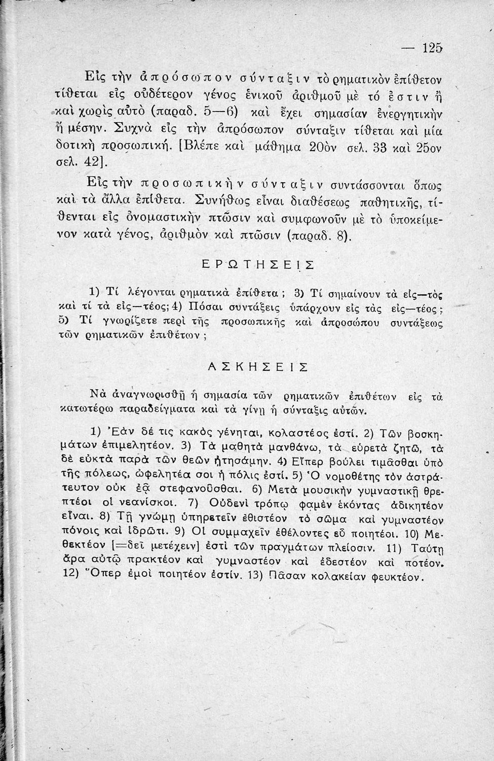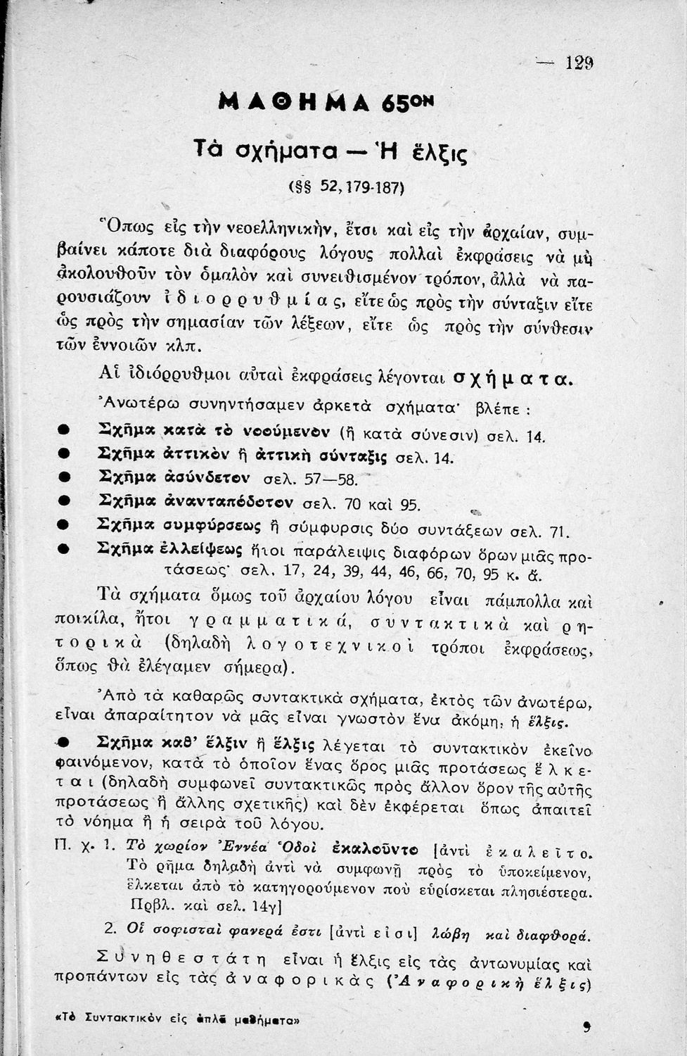 Μαθητικό βοήθημα Αρχαίων Ελληνικών Γυμνασίου που εξετάζει τα μέρη του λόγου και την σύνταξή τους.