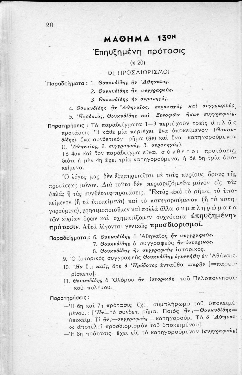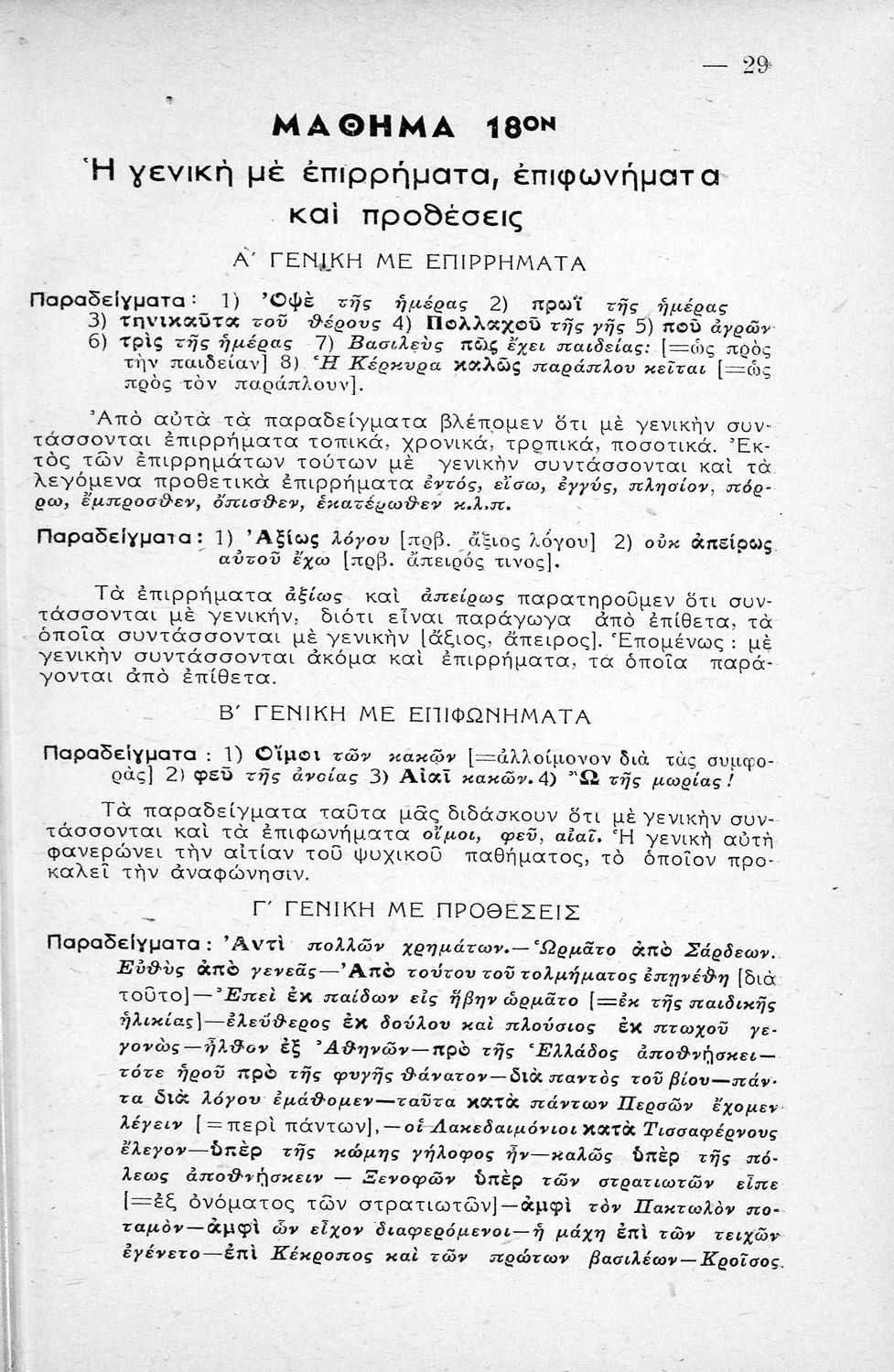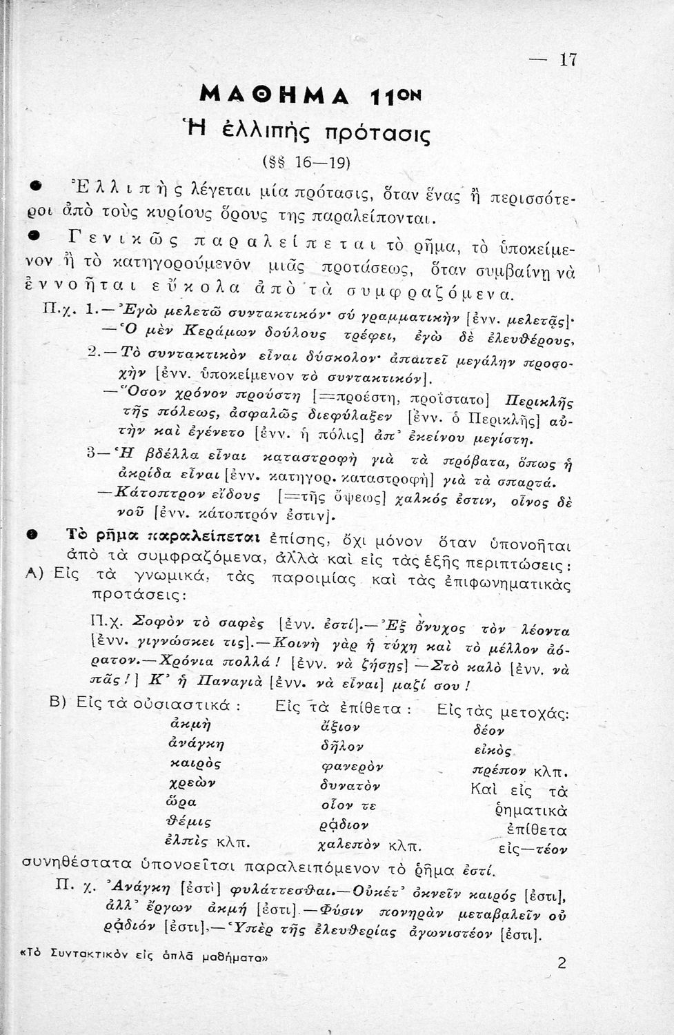 Μαθητικό βοήθημα Αρχαίων Ελληνικών Γυμνασίου που εξετάζει τα μέρη του λόγου και την σύνταξή τους.