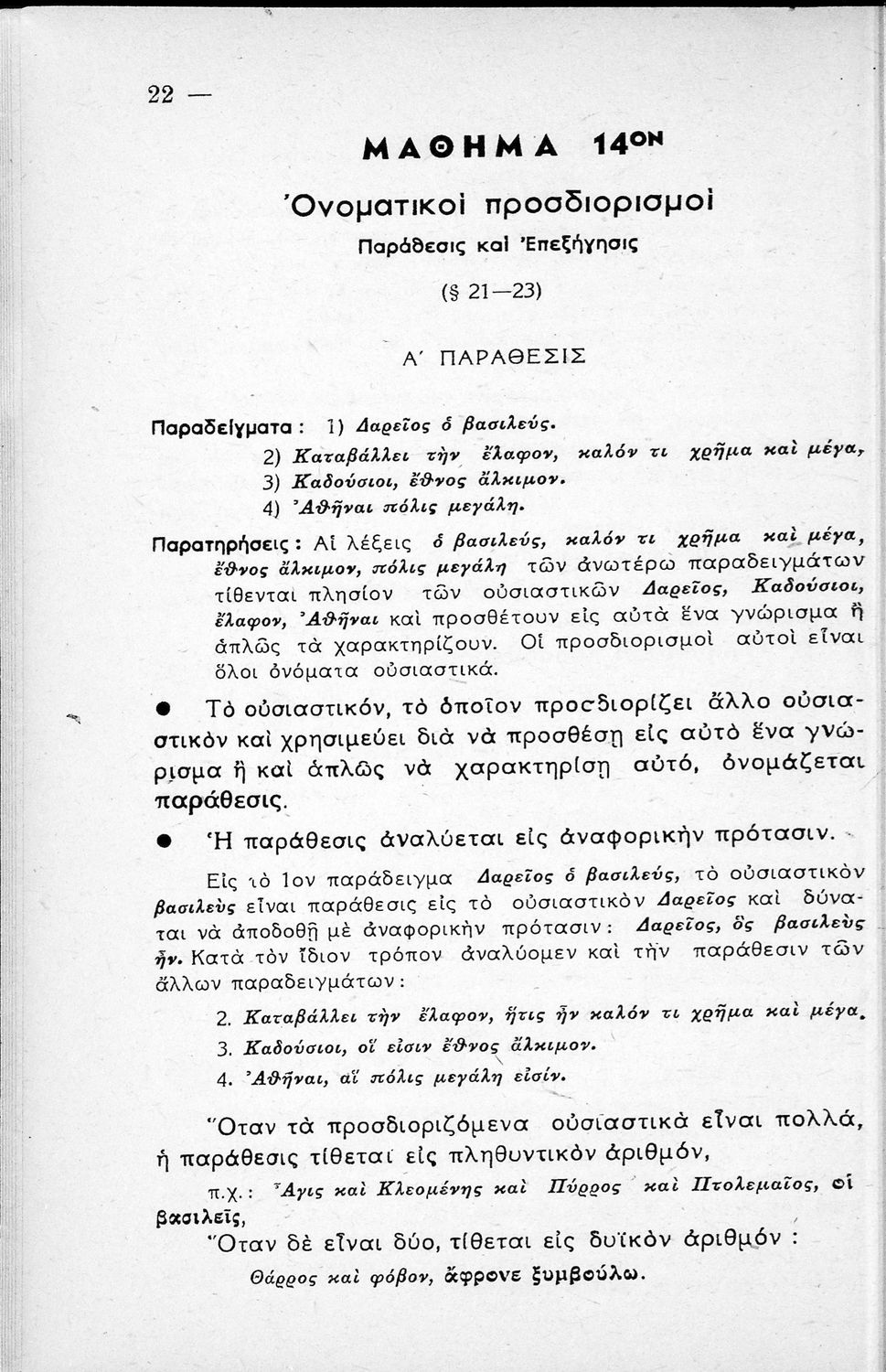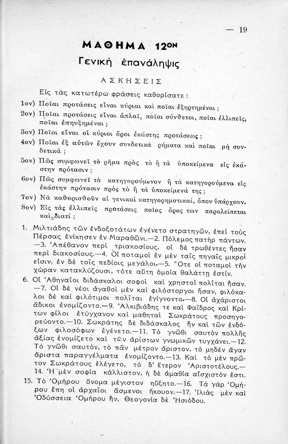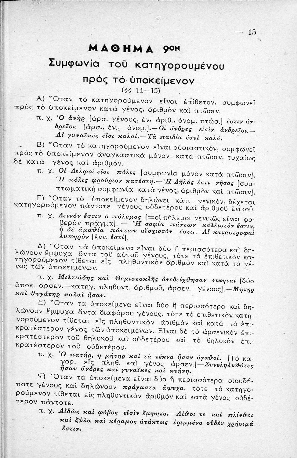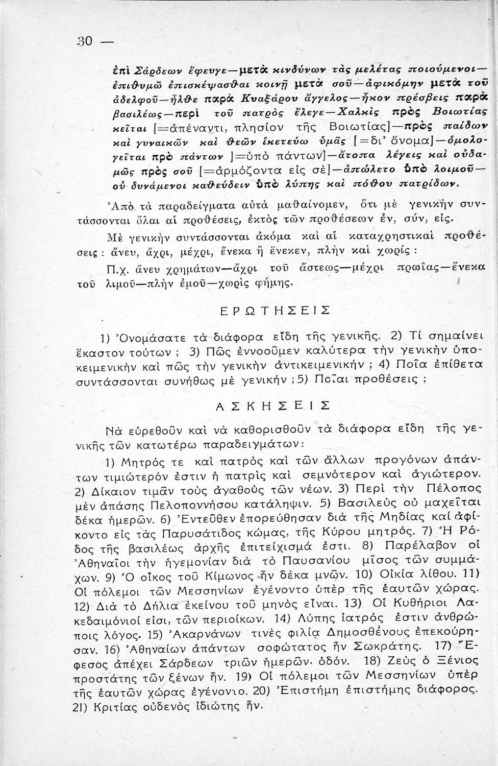 Μαθητικό βοήθημα Αρχαίων Ελληνικών Γυμνασίου που εξετάζει τα μέρη του λόγου και την σύνταξή τους.