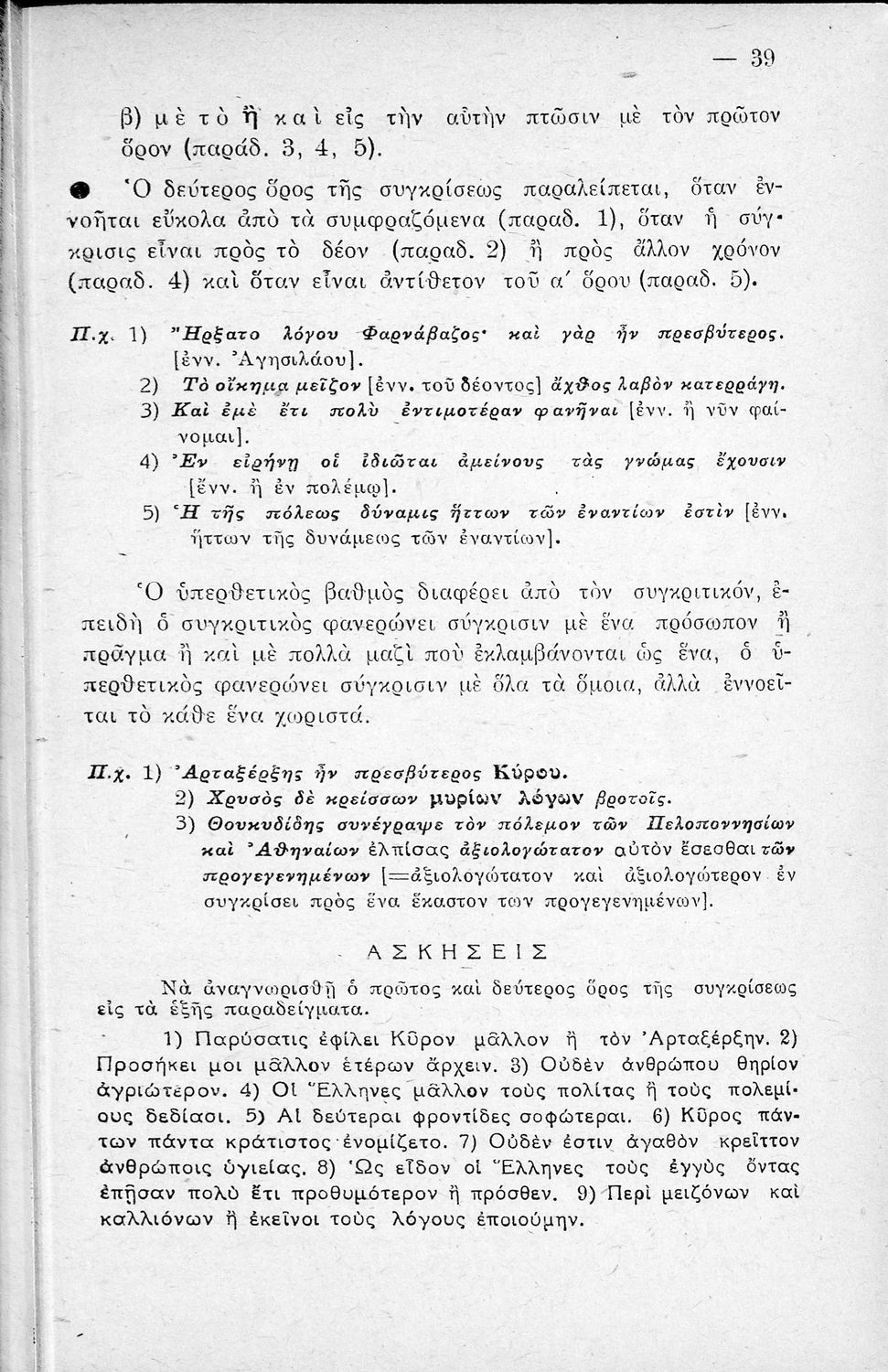 Μαθητικό βοήθημα Αρχαίων Ελληνικών Γυμνασίου που εξετάζει τα μέρη του λόγου και την σύνταξή τους.
