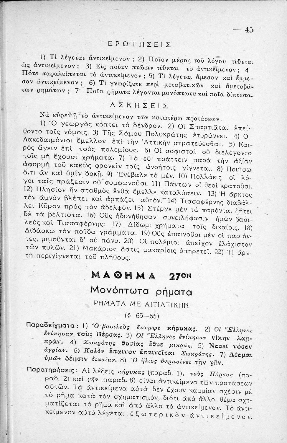 520 ## _aΜαθητικό βοήθημα Αρχαίων Ελληνικών Γυμνασίου που εξετάζει τα μέρη του λόγου και την σύνταξή τους.