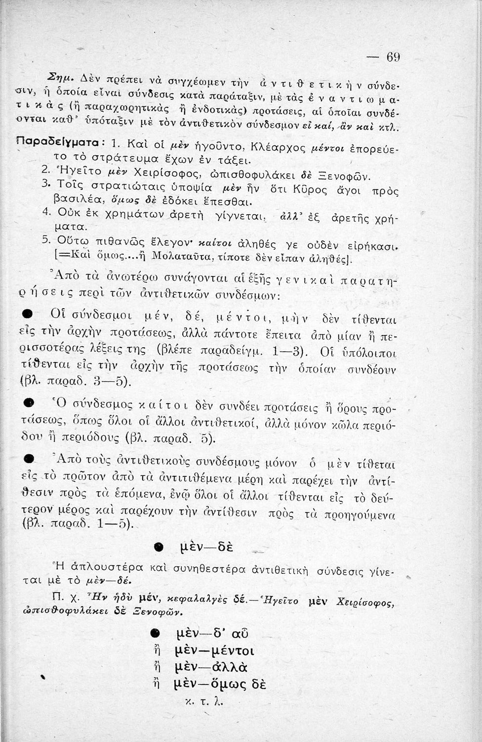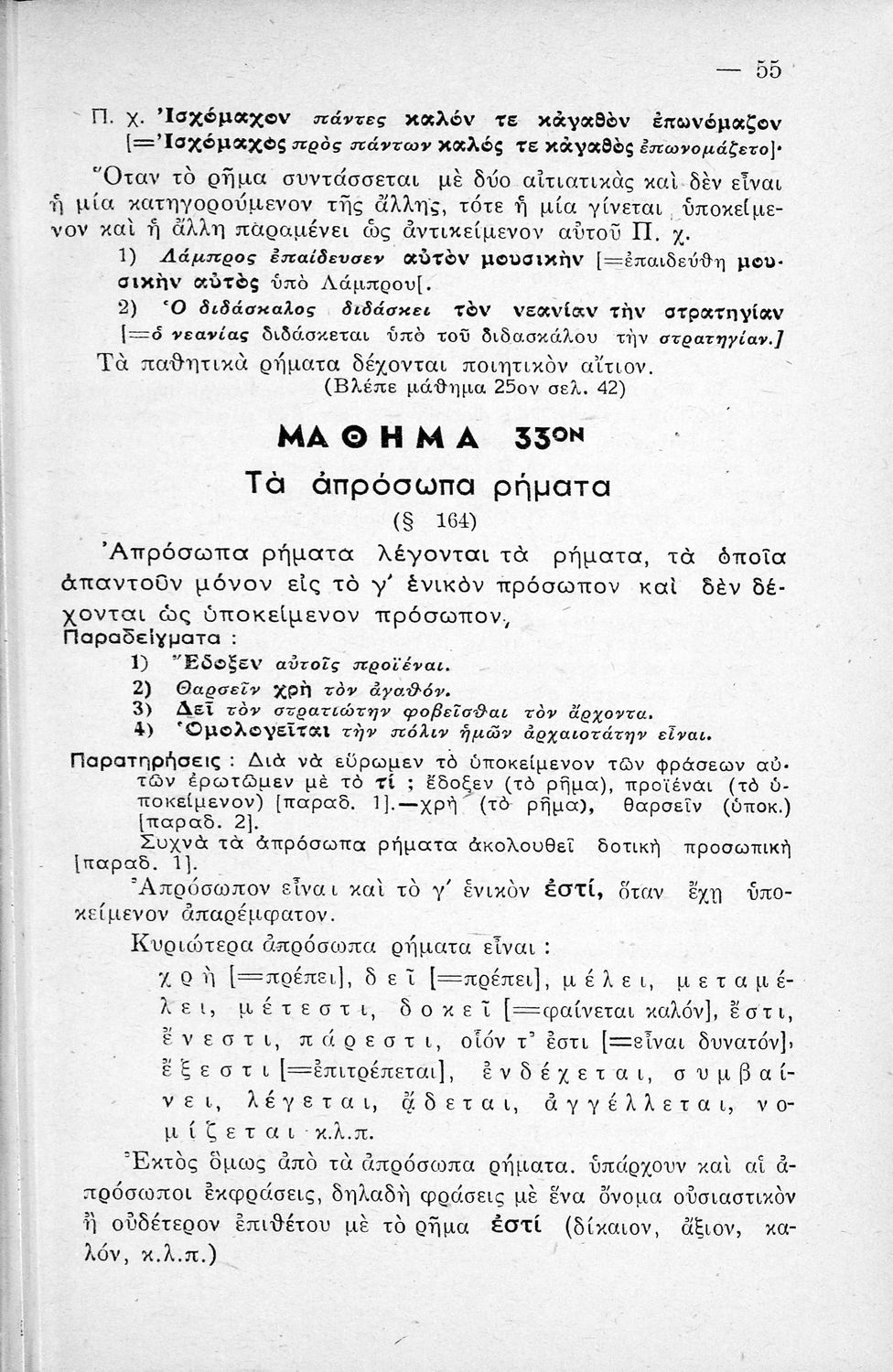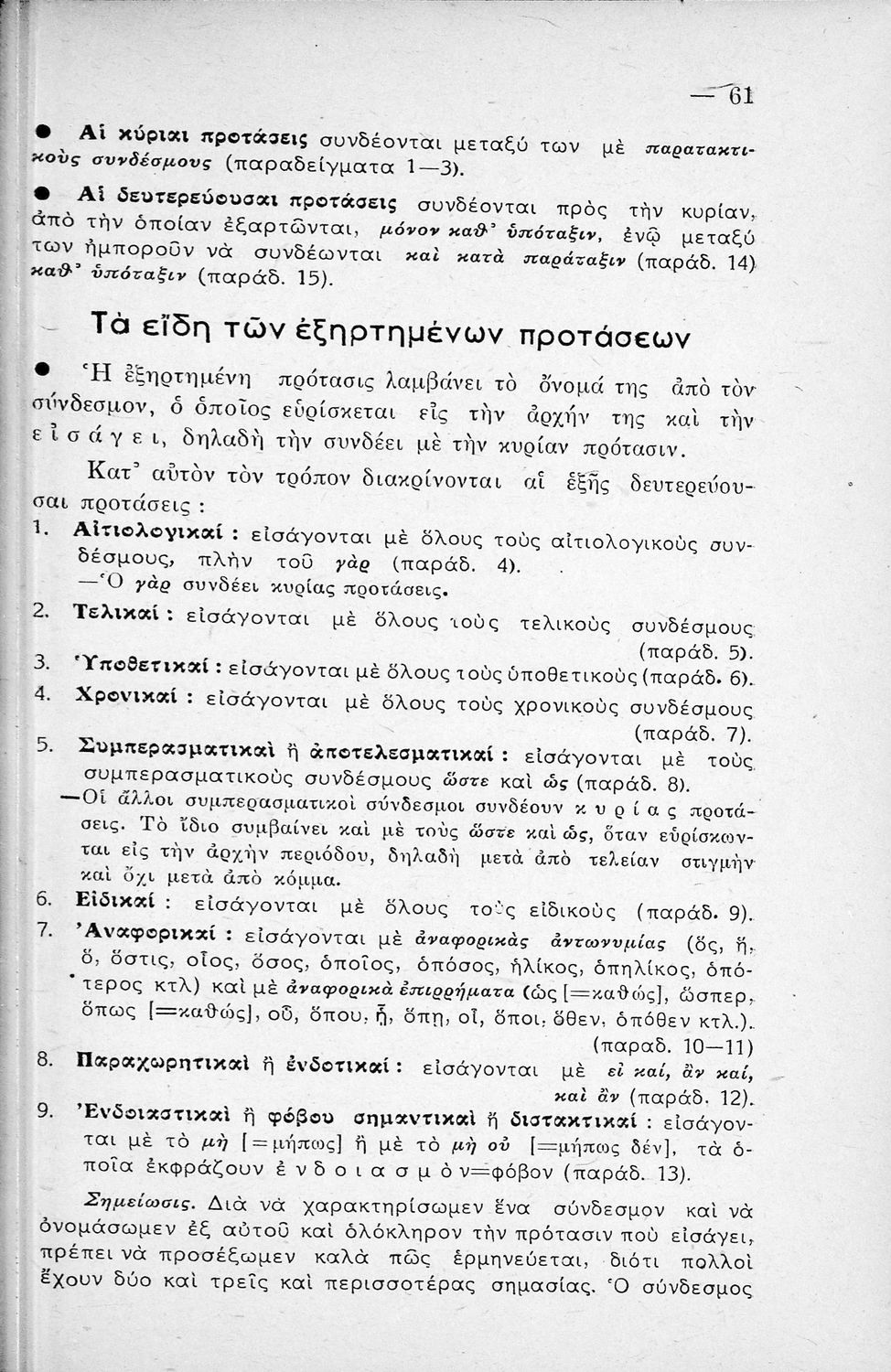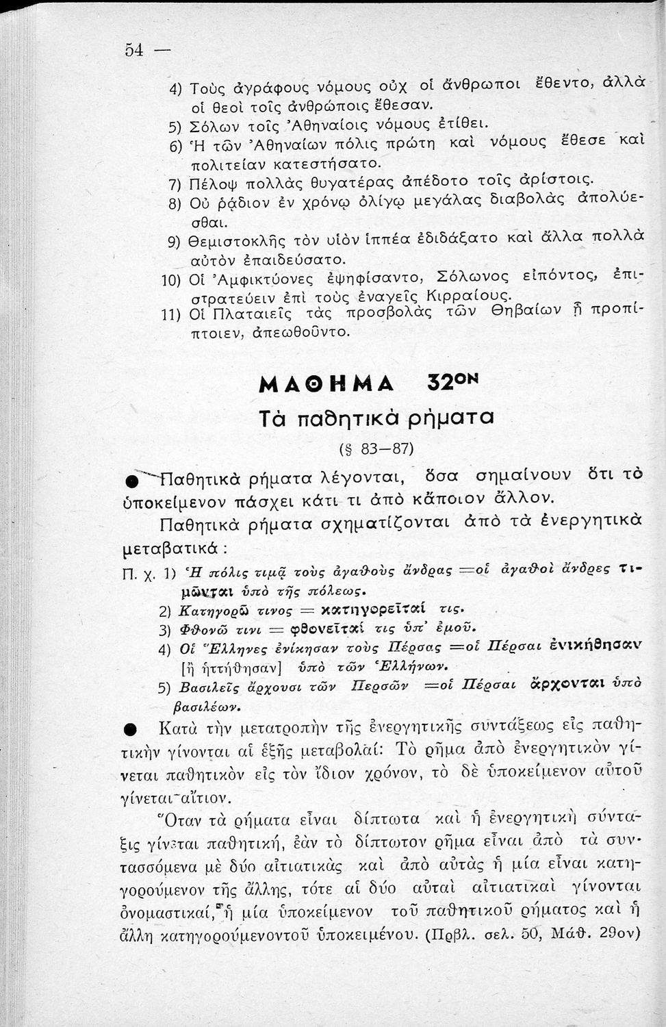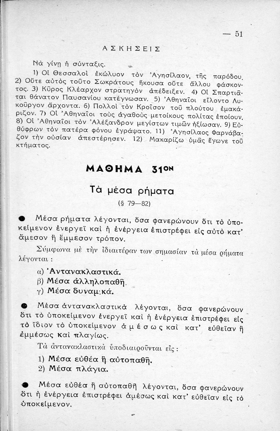 Μαθητικό βοήθημα Αρχαίων Ελληνικών Γυμνασίου που εξετάζει τα μέρη του λόγου και την σύνταξή τους.