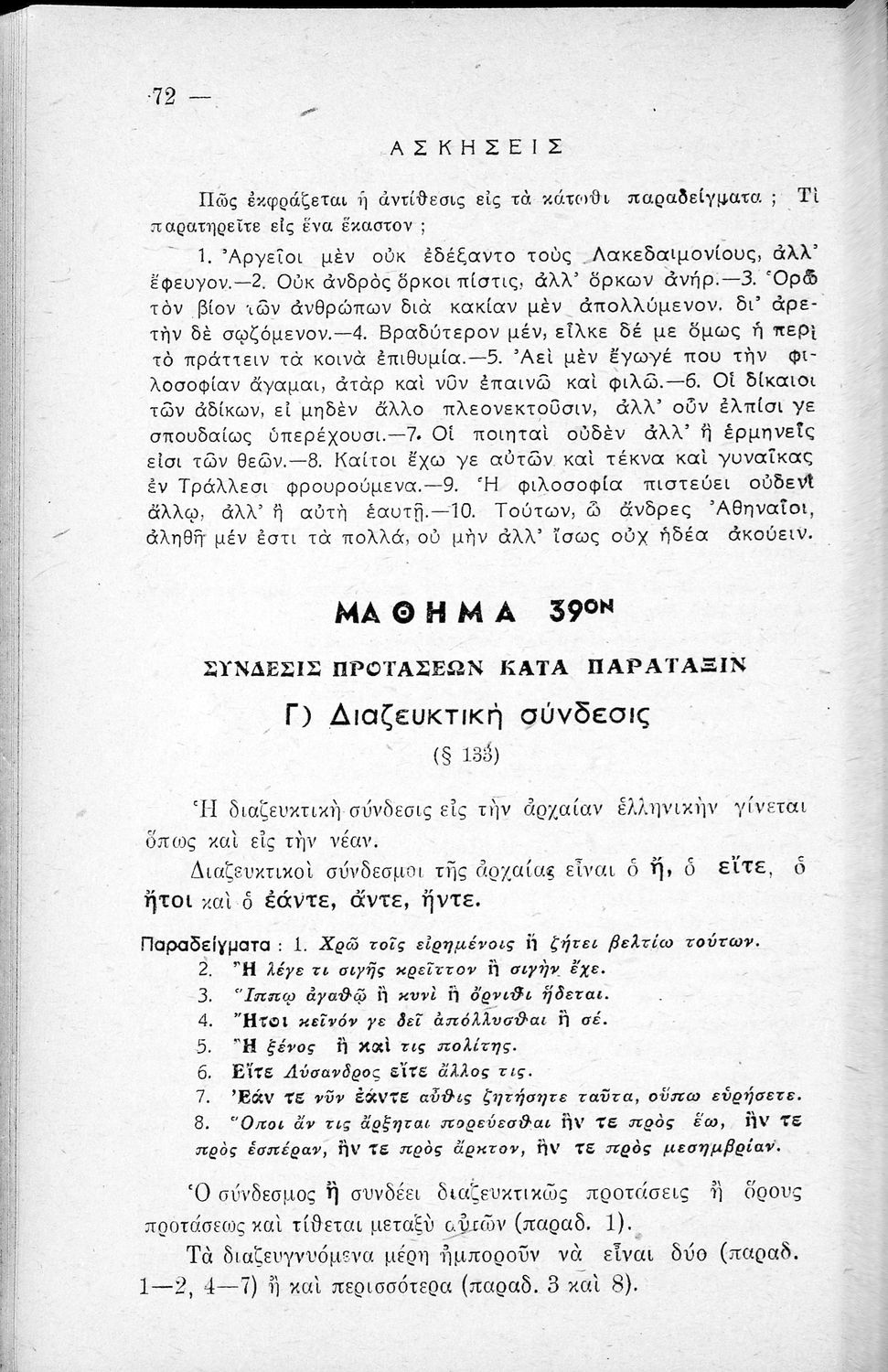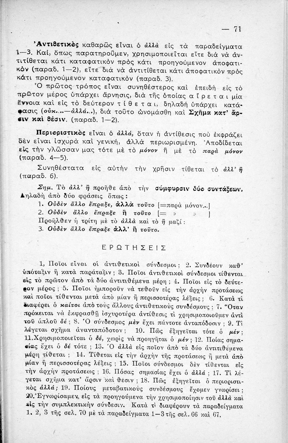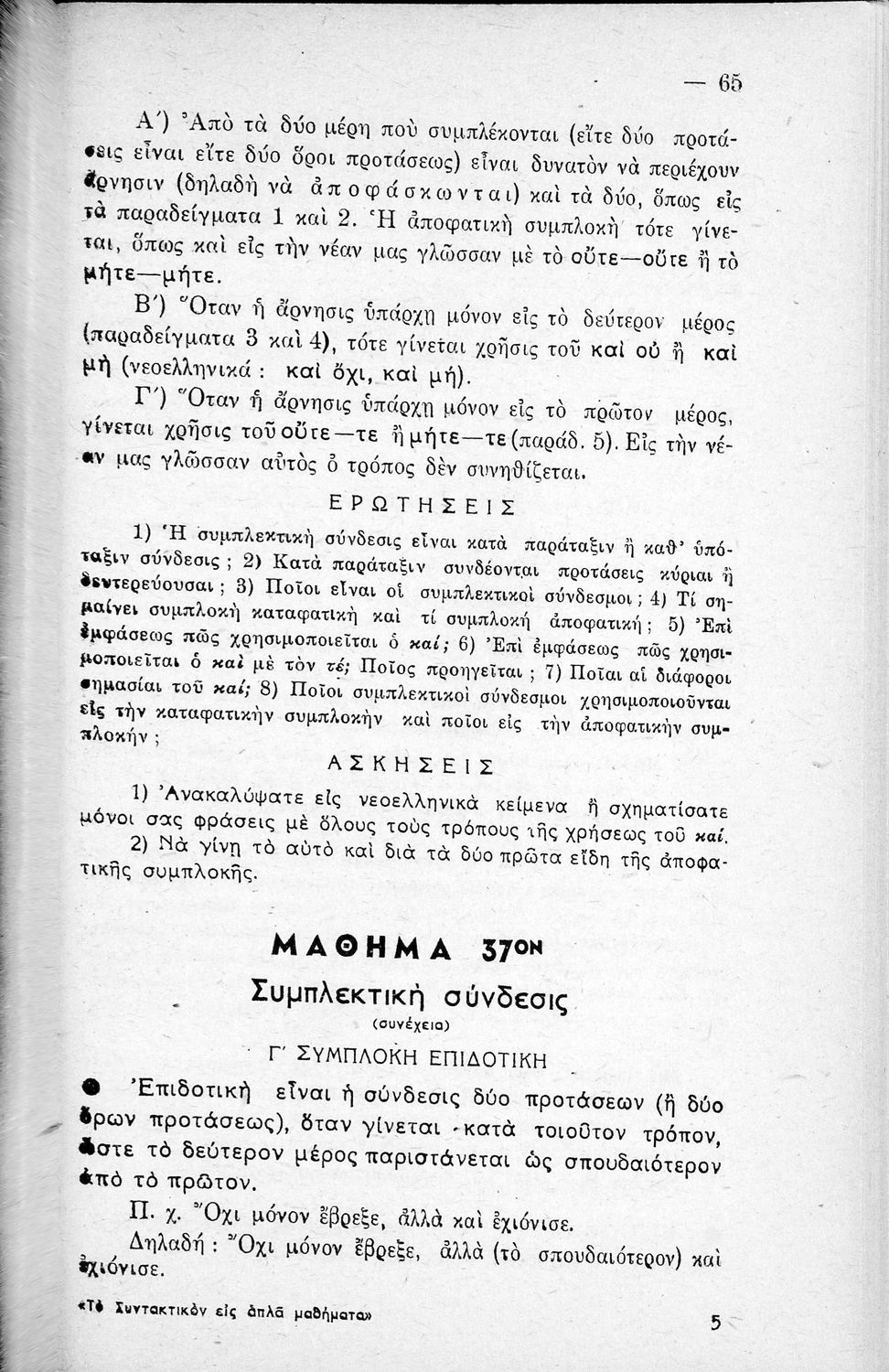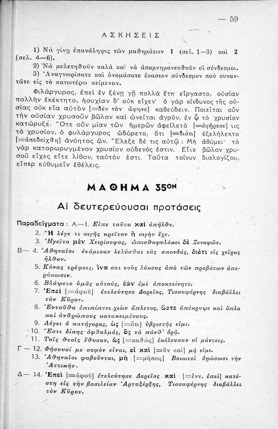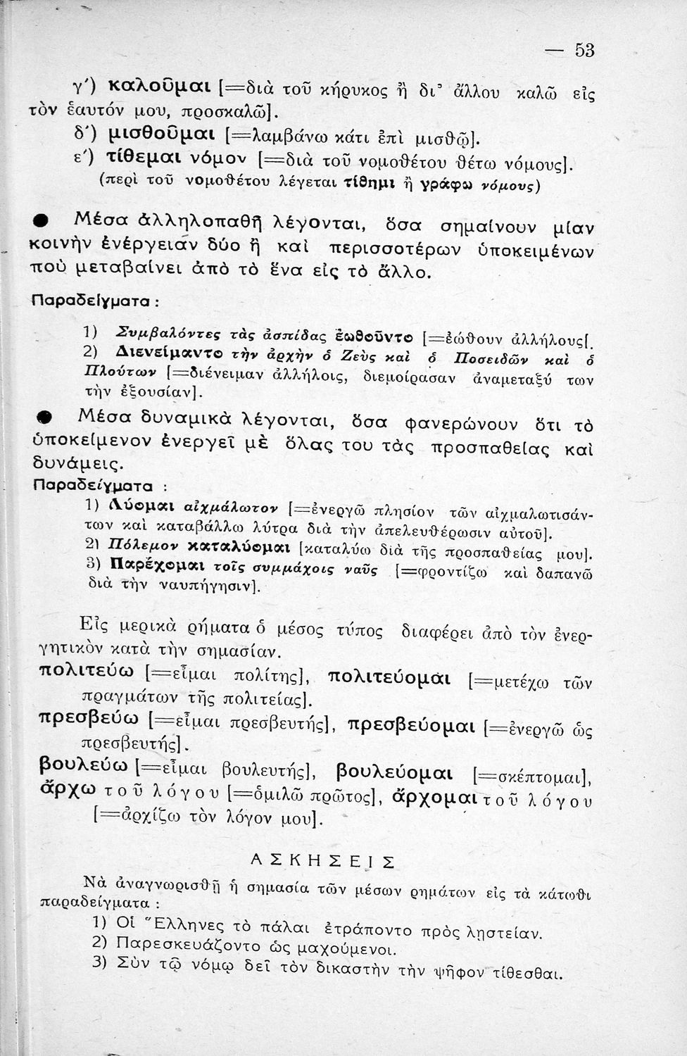 Μαθητικό βοήθημα Αρχαίων Ελληνικών Γυμνασίου που εξετάζει τα μέρη του λόγου και την σύνταξή τους.