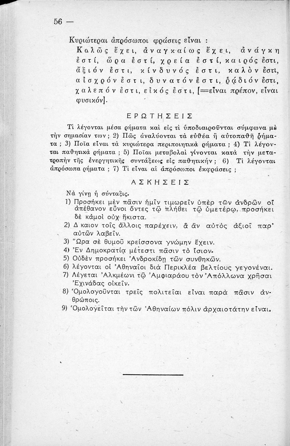 Βαθμίδα εκπαίδευσης: Δευτεροβάθμια Τάξη: Γυμνάσιο Μάθημα: Αρχαία Ελληνικά Γλώσσα: Καθαρεύουσα Παρουσίαση περιεχομένου: Μαθητικό βοήθημα Αρχαίων Ελληνικών Γυμνασίου που εξετάζει τα μέρη του λόγου και την σύνταξή τους. |