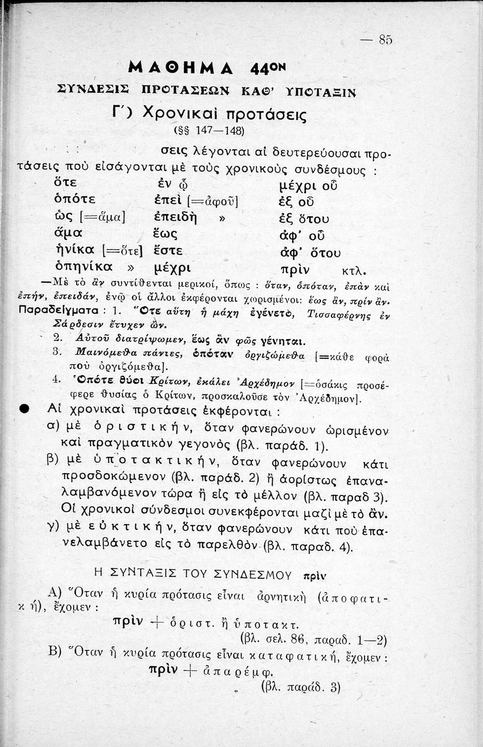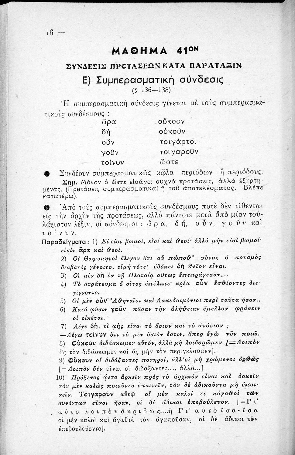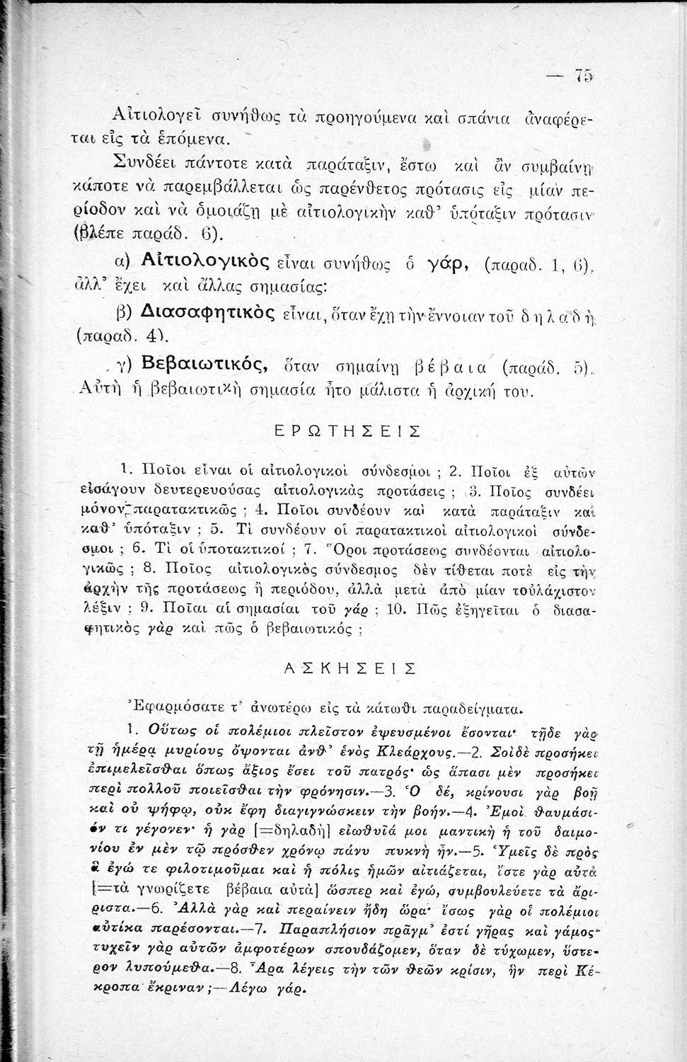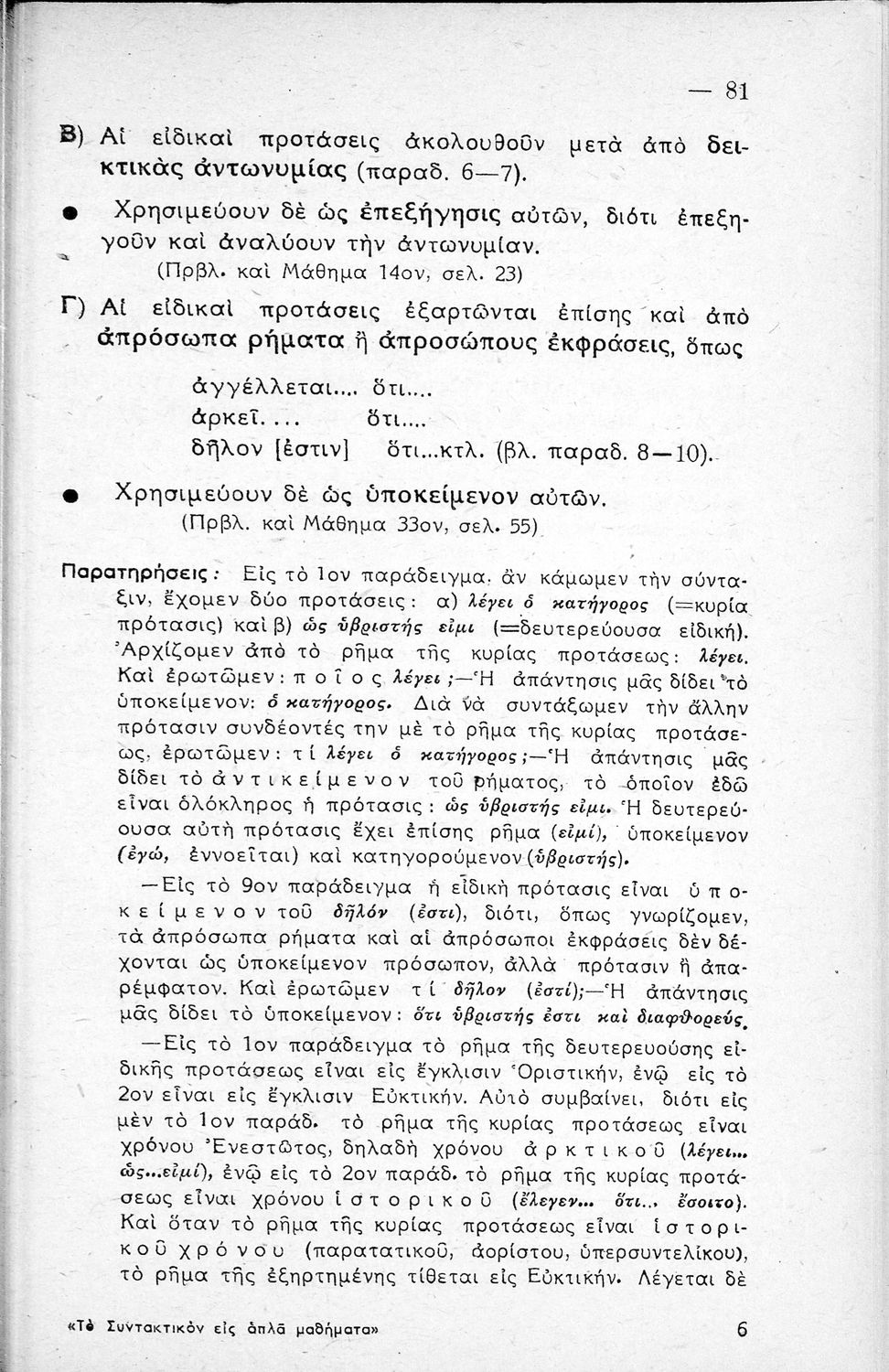 Μαθητικό βοήθημα Αρχαίων Ελληνικών Γυμνασίου που εξετάζει τα μέρη του λόγου και την σύνταξή τους.