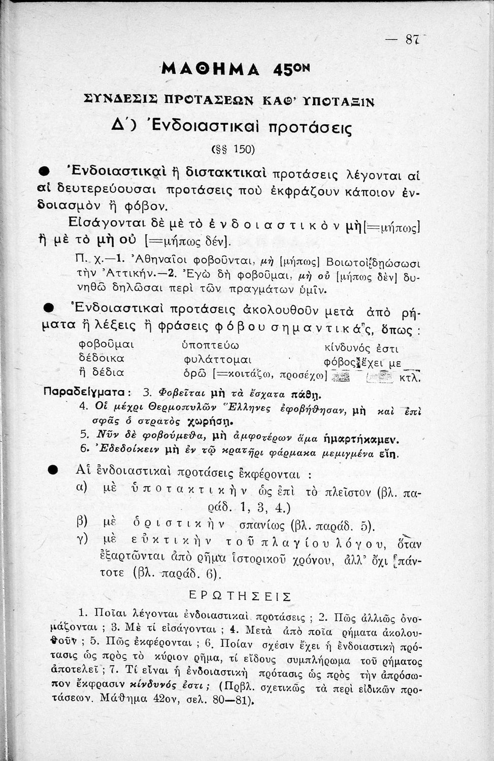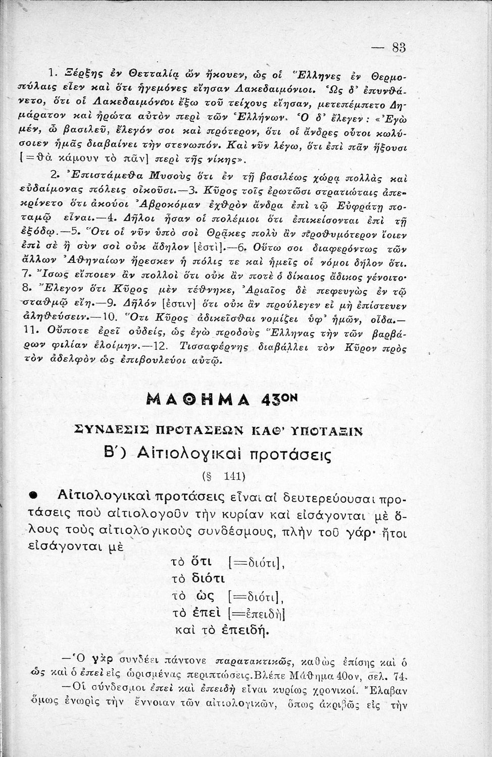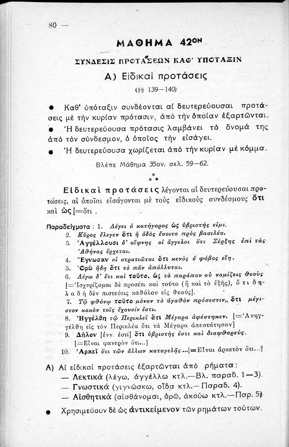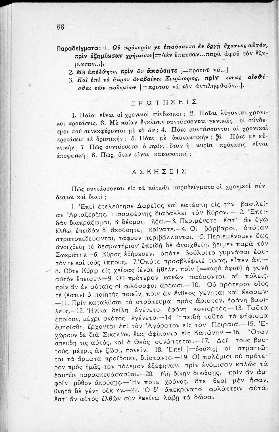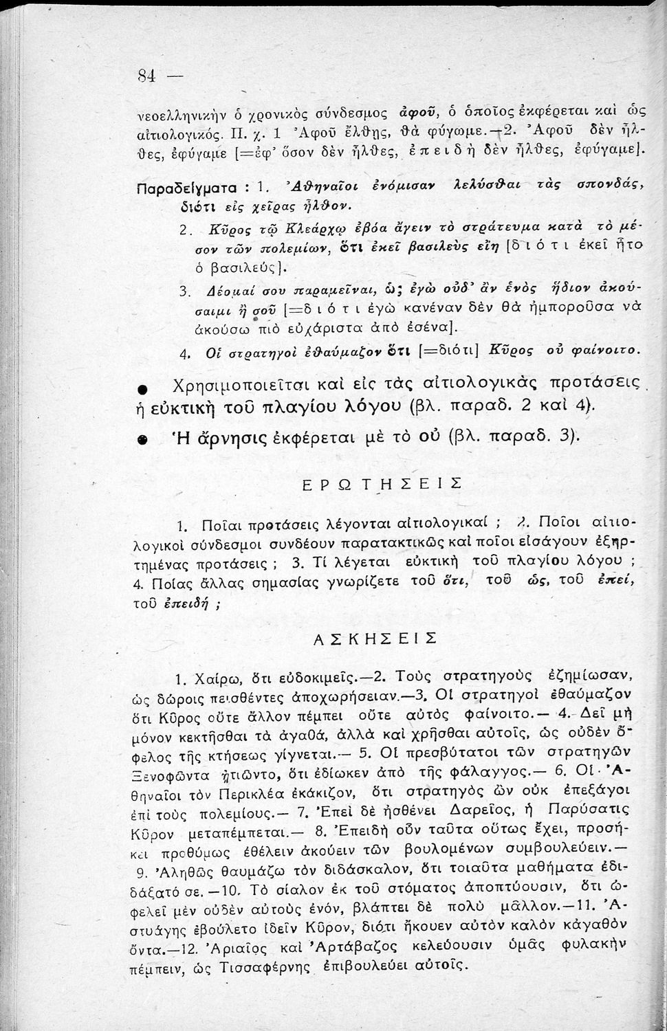 Μαθητικό βοήθημα Αρχαίων Ελληνικών Γυμνασίου που εξετάζει τα μέρη του λόγου και την σύνταξή τους.