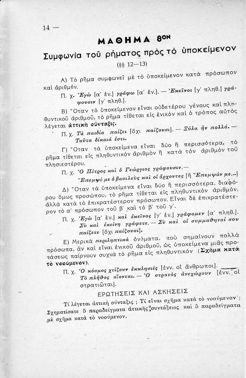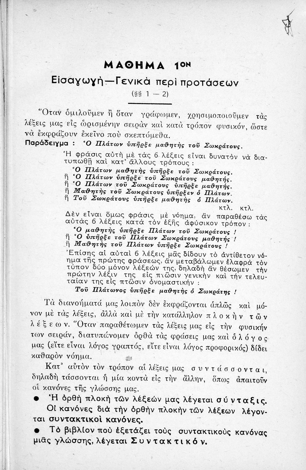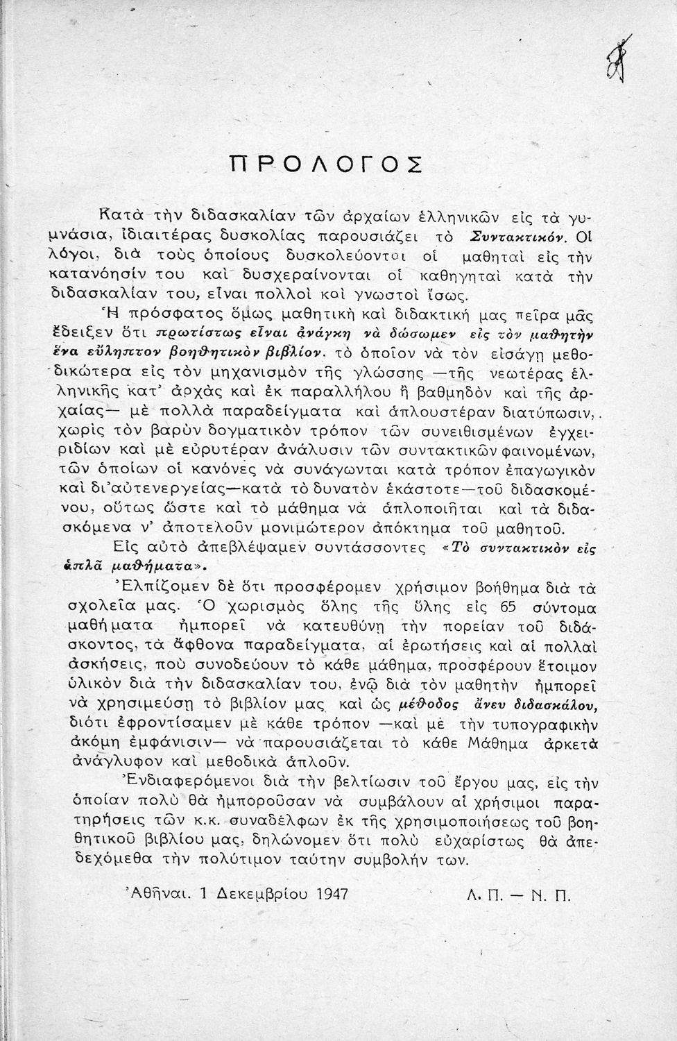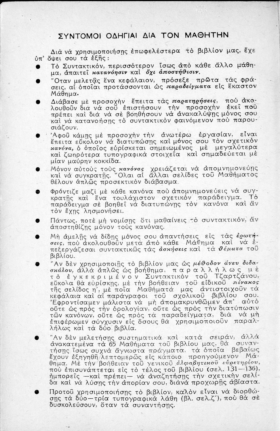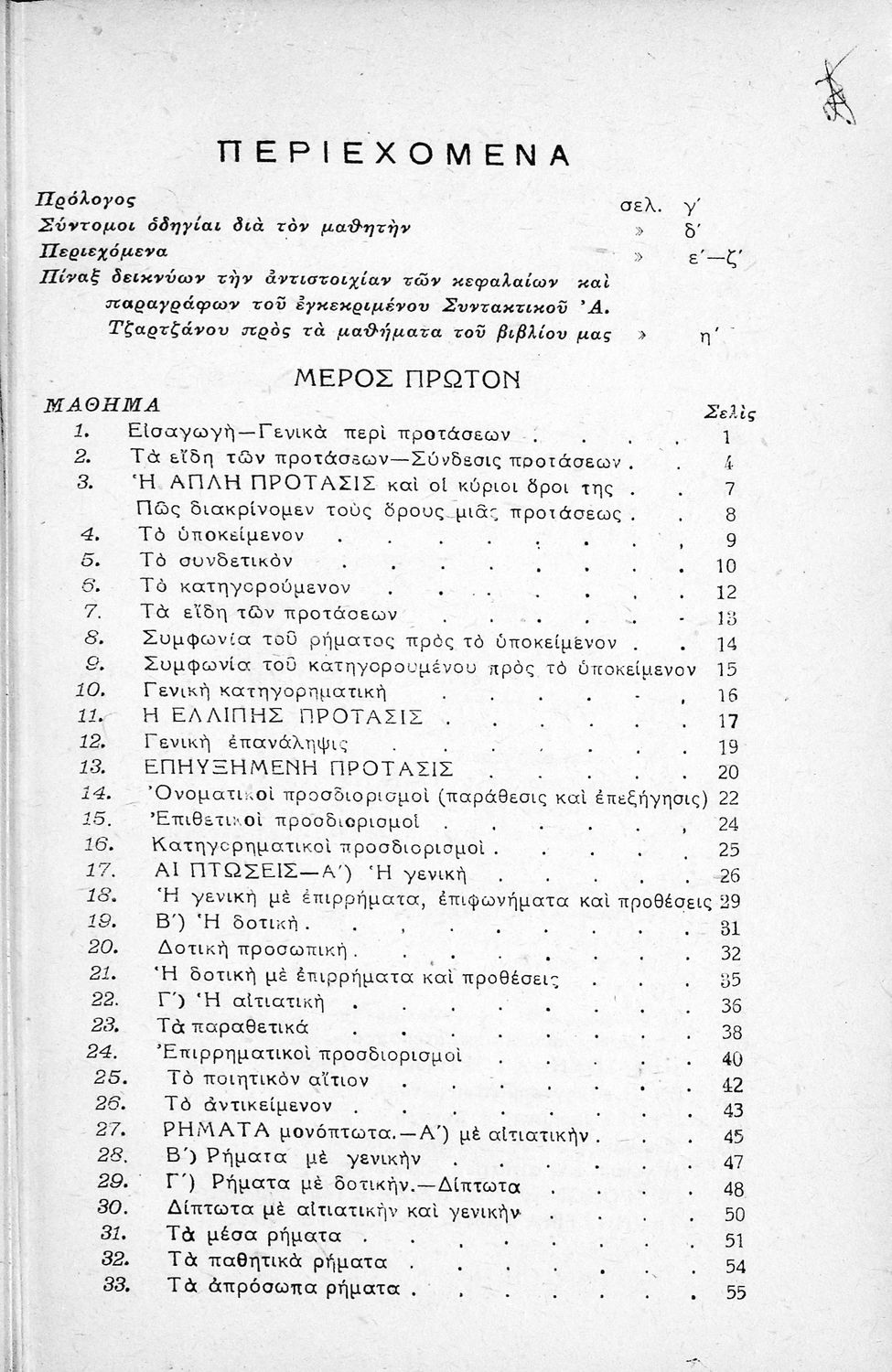 Μαθητικό βοήθημα Αρχαίων Ελληνικών Γυμνασίου που εξετάζει τα μέρη του λόγου και την σύνταξή τους.