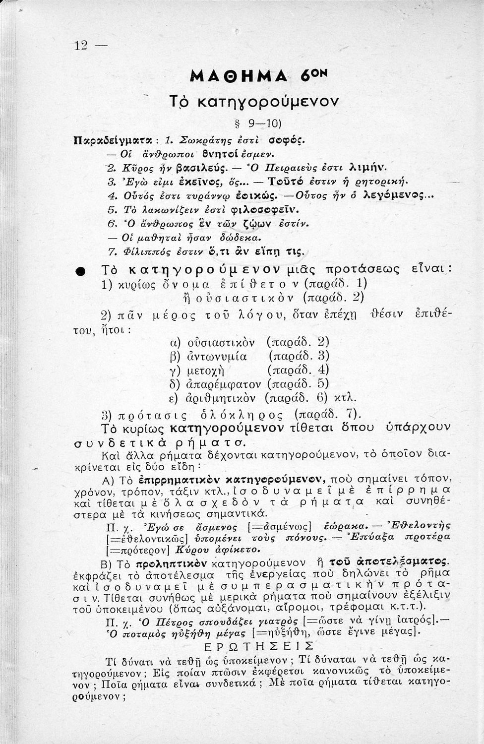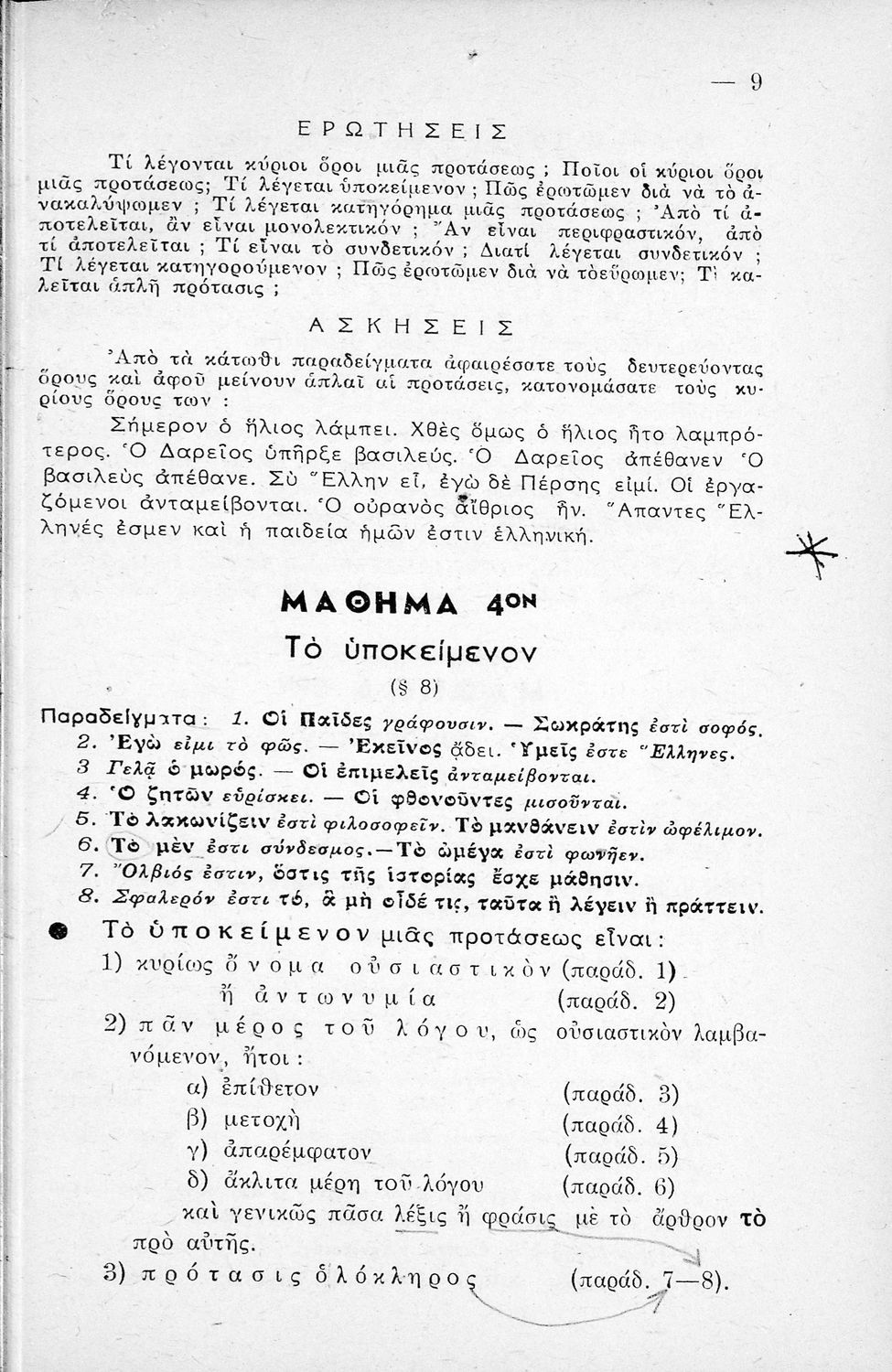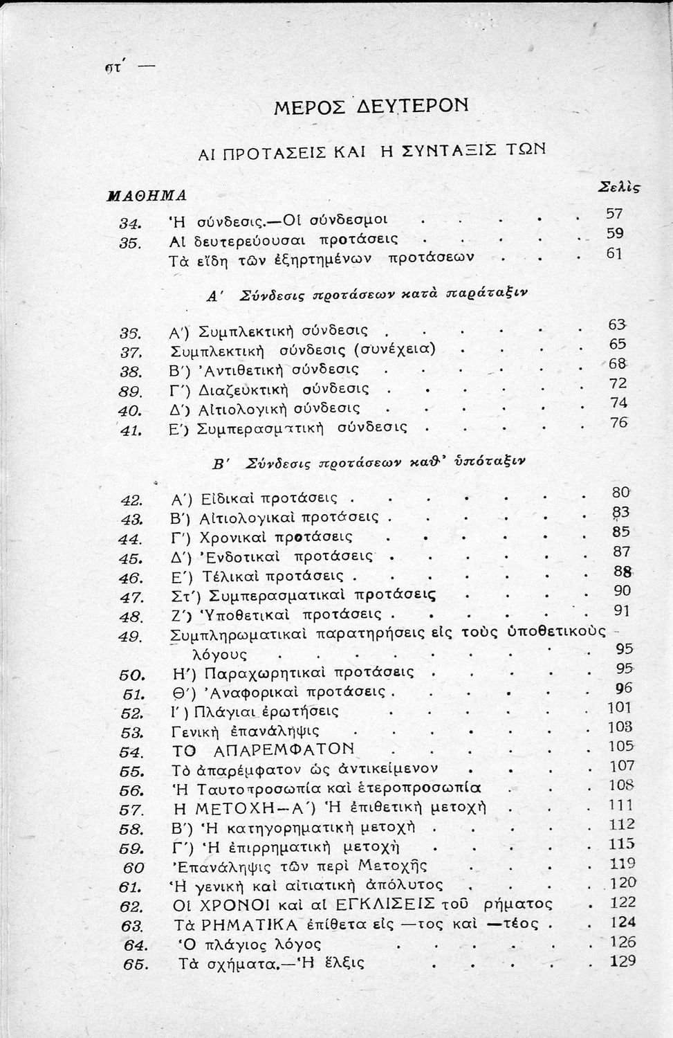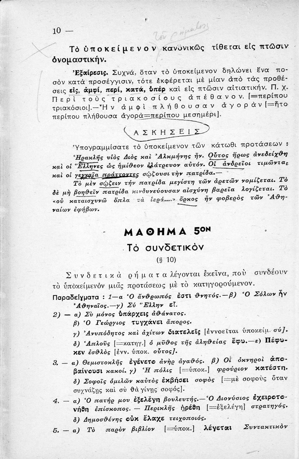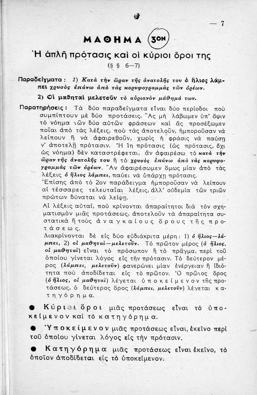 Μαθητικό βοήθημα Αρχαίων Ελληνικών Γυμνασίου που εξετάζει τα μέρη του λόγου και την σύνταξή τους.