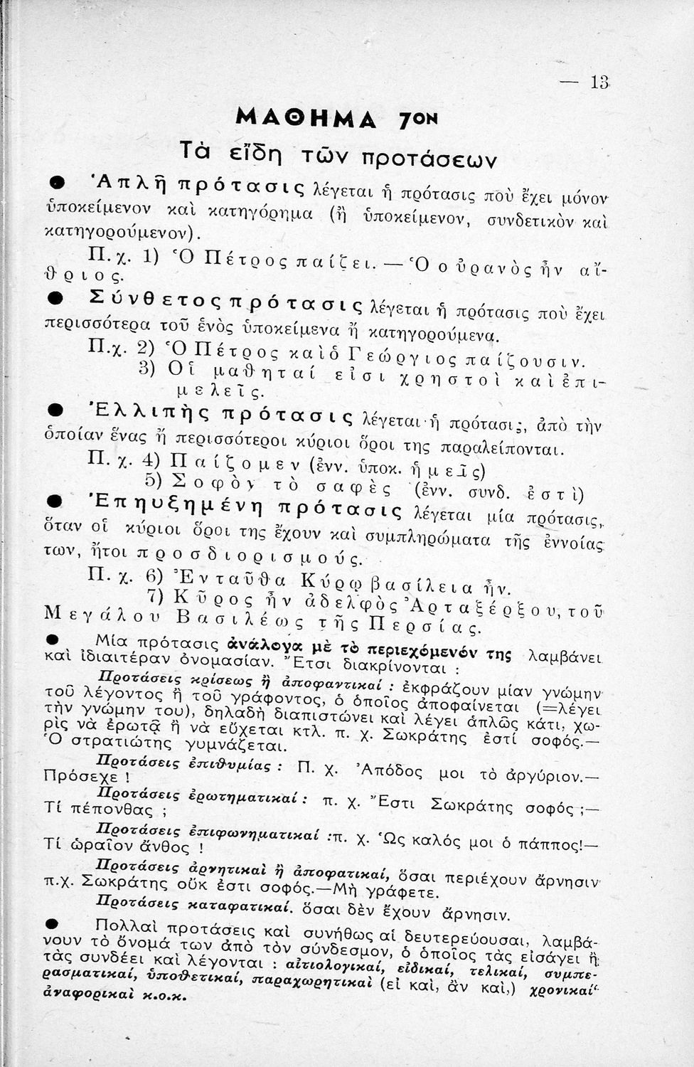 LDR 01099 2200193 4500 035 ## _a01-18933 040 ## _aΙνστιτούτο Εκπαιδευτικής Πολιτικής 041 ## _ael 100 ## _aΛ. Παπαβρανούσης _aΝ. Παπαδόπουλος 110 ## _a18933 245 0# _aΤο Συντακτικόν εις απλά μαθήματα βοηθητικόν βιβλίον δια τους μαθητάς των Γυμνασίων και των αντιστοίχων σχολείων της Μέσης Εκπαιδεύσεως 260 ## _aΑθήνα _bΒιβλιοπωλείον Β. Ν. Γρηγοριάδη _c1948 300 ## _a136 _c20 520 ## _aΜαθητικό βοήθημα Αρχαίων Ελληνικών Γυμνασίου που εξετάζει τα μέρη του λόγου και την σύνταξή τους. 521 ## _aΓυμνάσιο 522 ## _aΕλλάδα 546 ## _aΚαθαρεύουσα 563 ## _aΣκληρό Εξώφυλλο 650 #4 _aΑντικείμενο _aΠροθέσεις _aΠροσδιορισμοί _aΡήματα _aΥποκείμενο