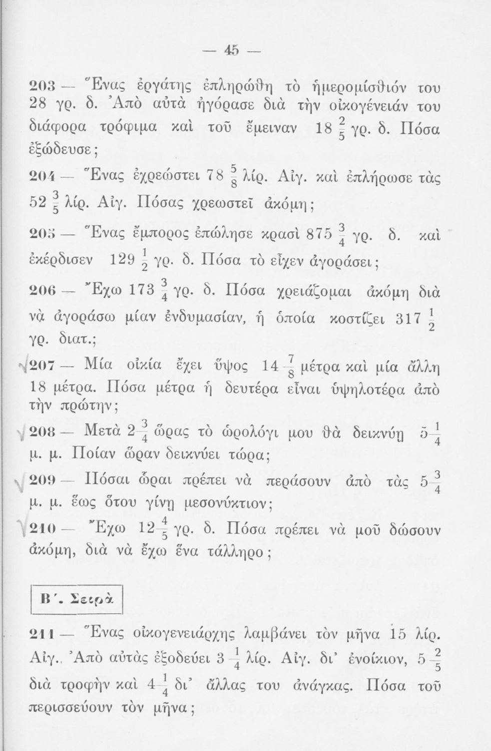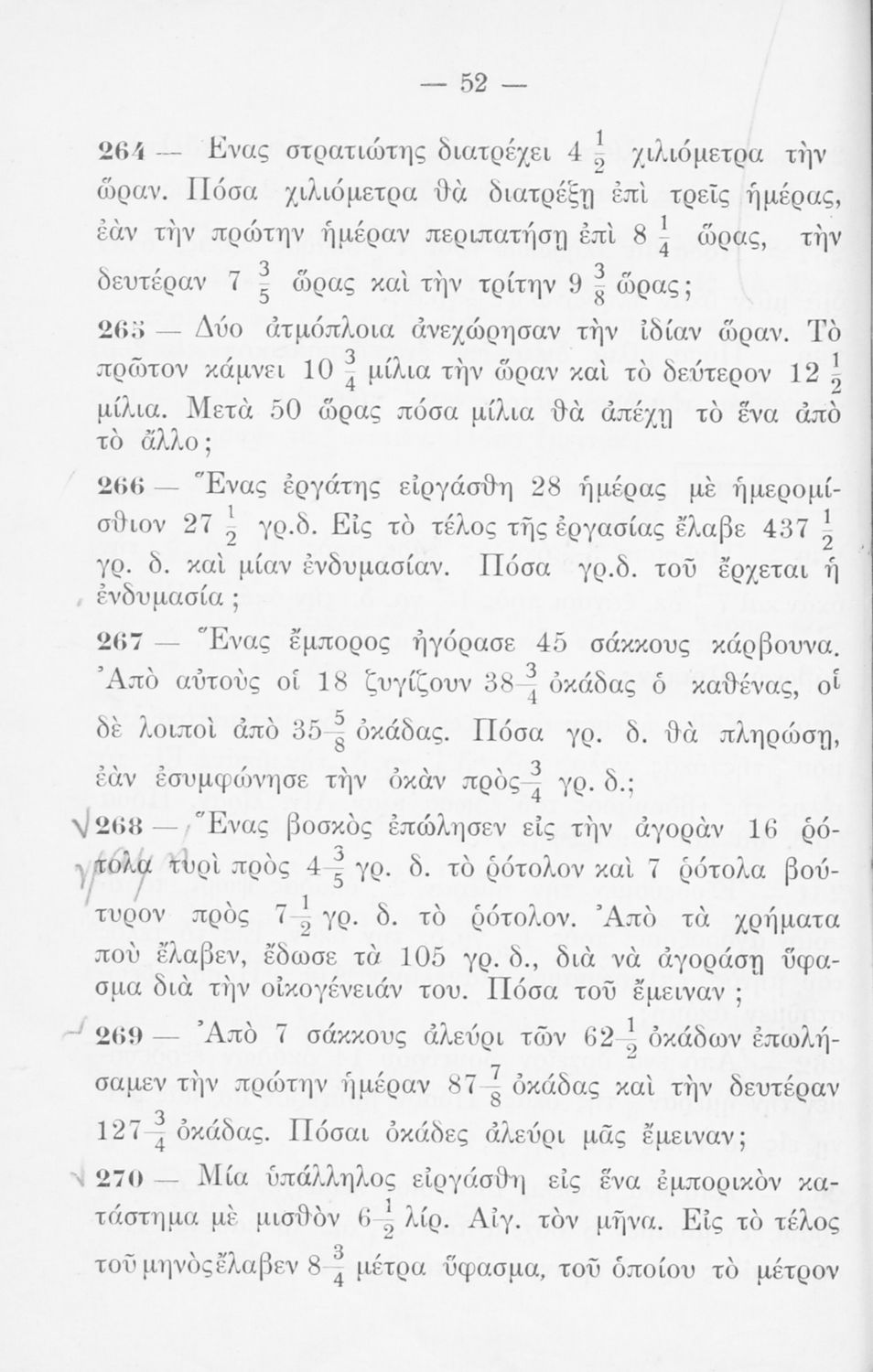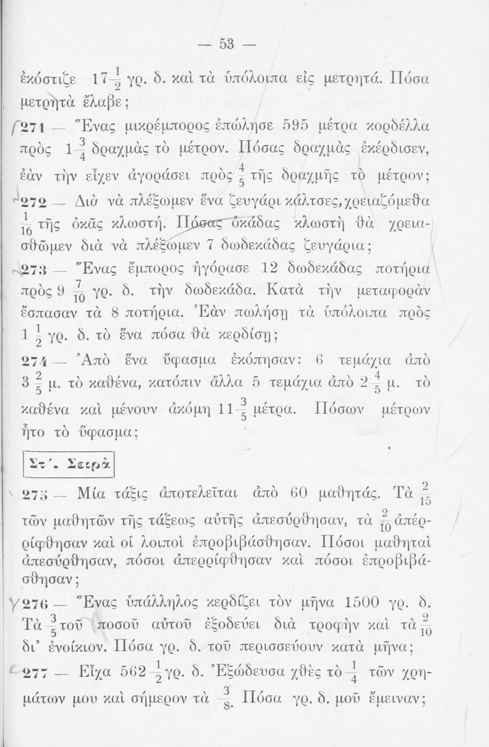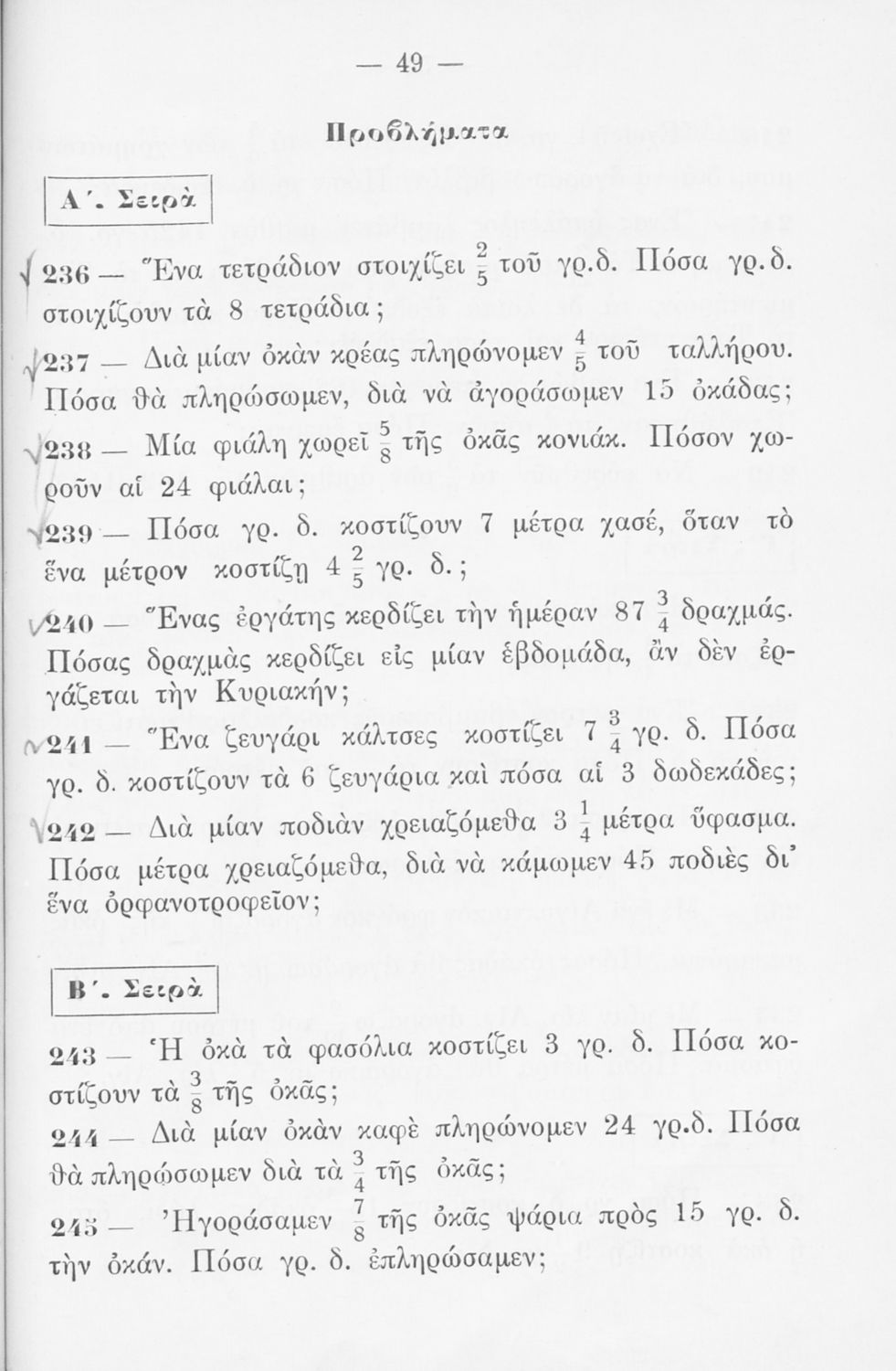 Βαθμίδα εκπαίδευσης: Πρωτοβάθμια Τάξη: Ε' Δημοτικού Μάθημα: Μαθηματικά Γλώσσα: Δημοτική Παρουσίαση περιεχομένου: Σχολικό εγχειρίδιο με προβλήματα Αριθμητικής για την Ε΄ Δημοτικού χωρισμένο με βάση τις αριθμητικές πράξεις και τα κλάσματα. |