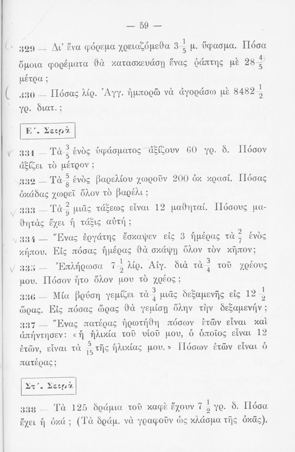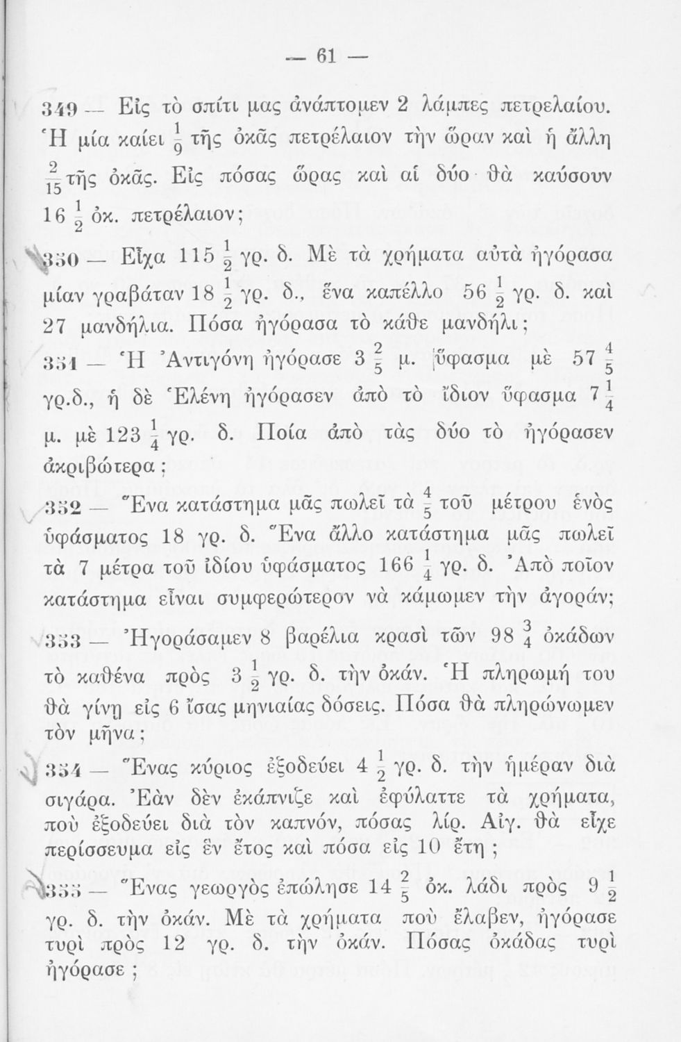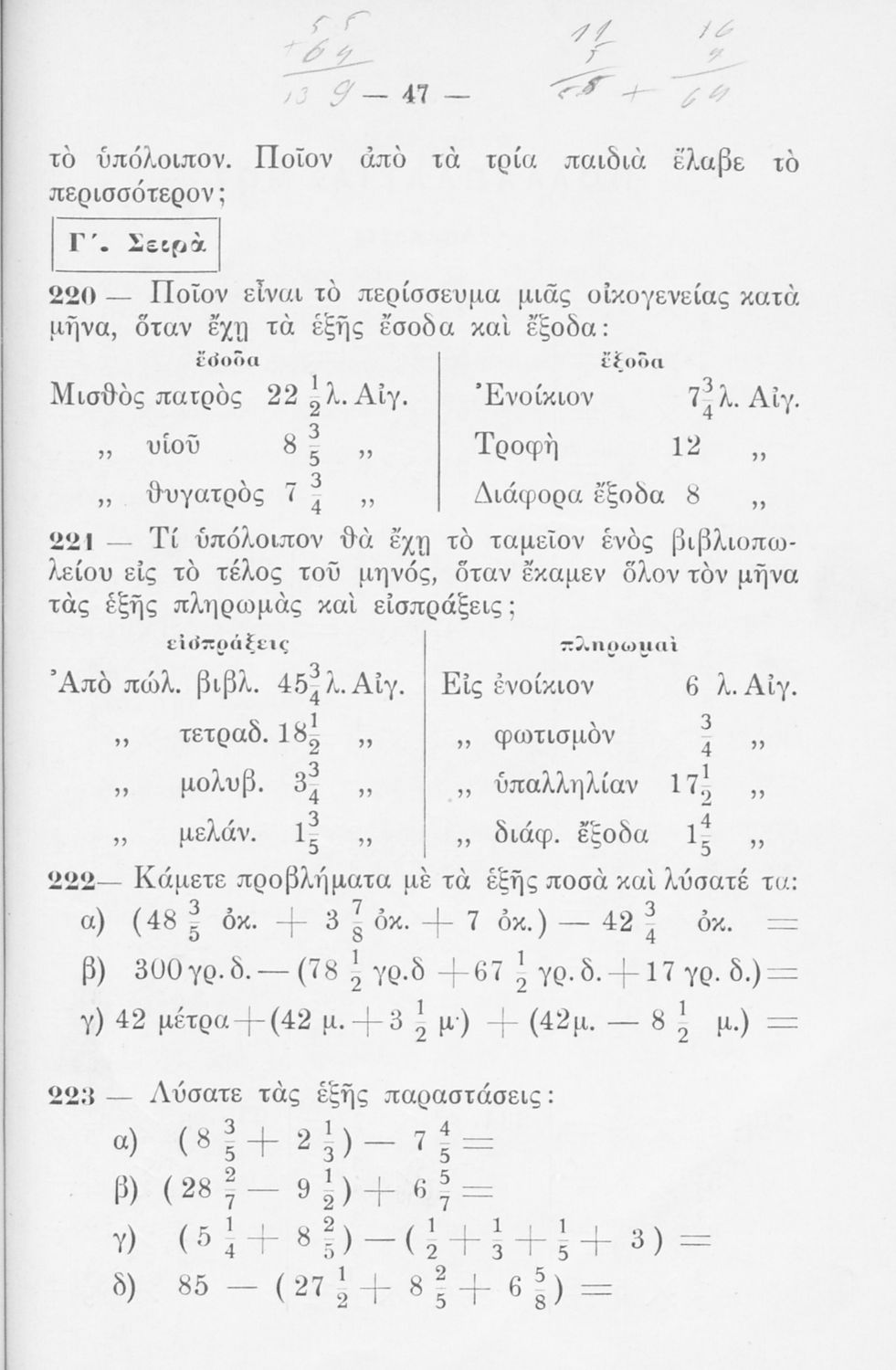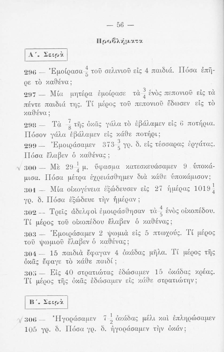 Σχολικό εγχειρίδιο με προβλήματα Αριθμητικής για την Ε΄ Δημοτικού χωρισμένο με βάση τις αριθμητικές πράξεις και τα κλάσματα.