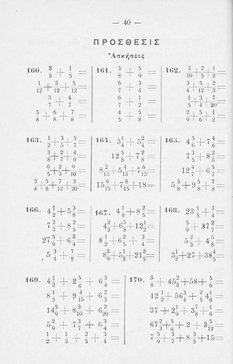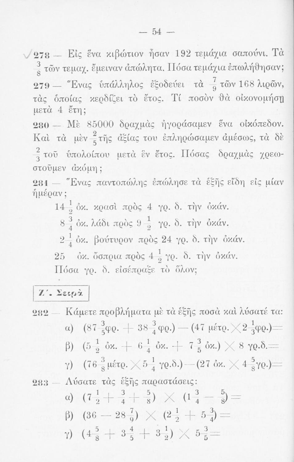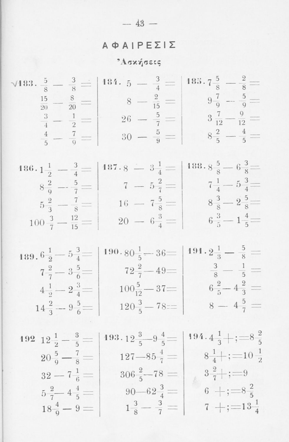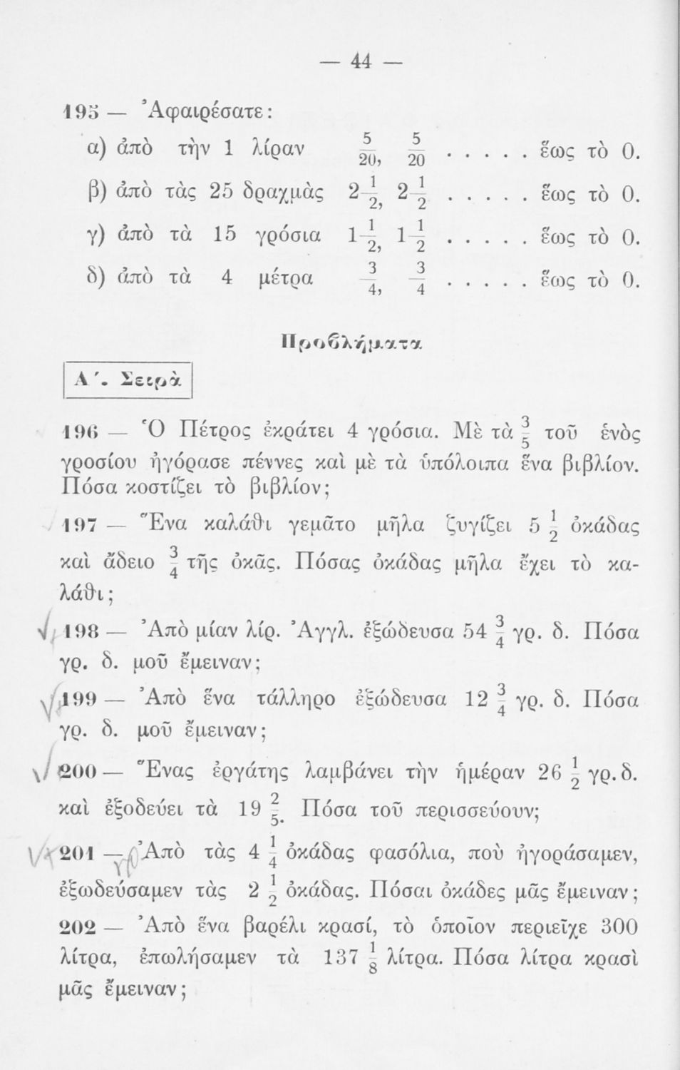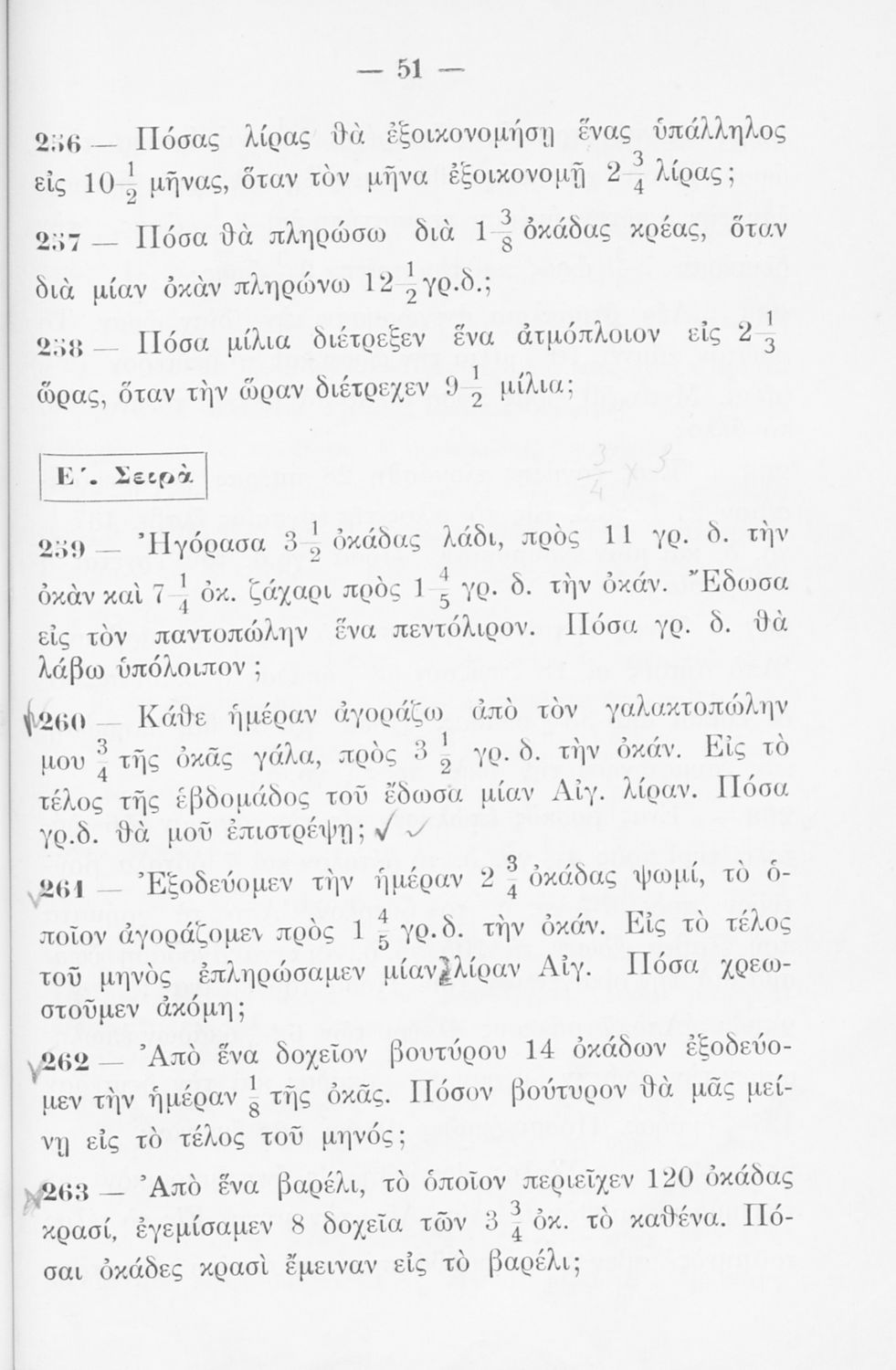 Σχολικό εγχειρίδιο με προβλήματα Αριθμητικής για την Ε΄ Δημοτικού χωρισμένο με βάση τις αριθμητικές πράξεις και τα κλάσματα.