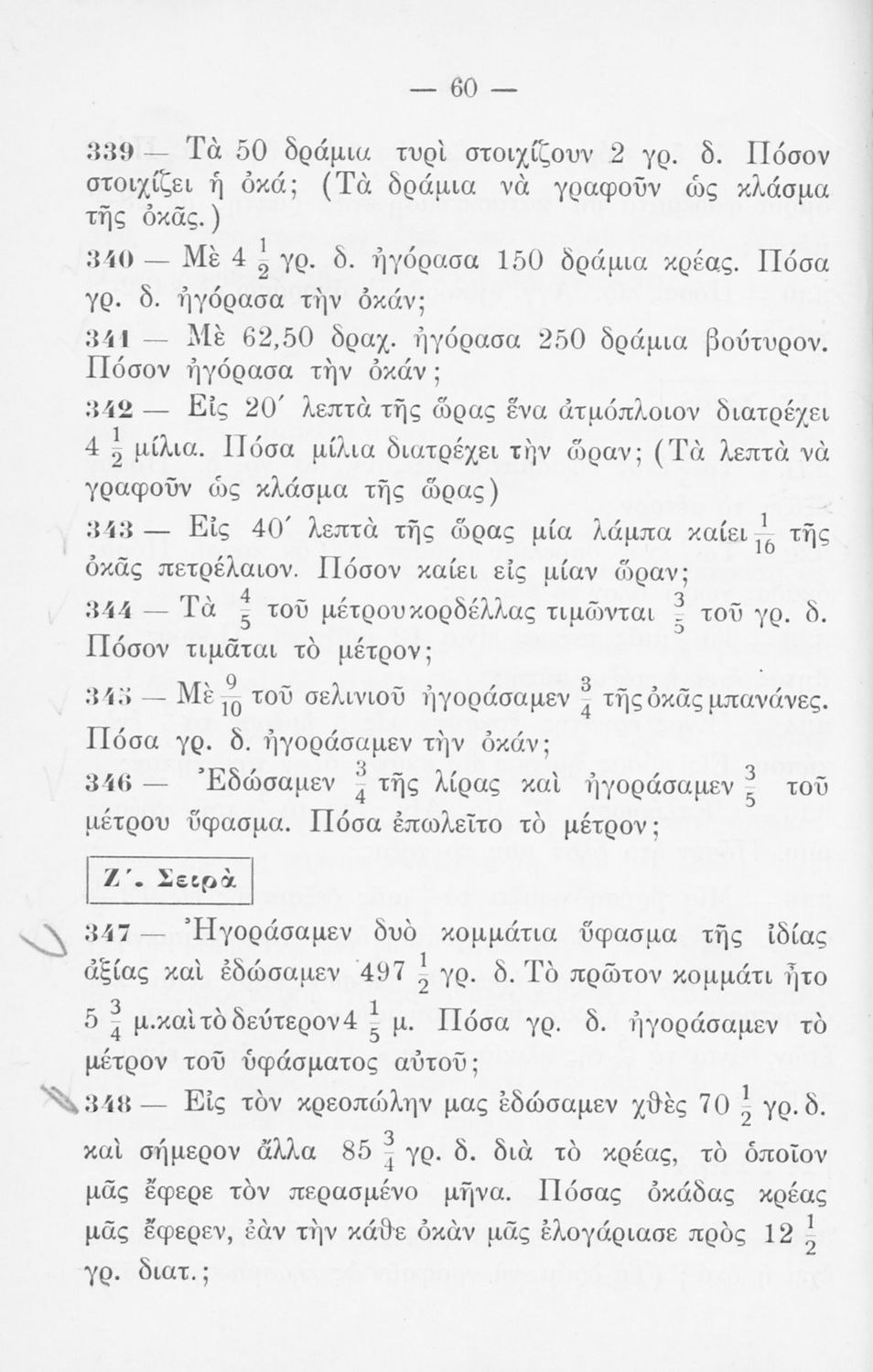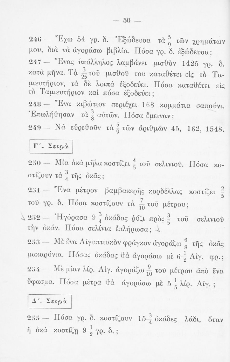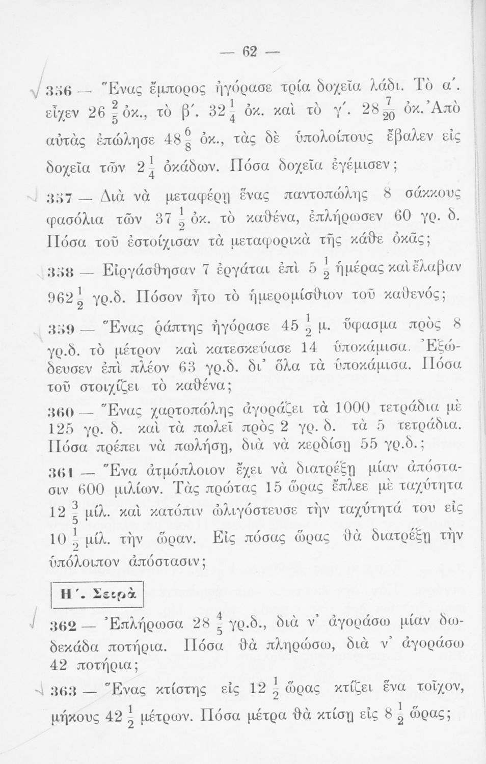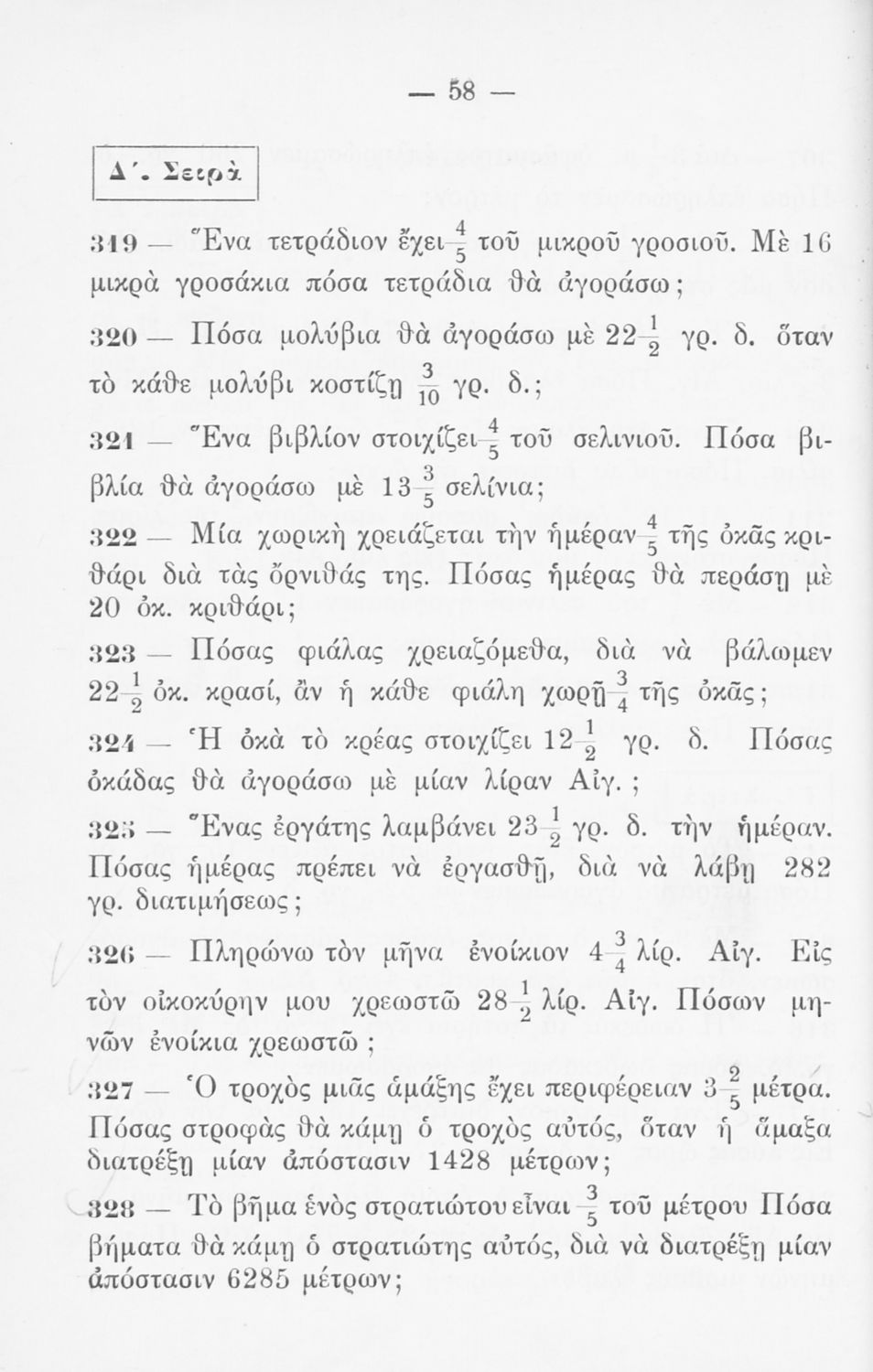 Σχολικό εγχειρίδιο με προβλήματα Αριθμητικής για την Ε΄ Δημοτικού χωρισμένο με βάση τις αριθμητικές πράξεις και τα κλάσματα.
