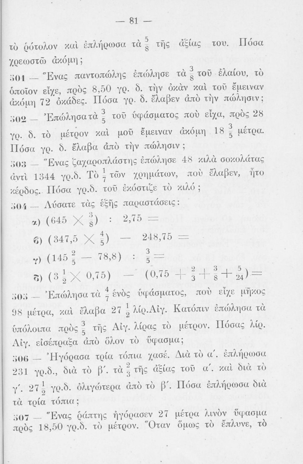Σχολικό εγχειρίδιο με προβλήματα Αριθμητικής για την Ε΄ Δημοτικού χωρισμένο με βάση τις αριθμητικές πράξεις και τα κλάσματα.