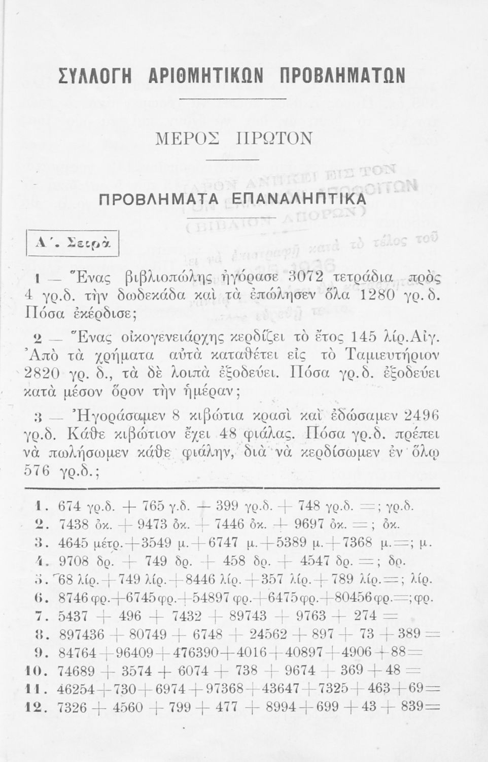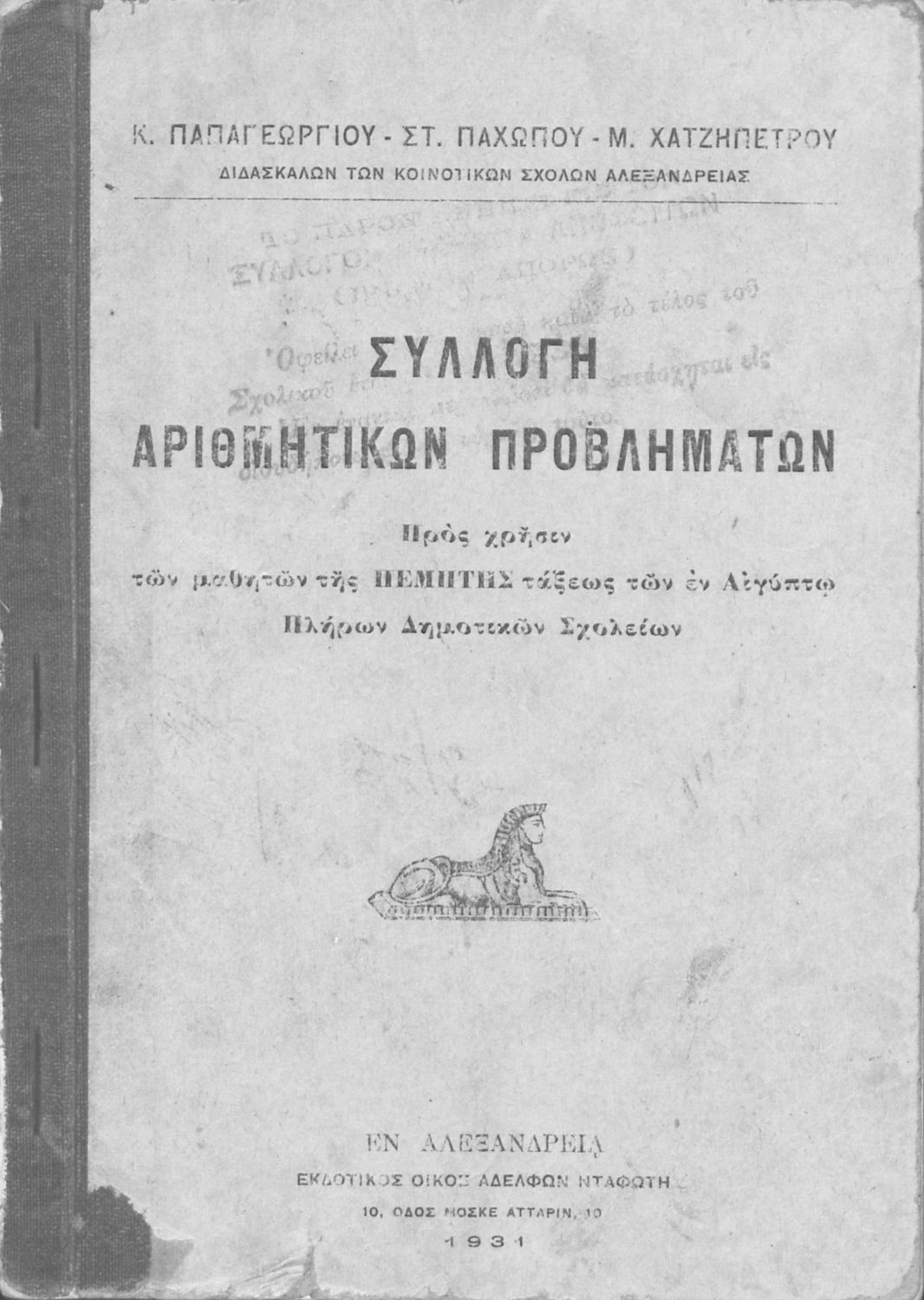 Τίτλος: Συλλογή αριθμητικών προβλημάτων προς χρήσιν των μαθητών της πέμπτης τάξεως των εν Αιγύπτω πλήρων Δημοτικών Σχολείων