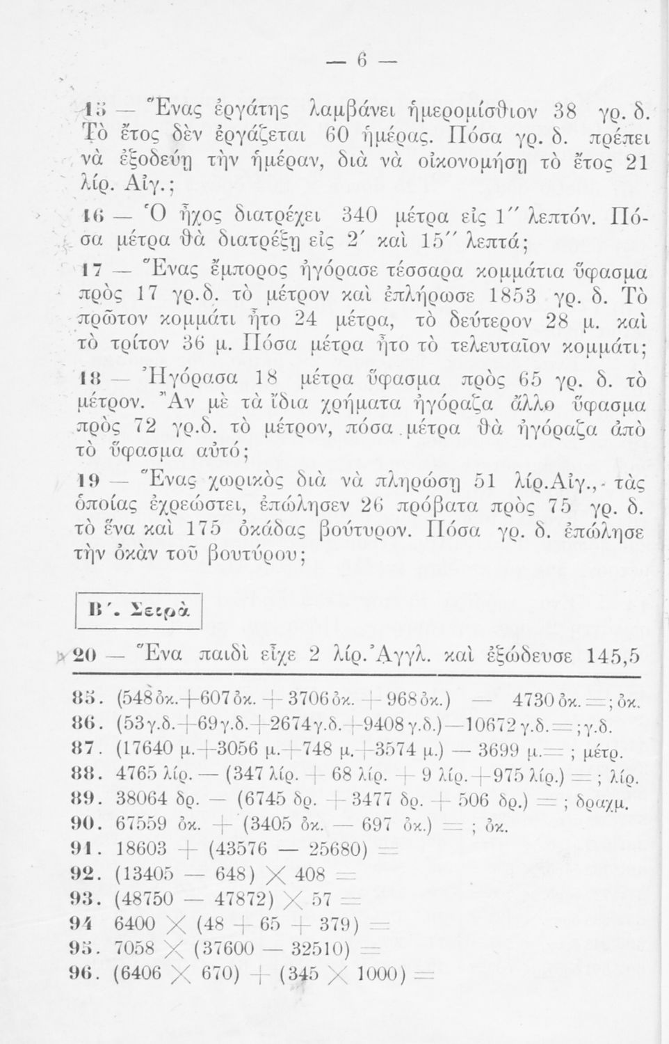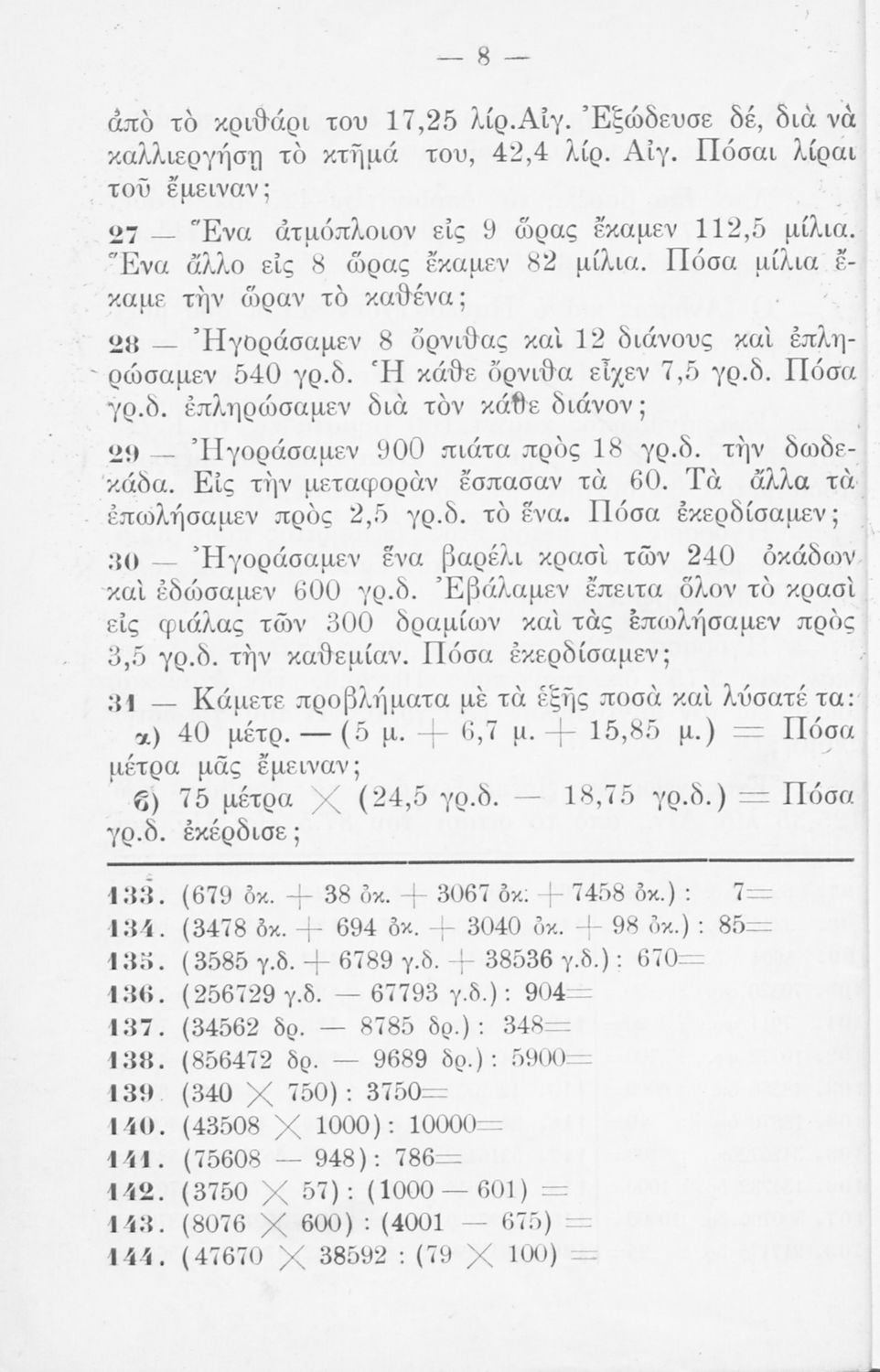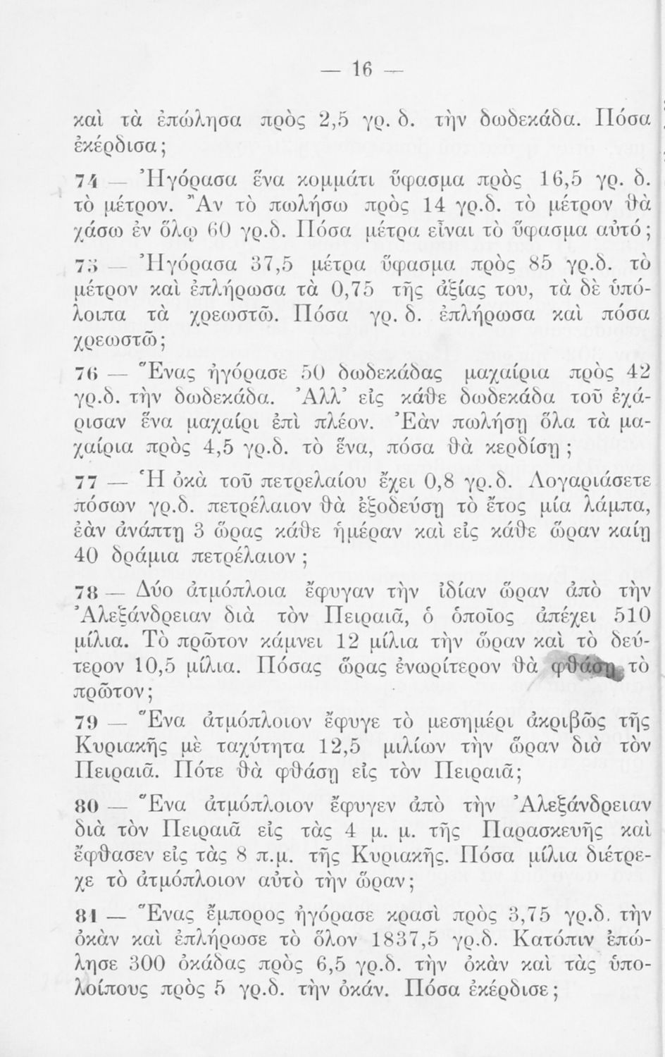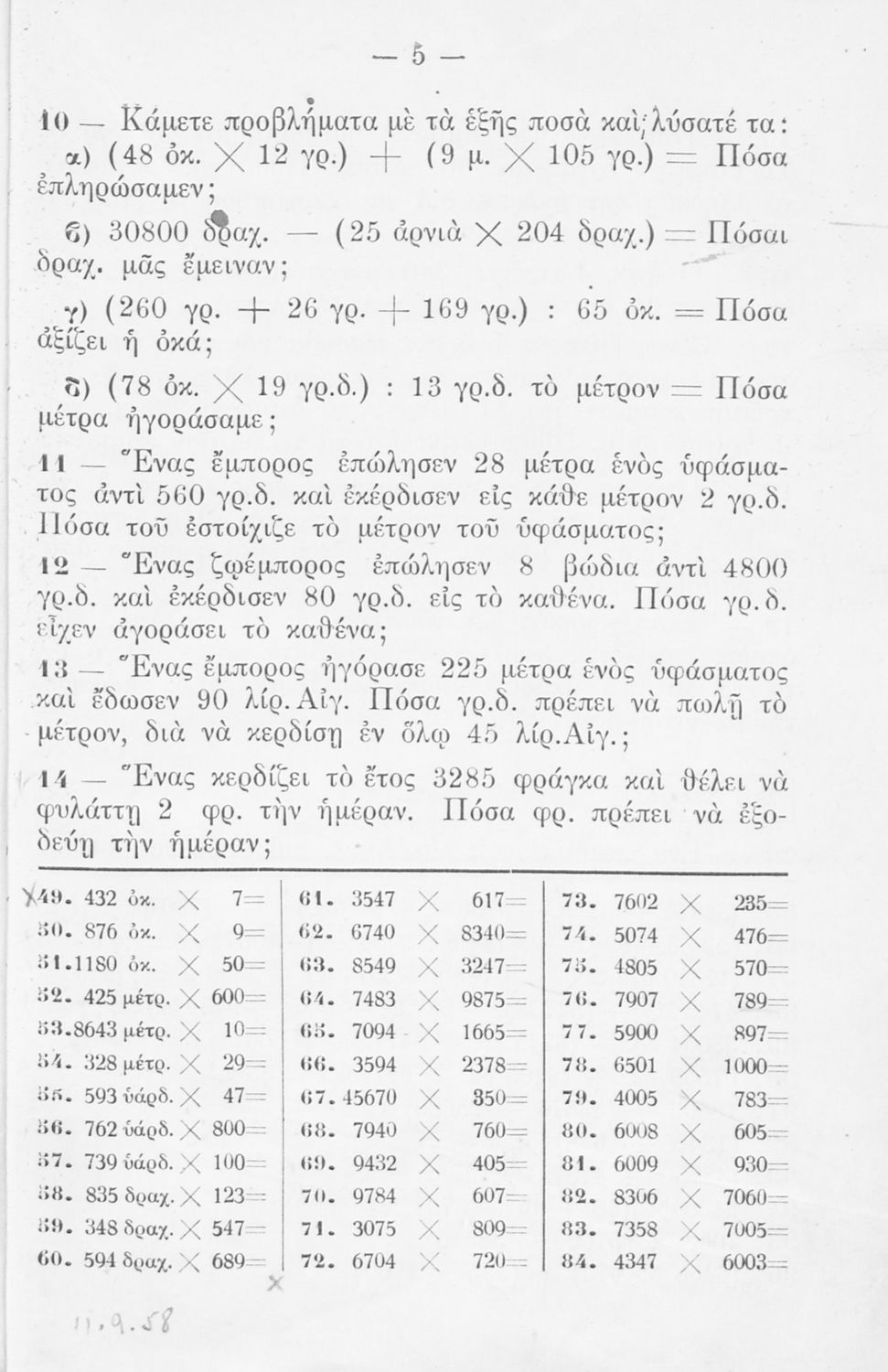 Συλλογή αριθμητικών προβλημάτων προς χρήσιν των μαθητών της πέμπτης τάξεως των εν Αιγύπτω πλήρων Δημοτικών Σχολείων