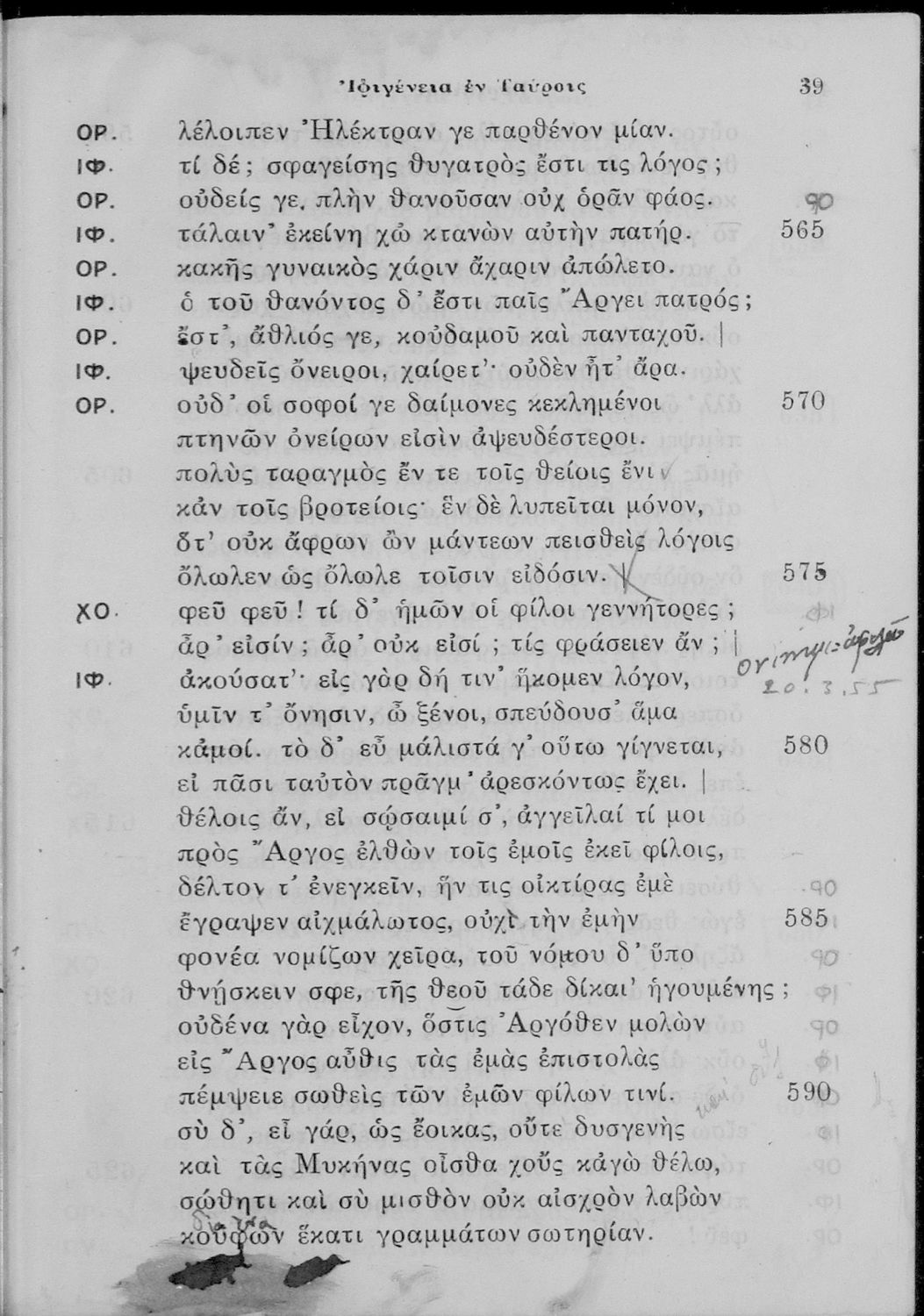 Τίτλος: Ευριπίδου Ιφιγένεια εν Ταύροις κείμενον μετ΄ εισαγωγής