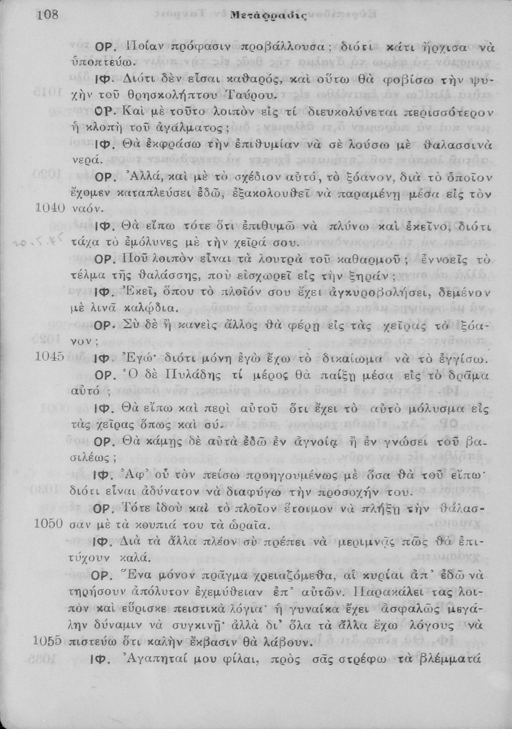 Ευριπίδου Ιφιγένεια εν Ταύροις σχόλια-μετάφρασις