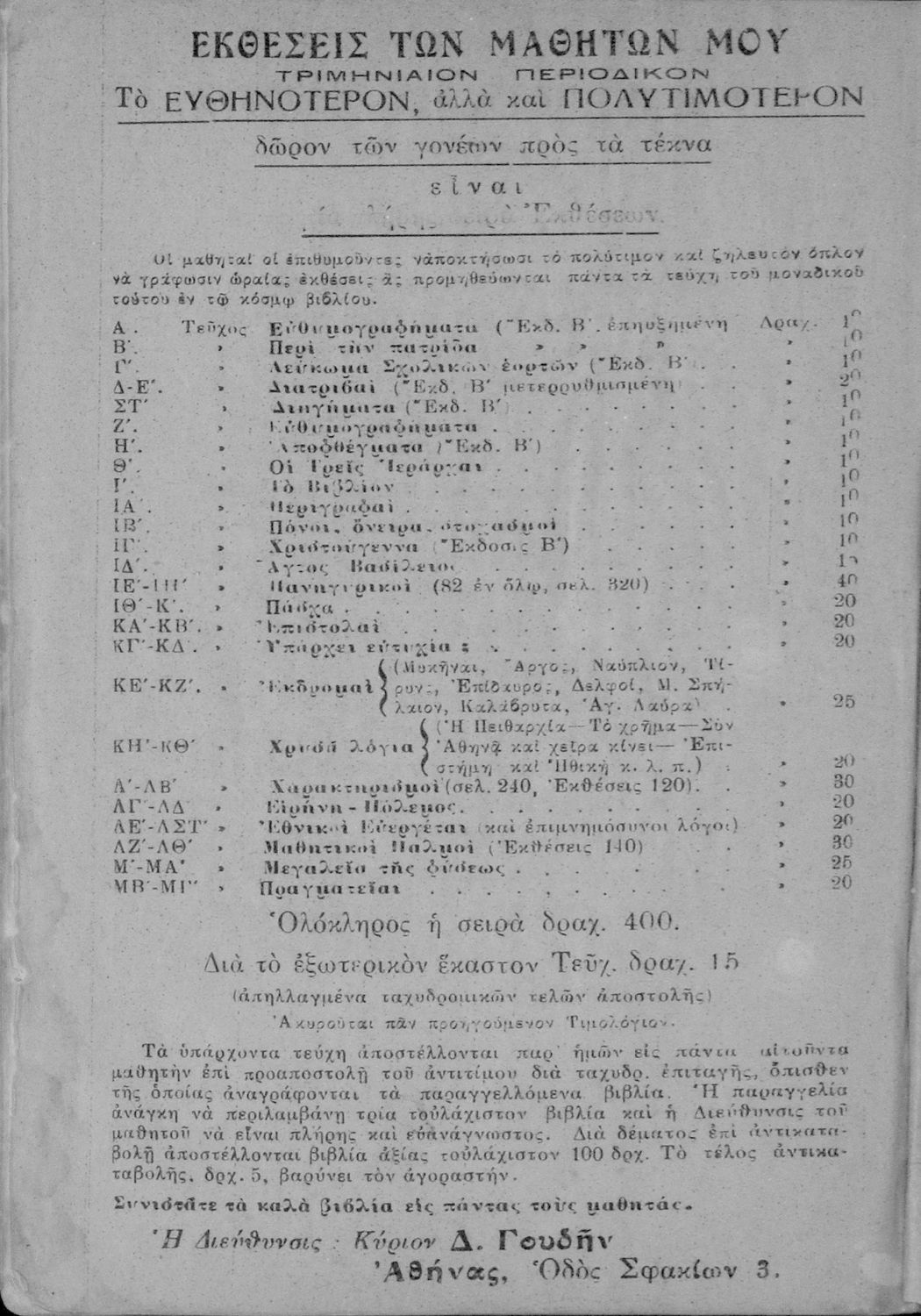 Εκδότης: Τυπογραφείο: Π. Δ. Κυριακού