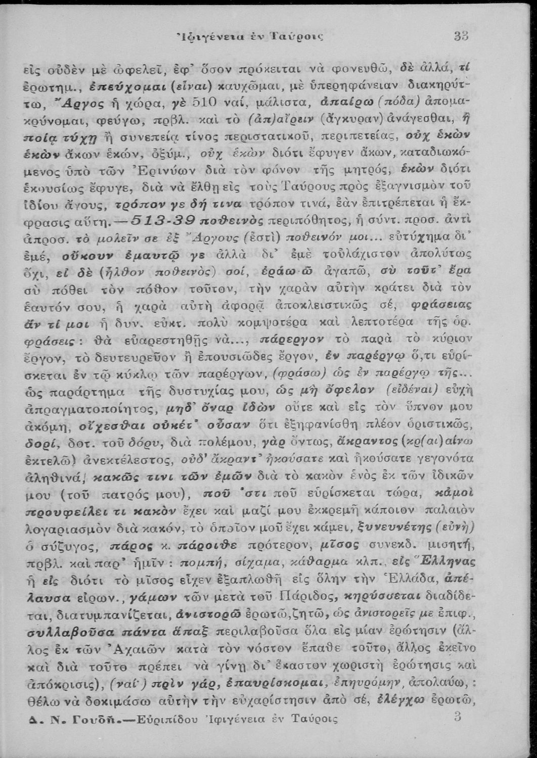 Τίτλος: Ευριπίδου Ιφιγένεια εν Ταύροις σχόλια-μετάφρασις